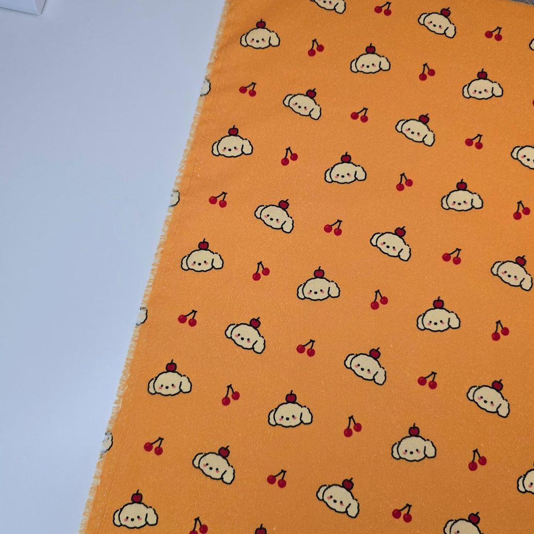 チェリードッグ子犬柄生地、かわいい、子供用、裁縫、キルト - 韓国生地
