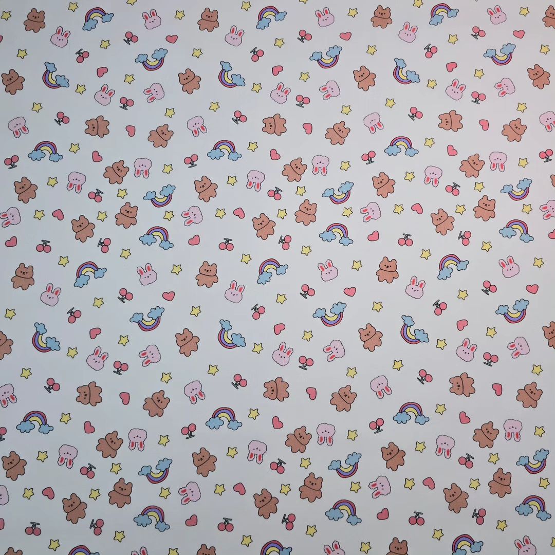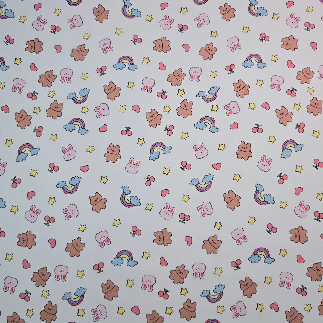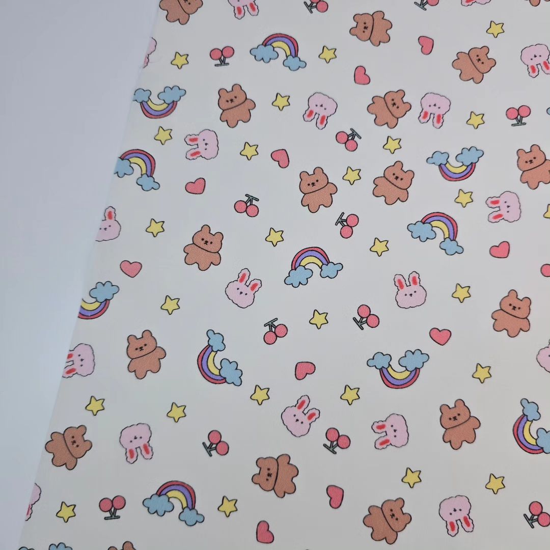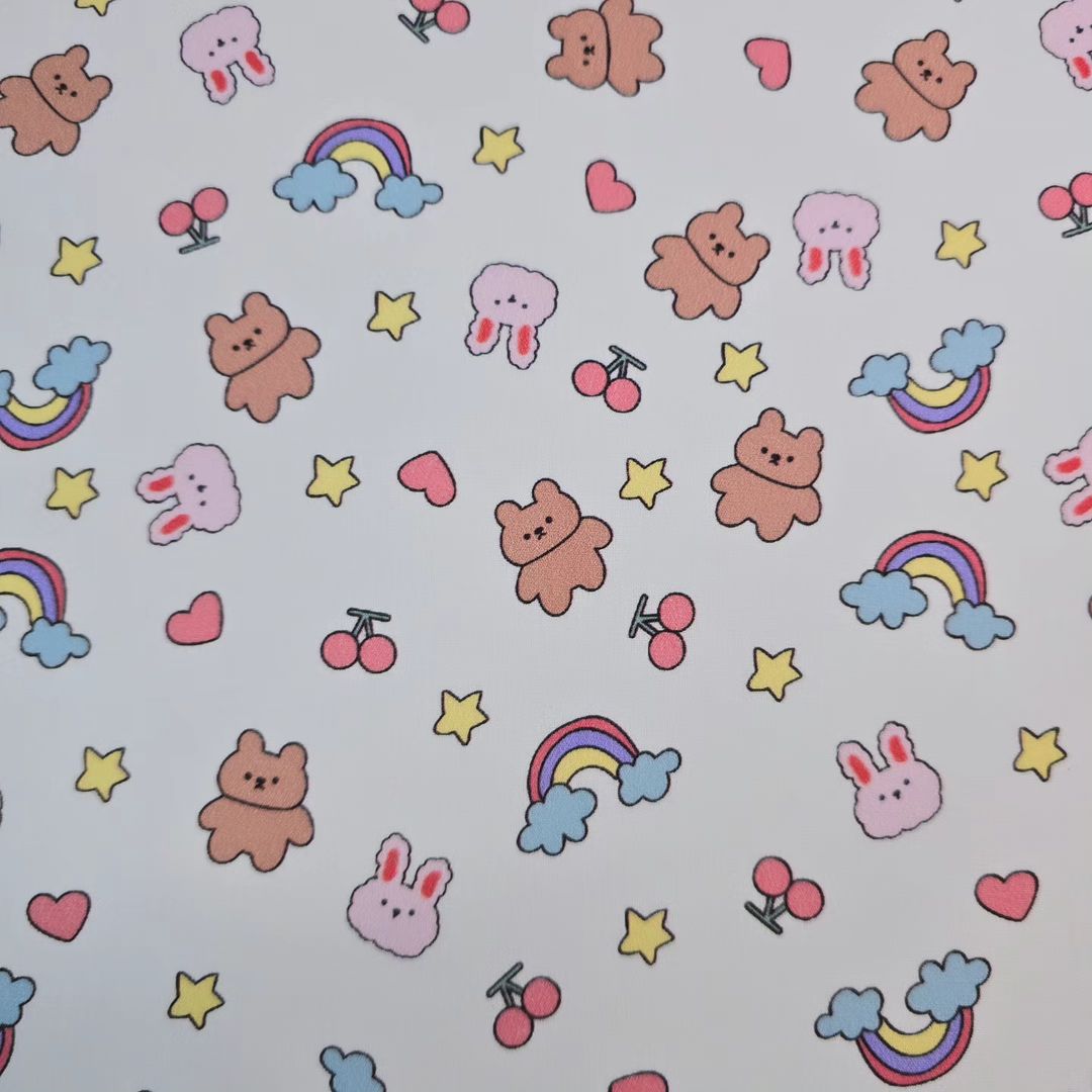手描き風のクマとウサギの虹模様の生地、かわいい、子供用、裁縫、キルト - 韓国の生地
