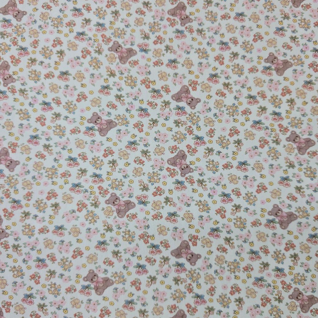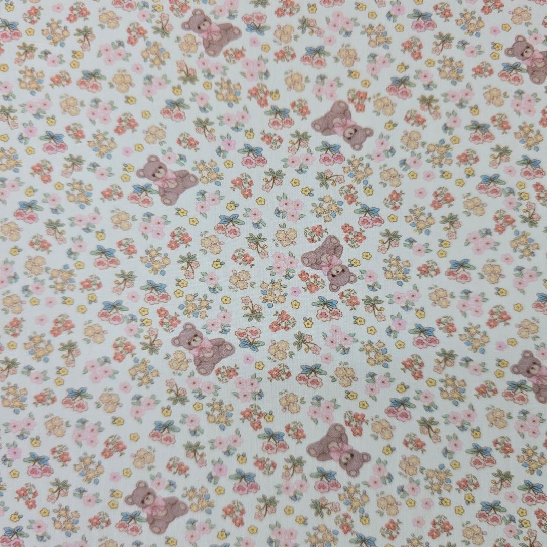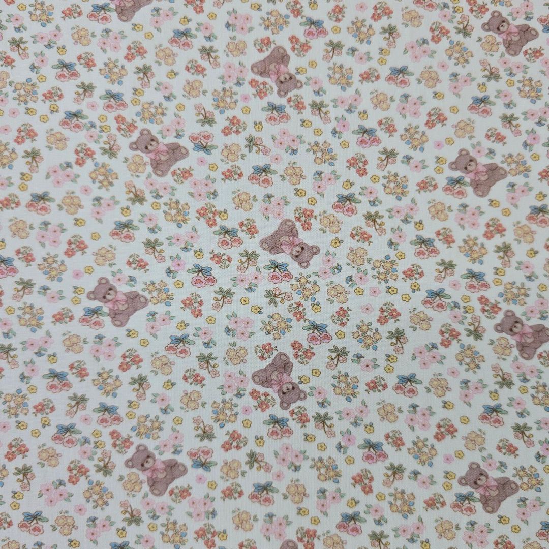 花の庭の模様のテディベア生地、かわいい、子供用、裁縫、キルト - 韓国の生地