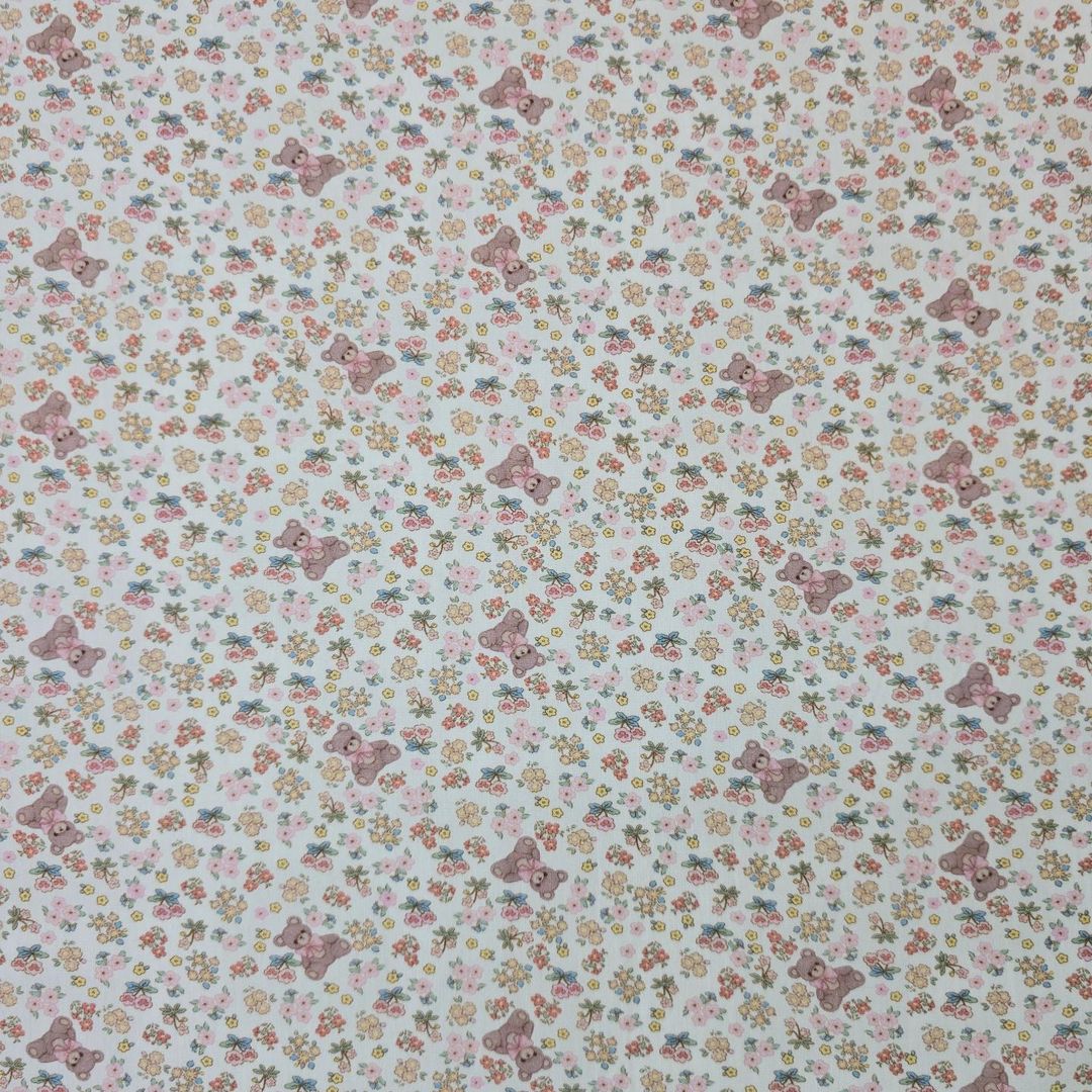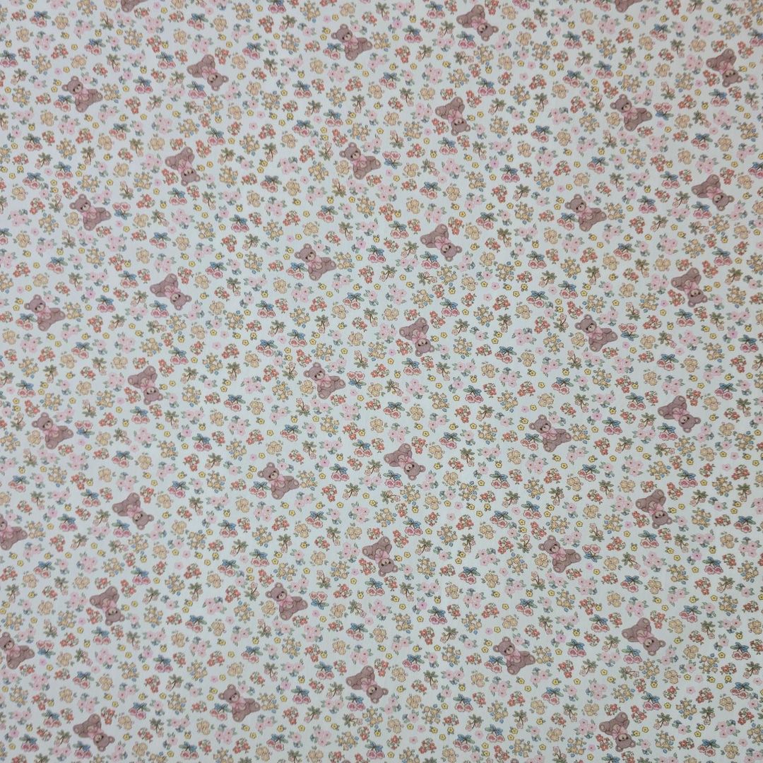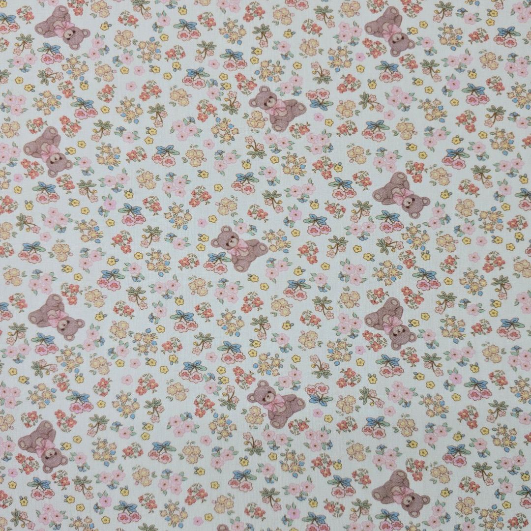 花の庭の模様のテディベア生地、かわいい、子供用、裁縫、キルト - 韓国の生地