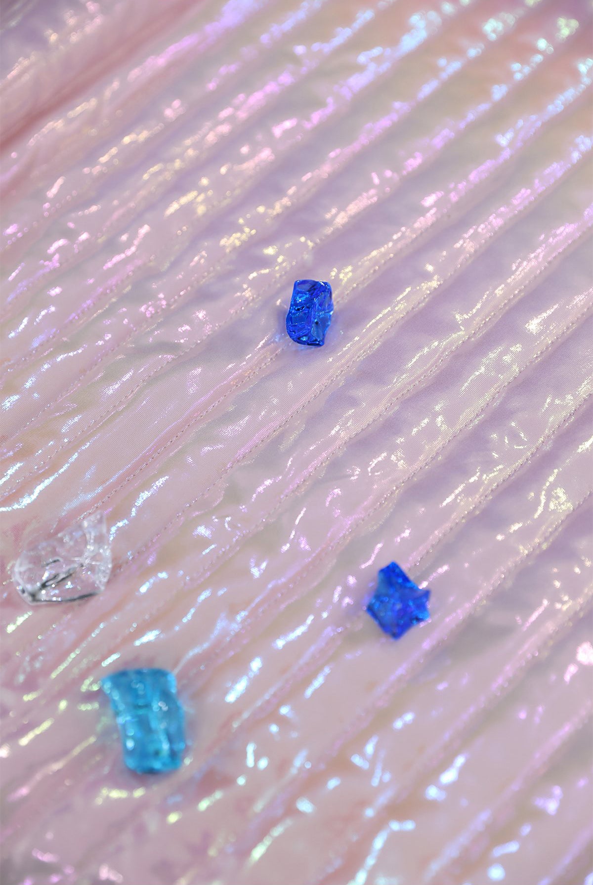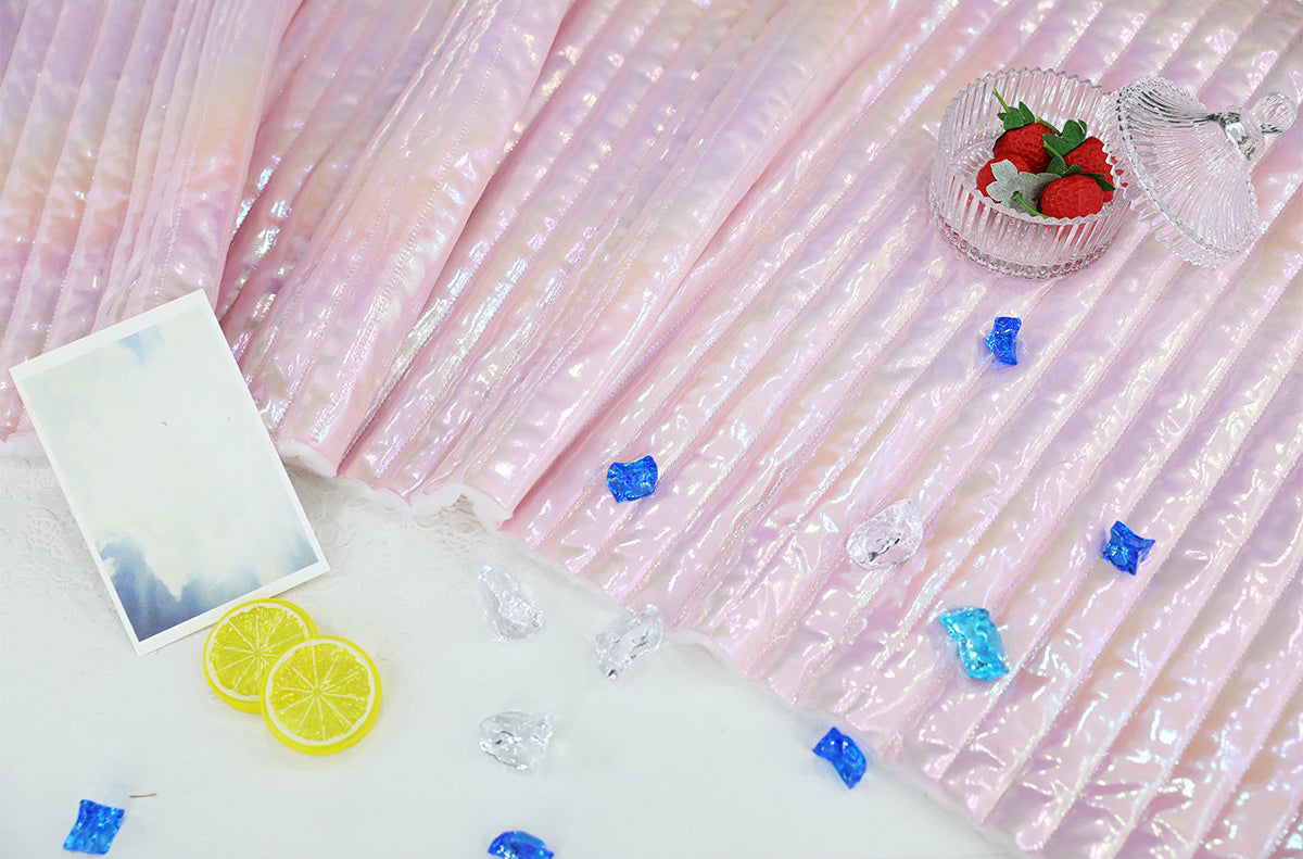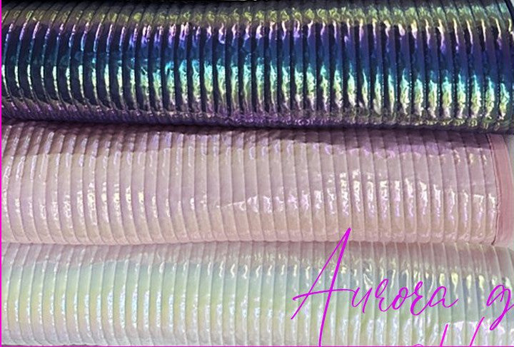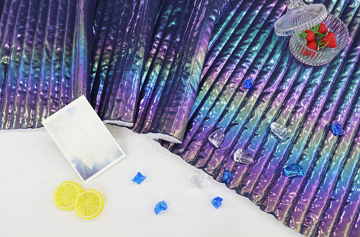 ホログラムオーロラグリッターストライプ柄ポリエステルキルティングヌビ生地 - 韓国生地