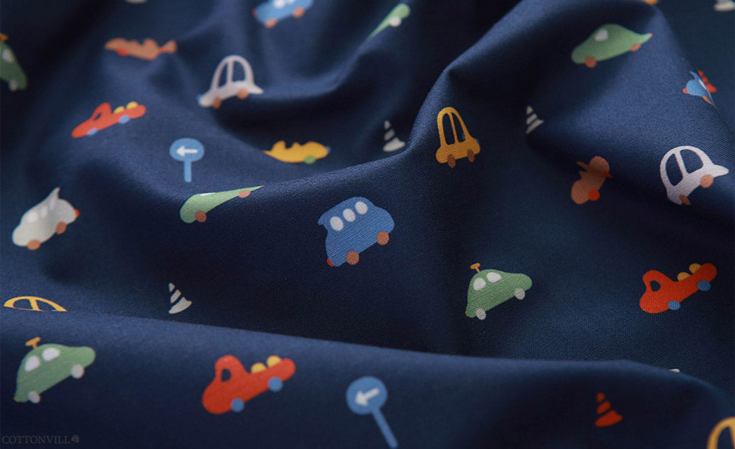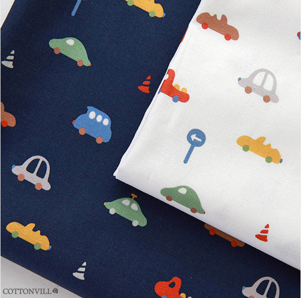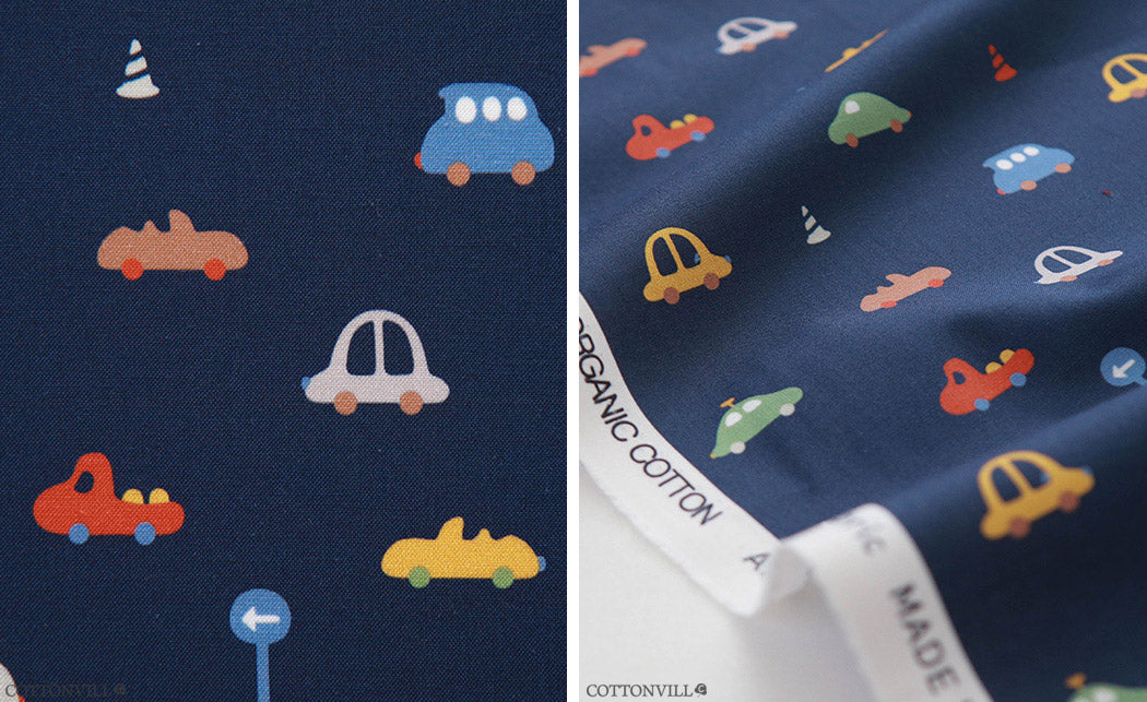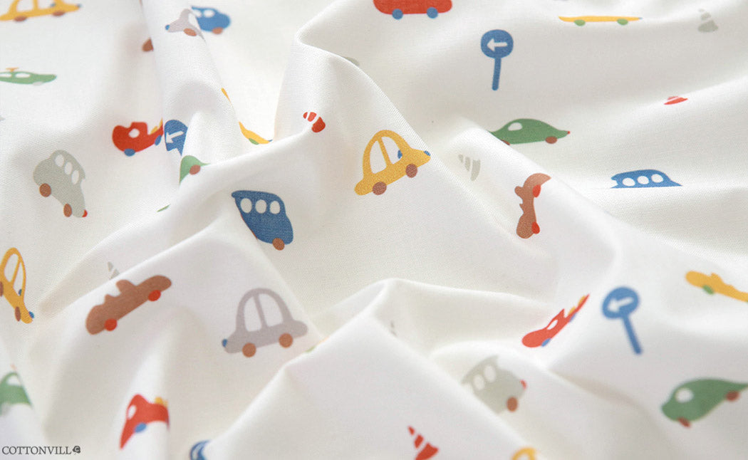 オーガニック 30 年代 ミニカー柄生地 - 韓国生地