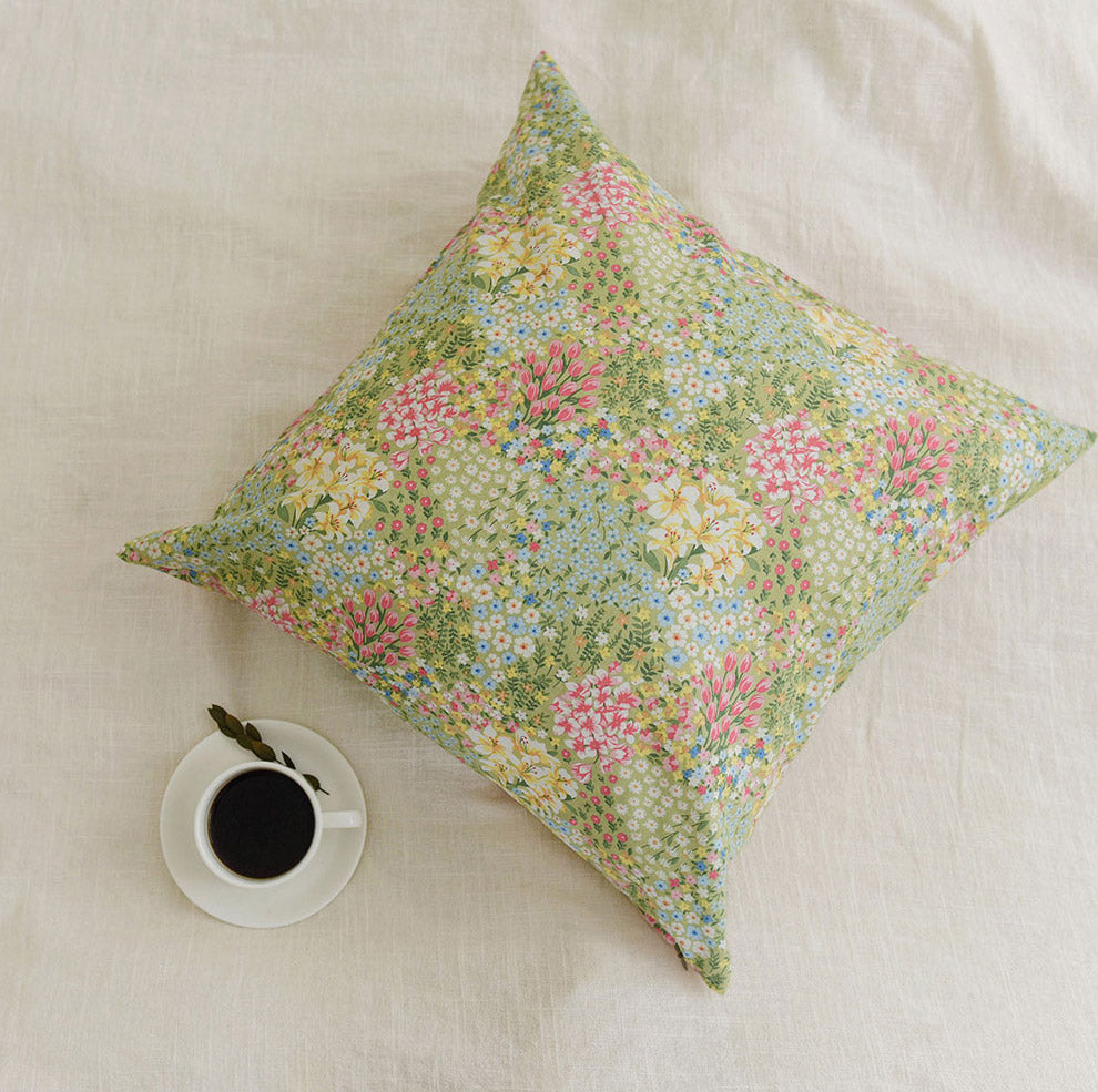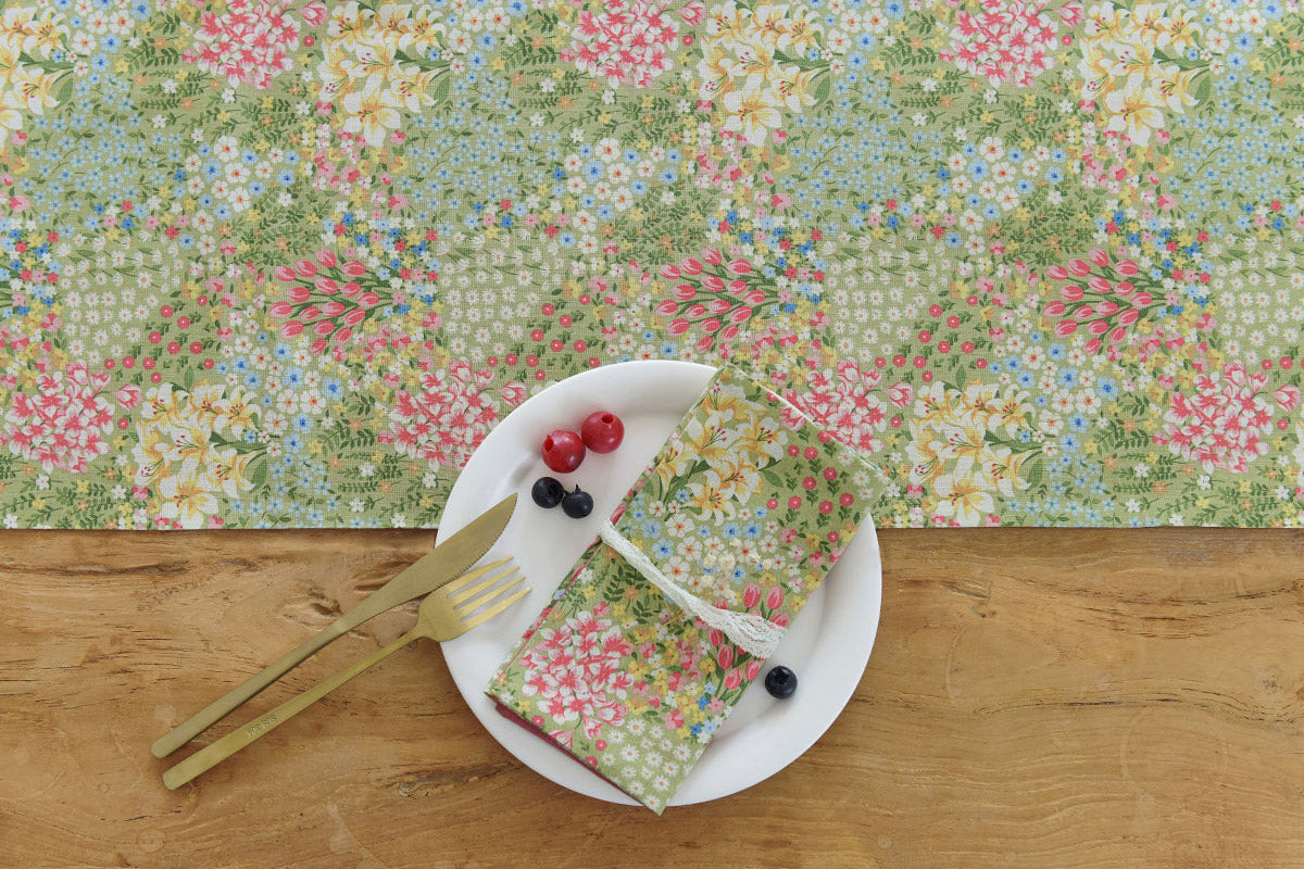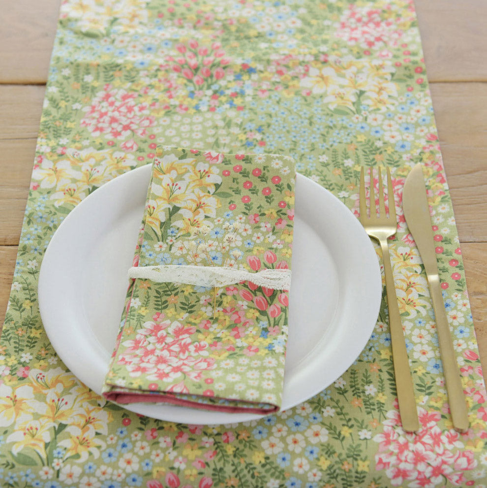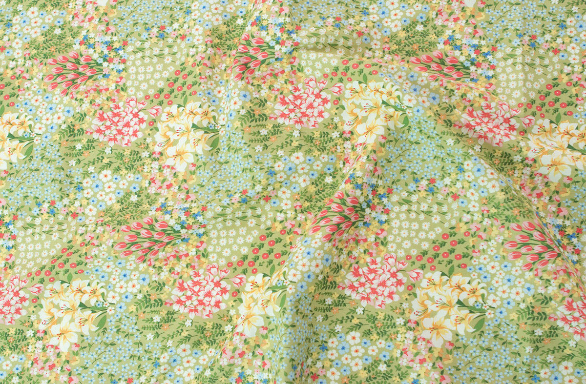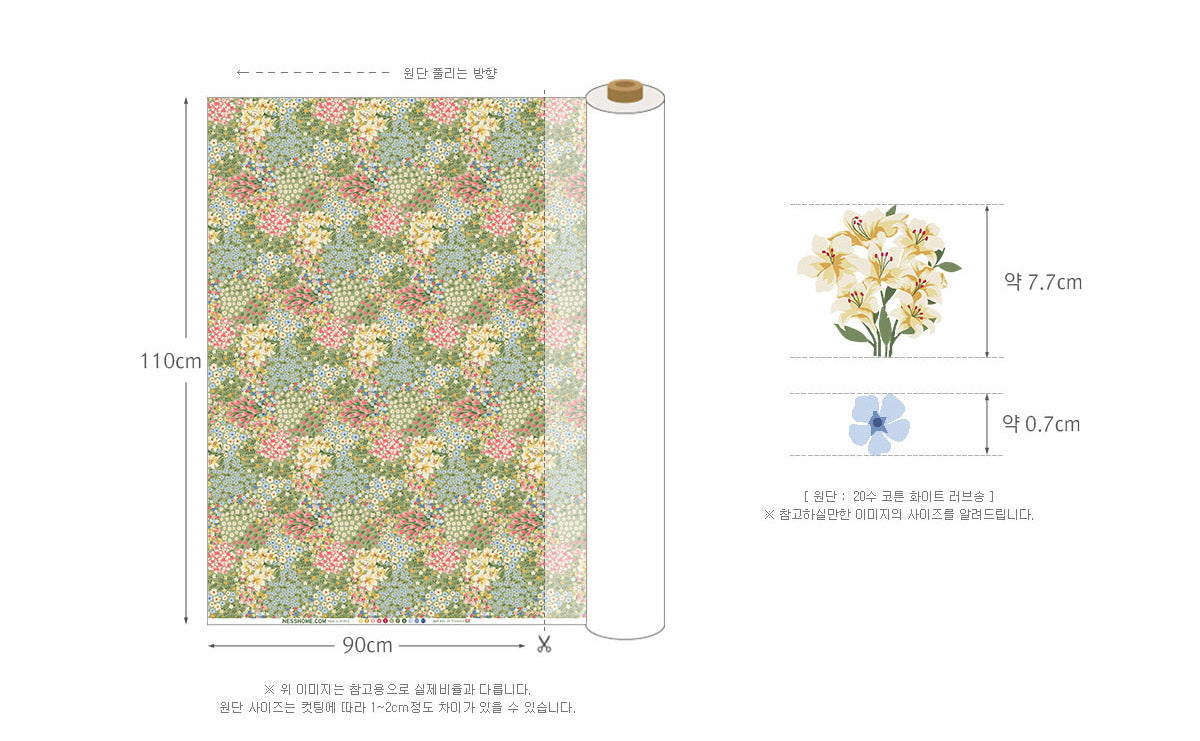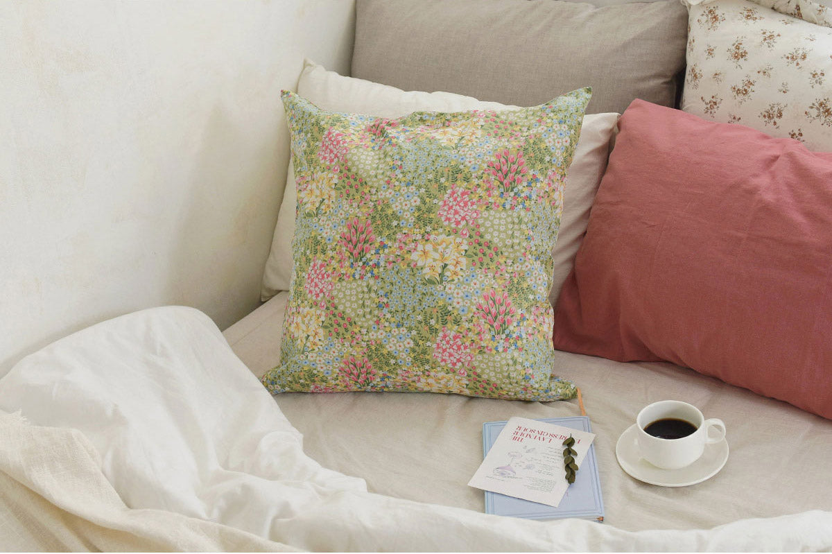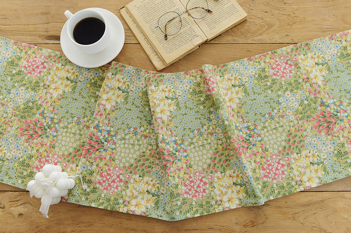グリーンフラワーフローラルガーデン柄生地 - 韓国生地