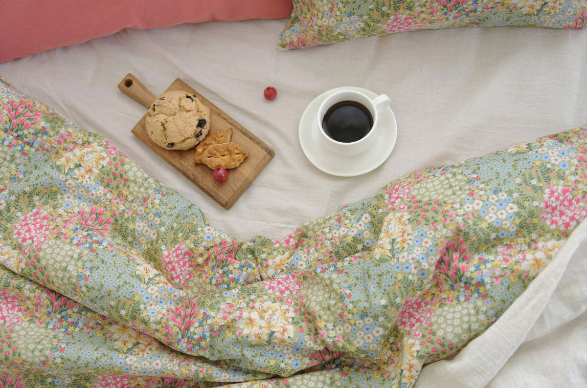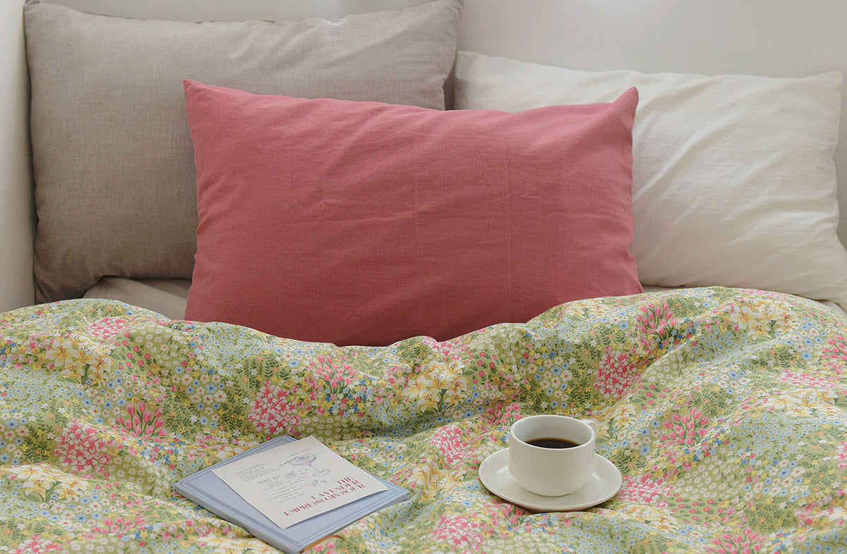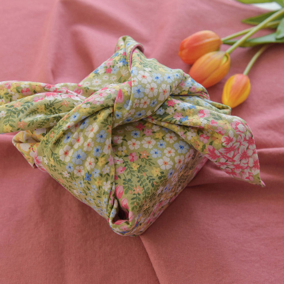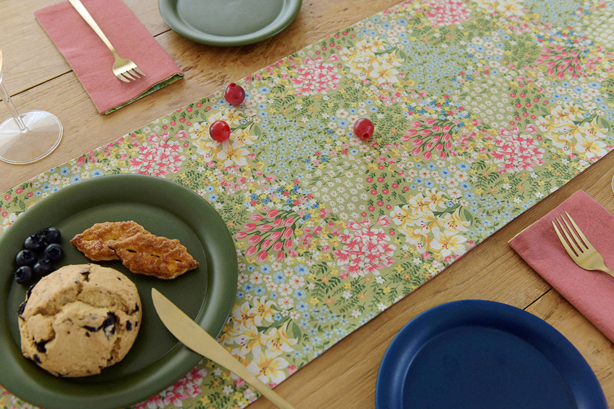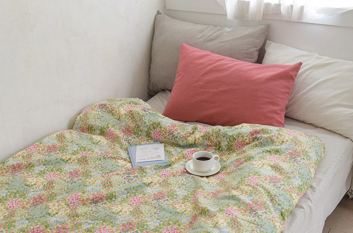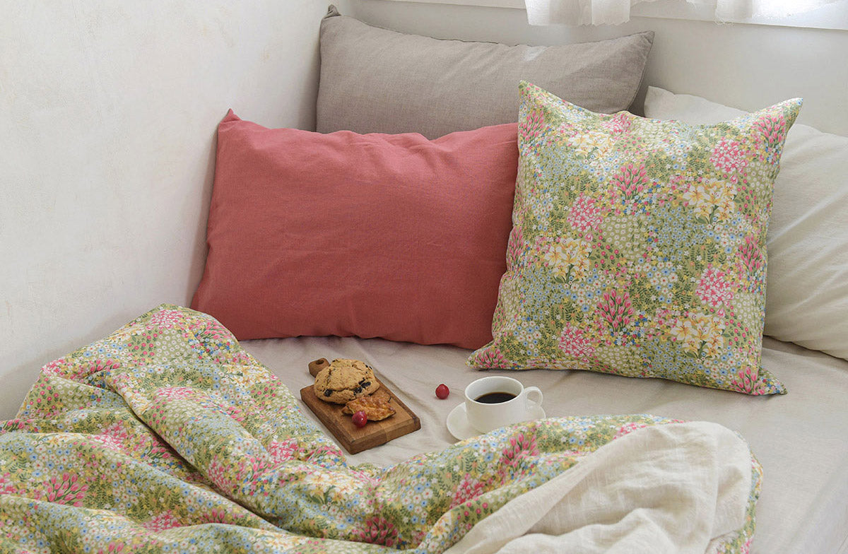 グリーンフラワーフローラルガーデン柄生地 - 韓国生地