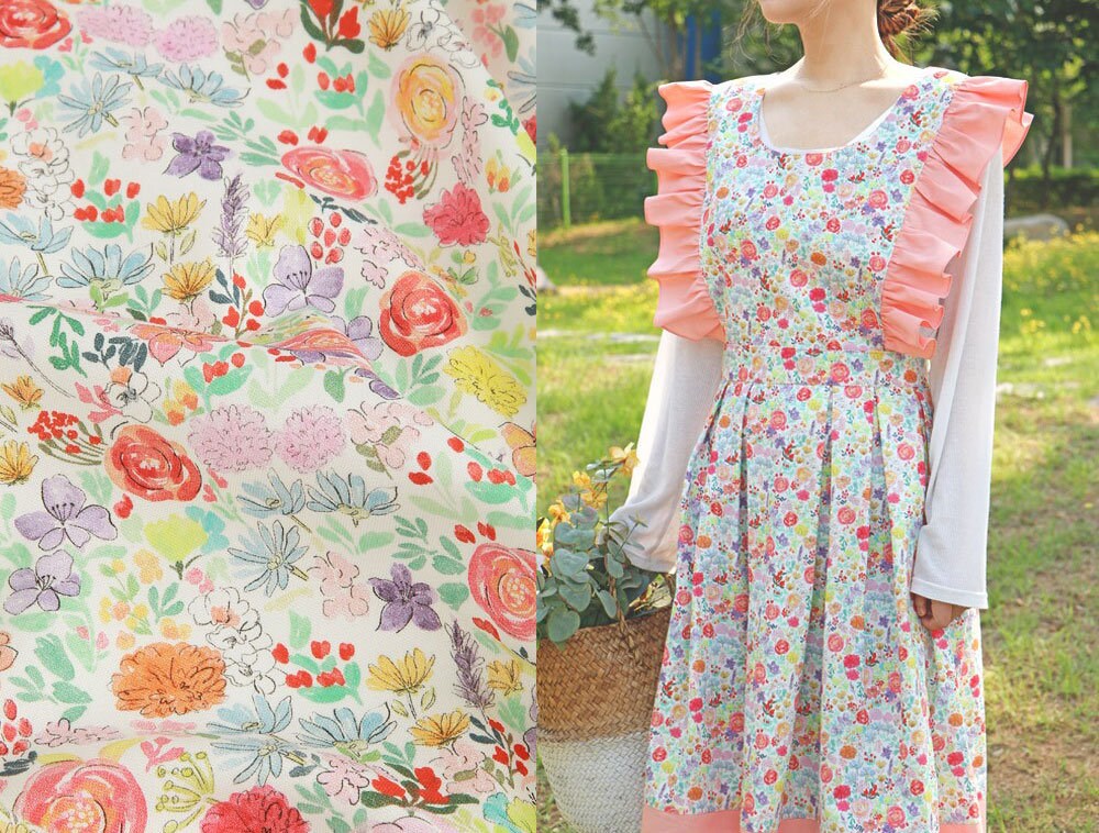 フラワーガーデンの花柄のバラ柄生地 - 韓国の生地