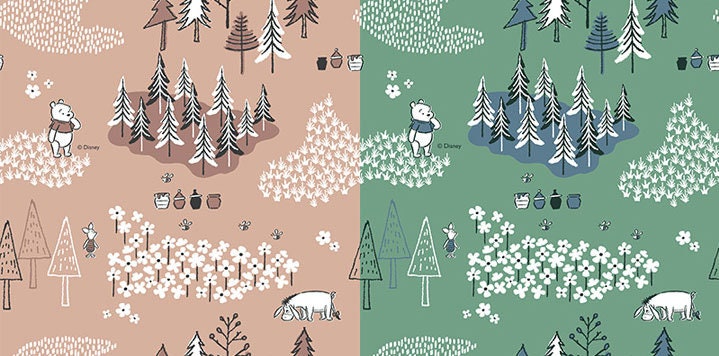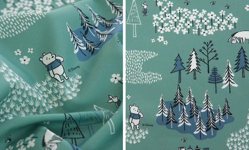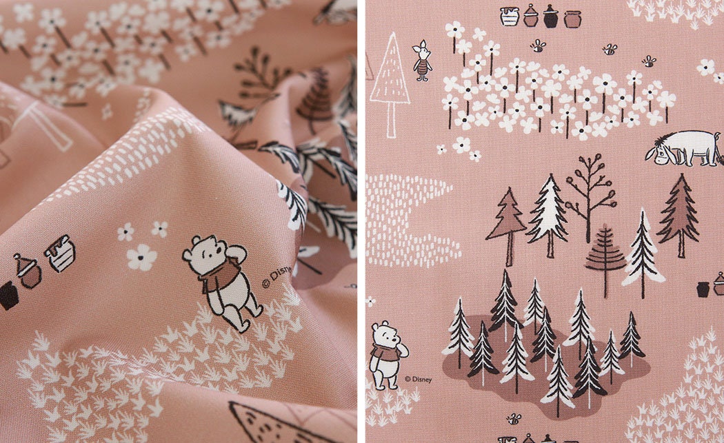 韓国で印刷されたくまのプーさんピグレットイーヨー柄のライセンス生地
