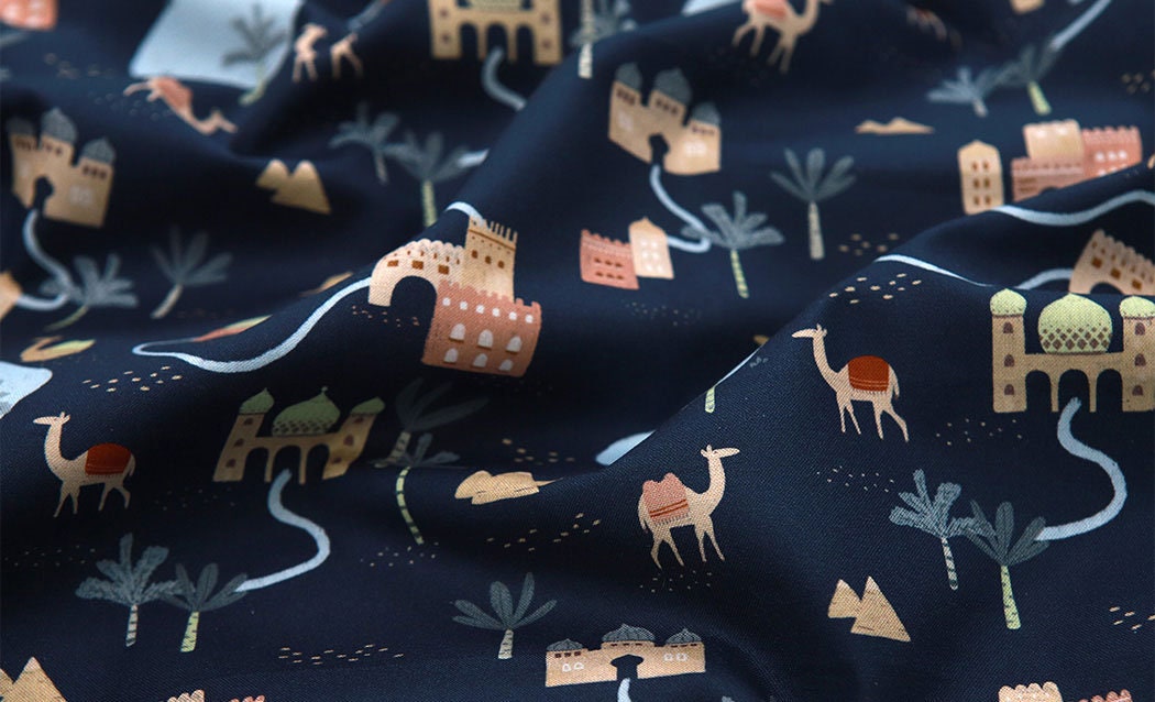 この生地はDTP(デジタルテキスタイルプリント)方式で印刷されています