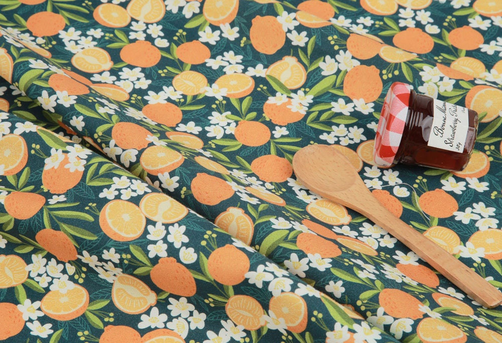 ハンラボンオレンジフルーツシトラス柄生地 - 韓国生地
