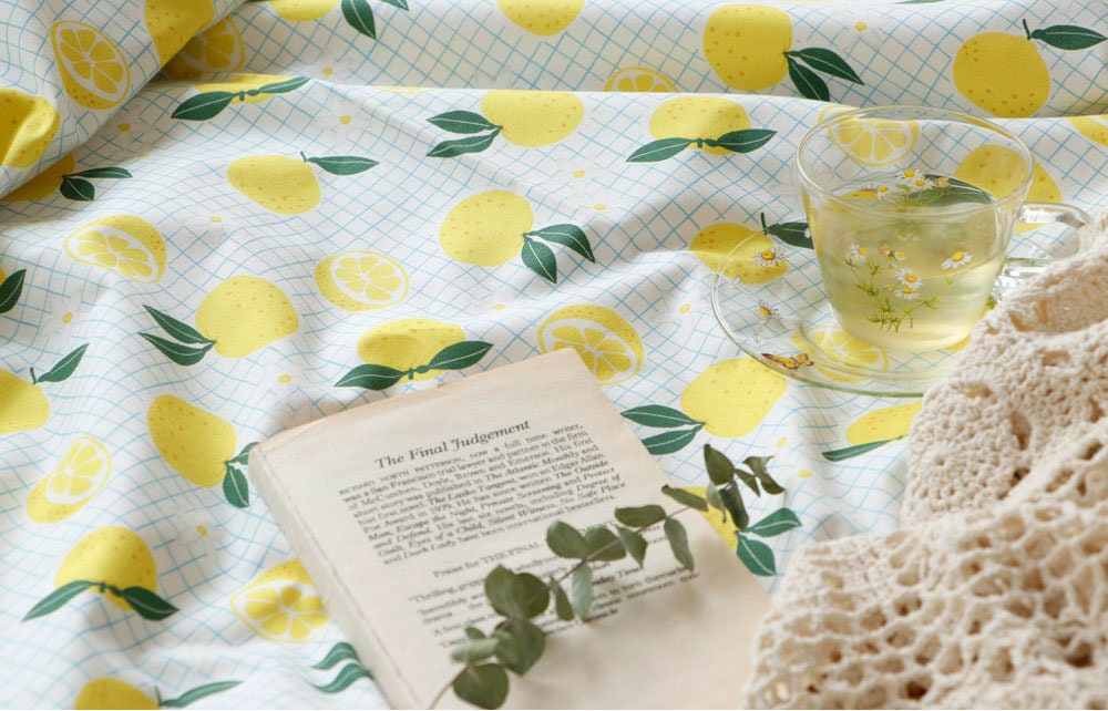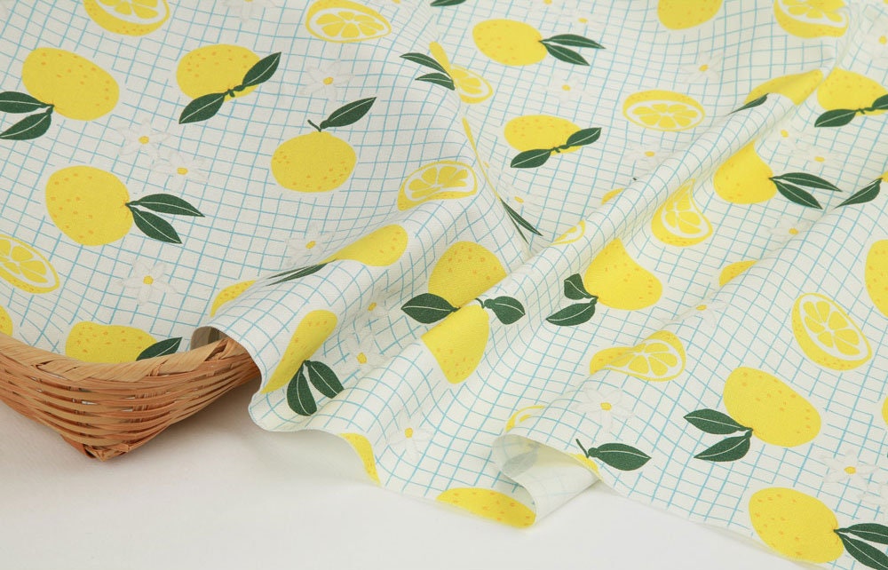 済州柚子シトロン柄生地 韓国製 半ヤード