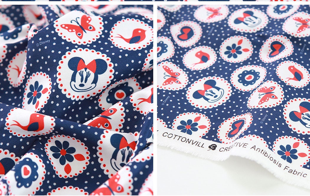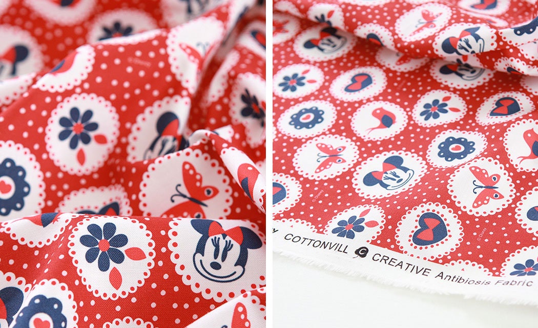 ディズニー ミッキーマウス ミニーマウス ドイリー柄 コットン生地 韓国製 半ヤード単位