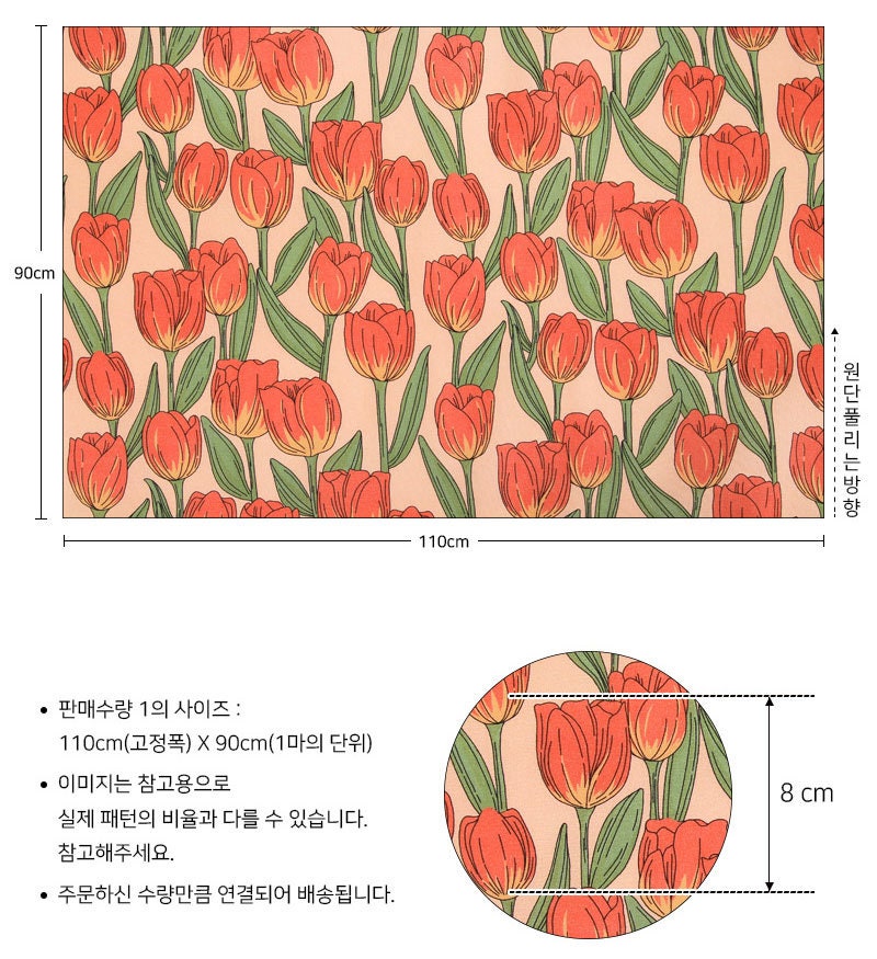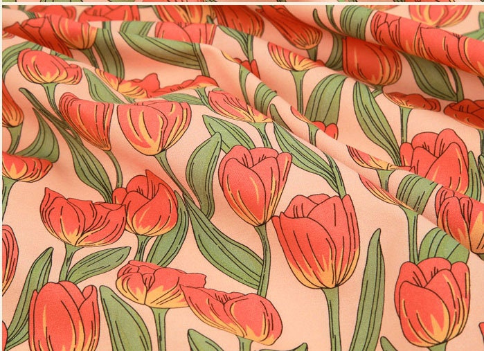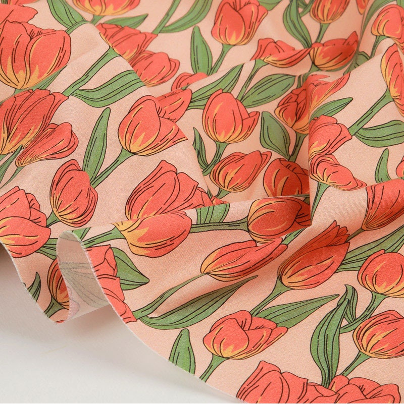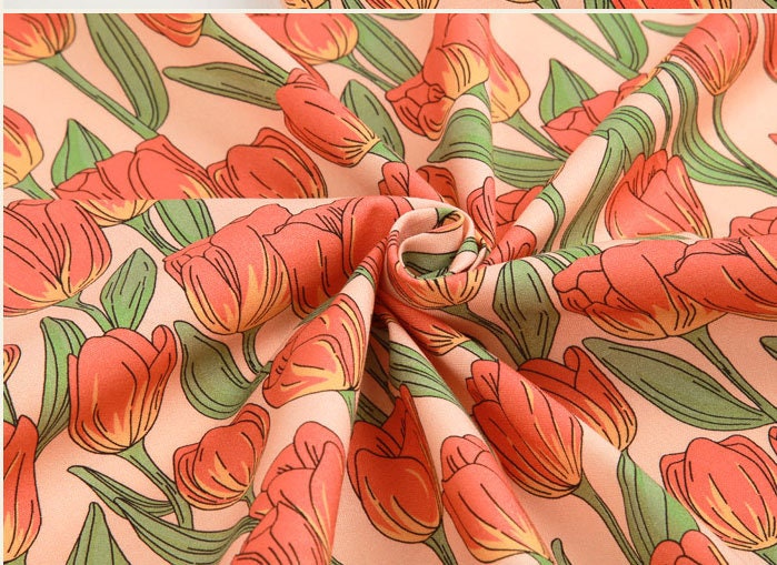 チューリップの花の花柄生地、花柄生地 - 韓国の生地