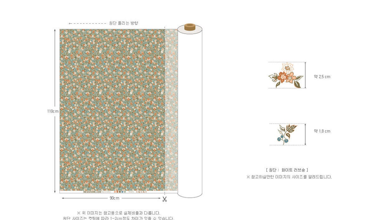 花の円形模様の生地、かわいい、裁縫、キルト - 韓国の生地