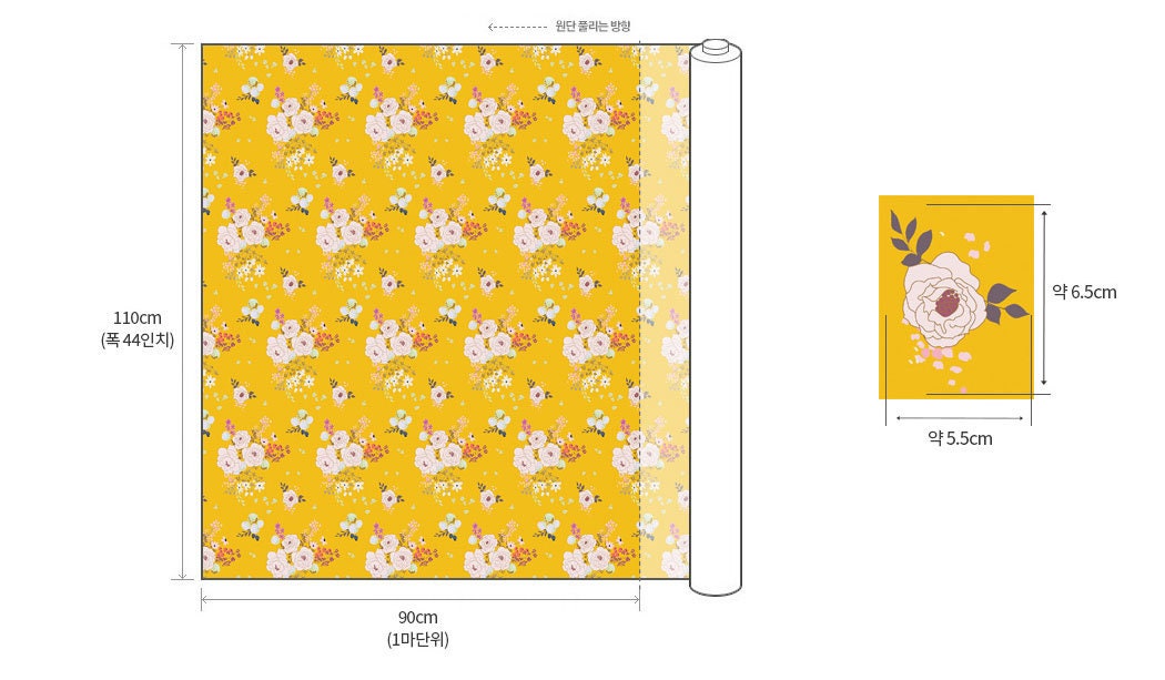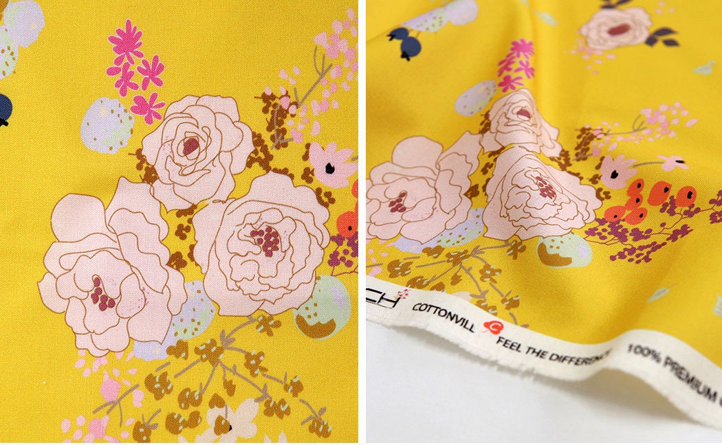 牡丹バラの花柄生地、かわいい、裁縫、キルト - 韓国の生地
