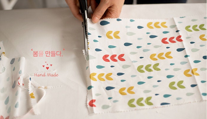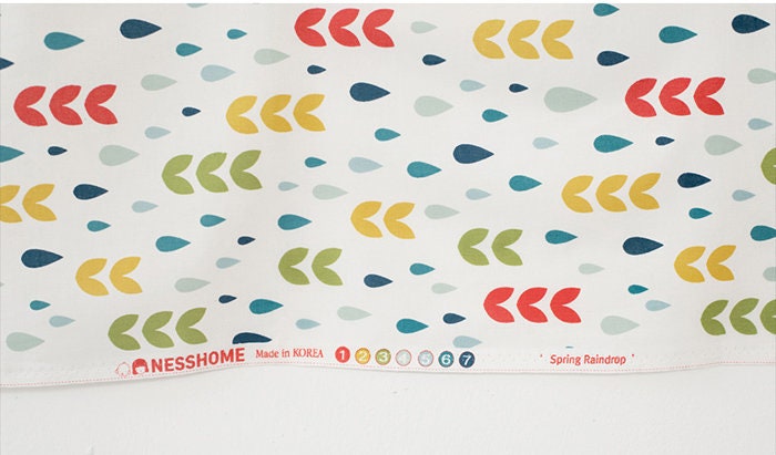 雨滴と新芽の模様の生地、かわいい、子供用、裁縫、キルト - 韓国の生地
