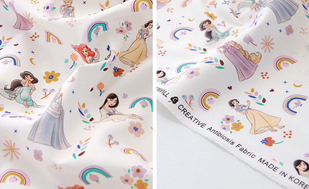 ディズニープリンセス 白雪姫 ムーラン ジャスミン ラプンツェル アリエル シンデレラ 生地は韓国で印刷されています
