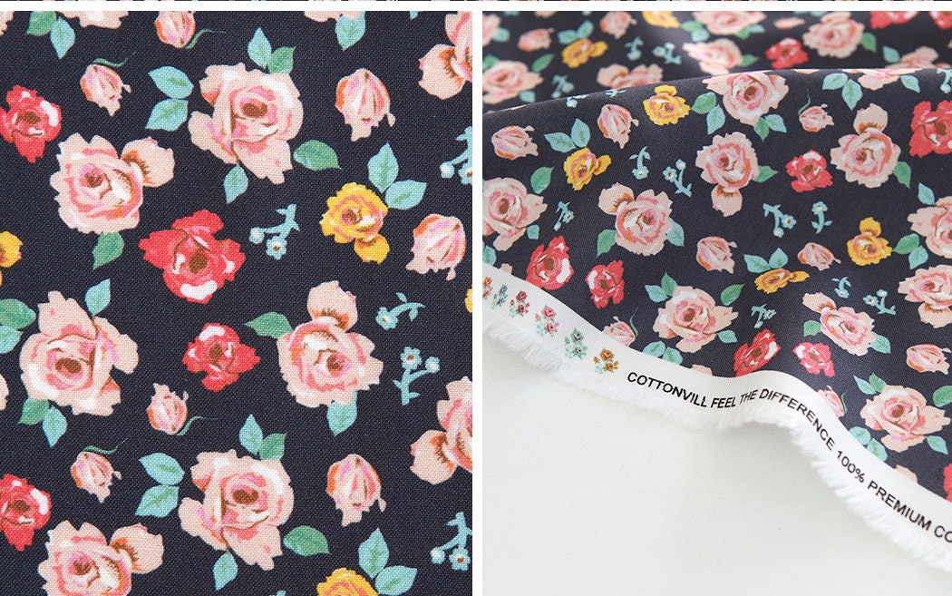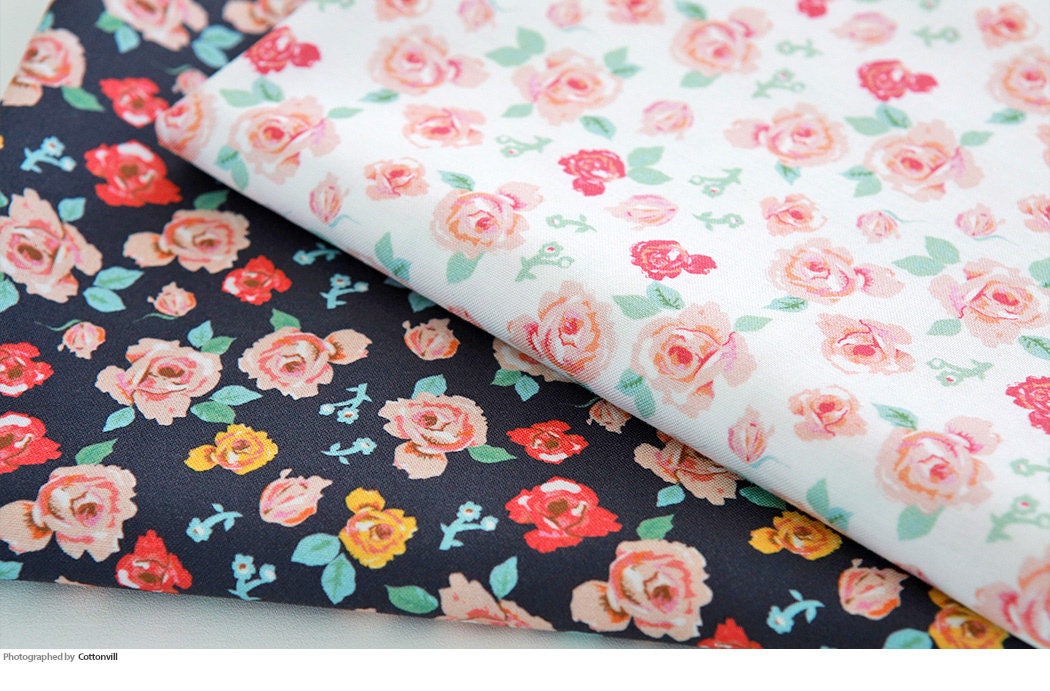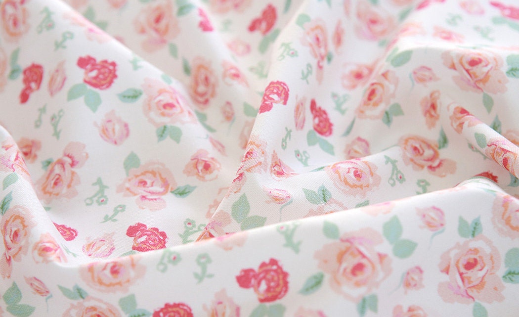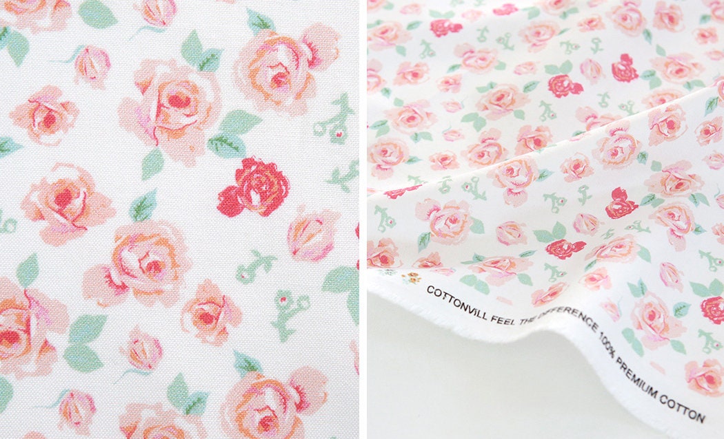 バラの花柄生地、かわいい、裁縫、キルト - 韓国の生地