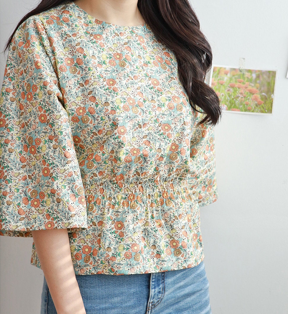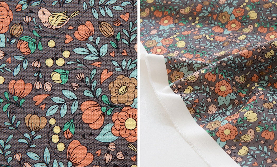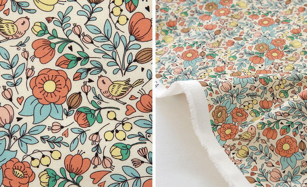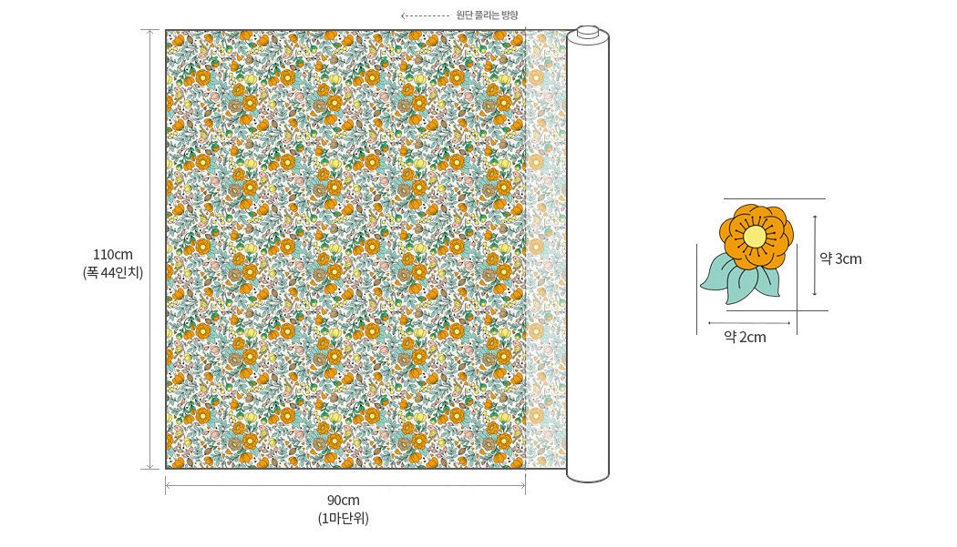 マリーゴールドの花柄生地、かわいい、裁縫、キルト - 韓国の生地