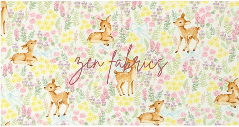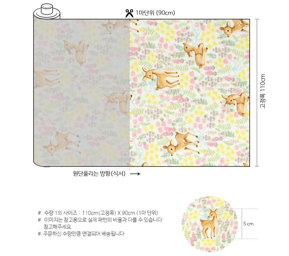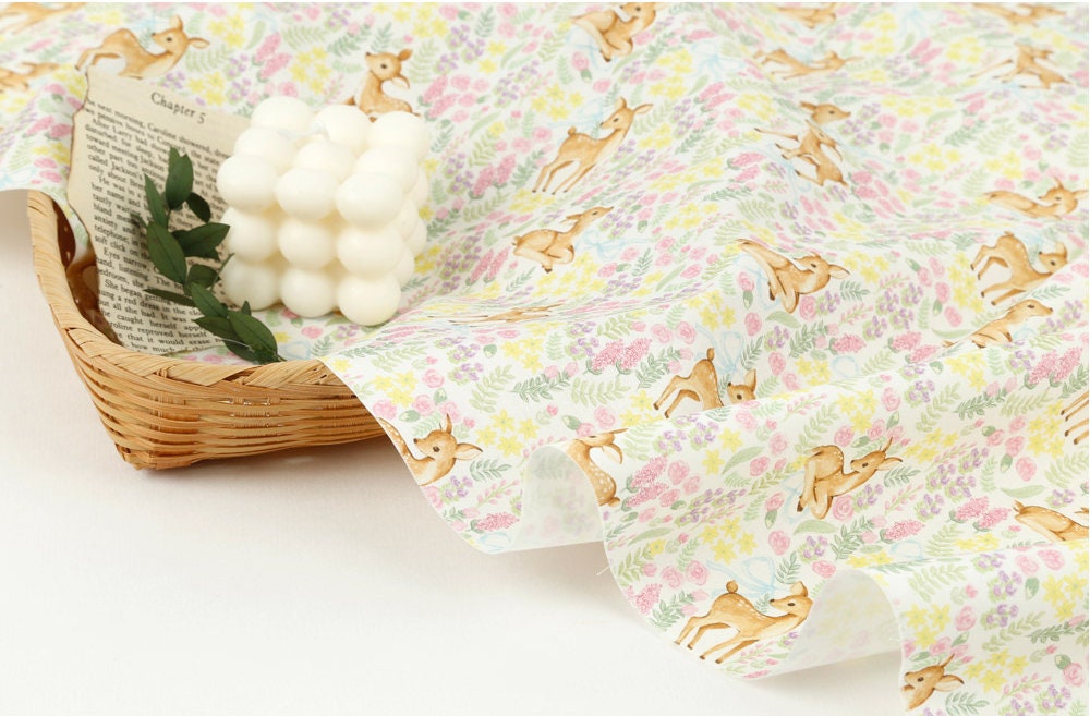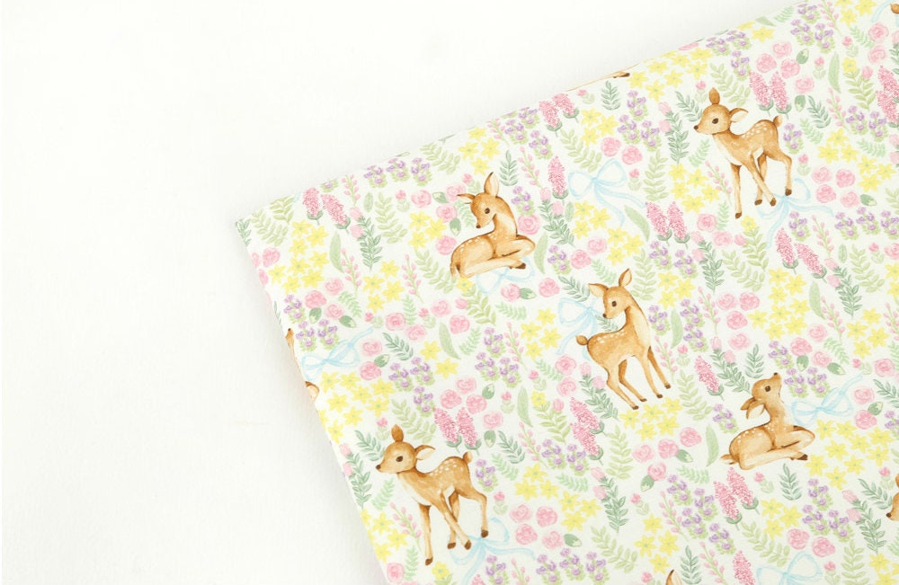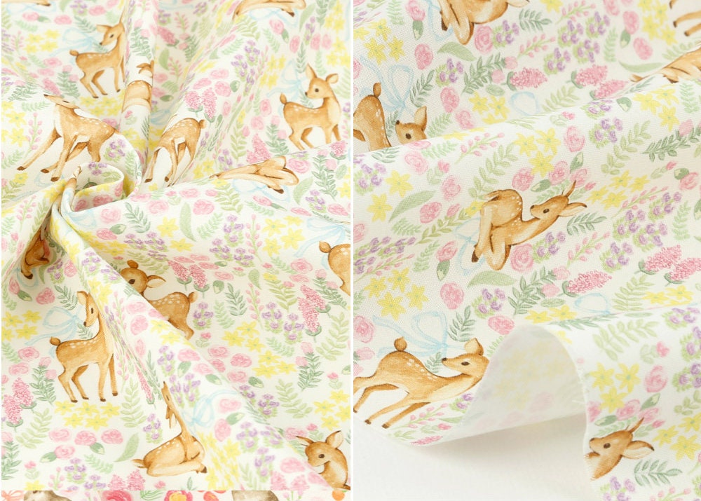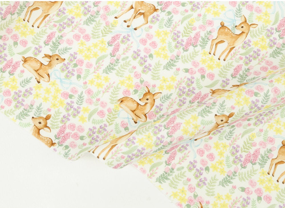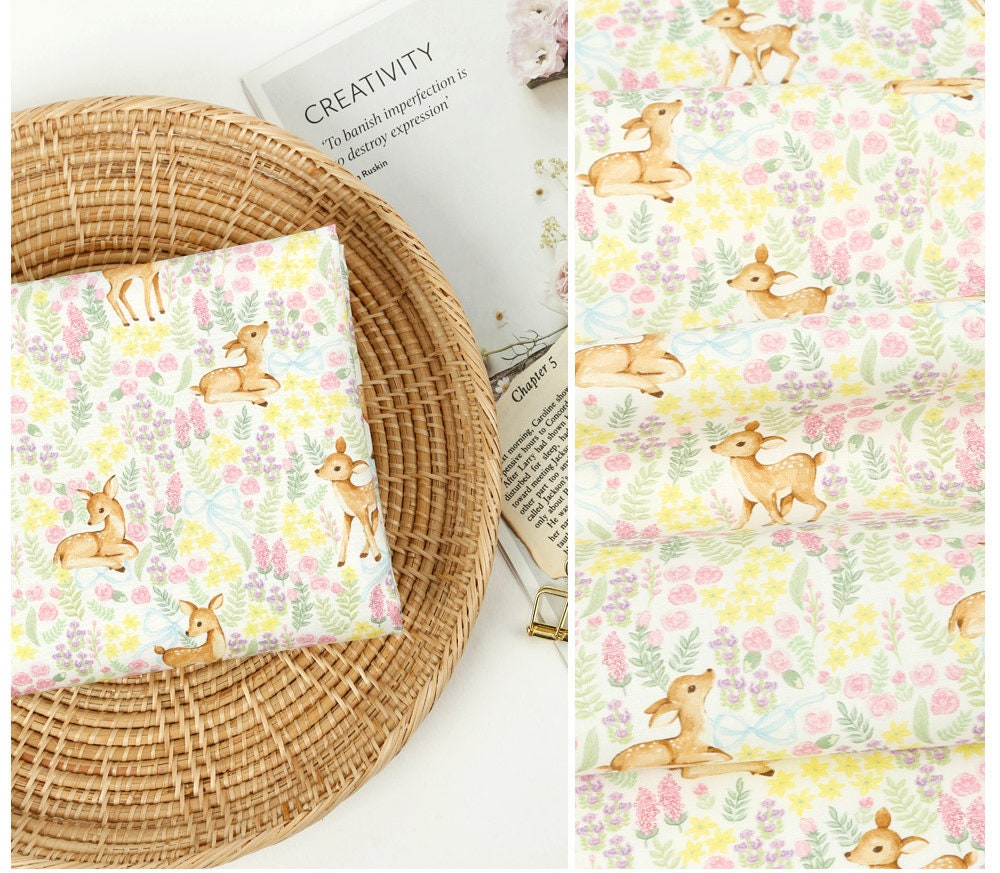 花と鹿の動物柄生地、動物柄生地 - 韓国生地