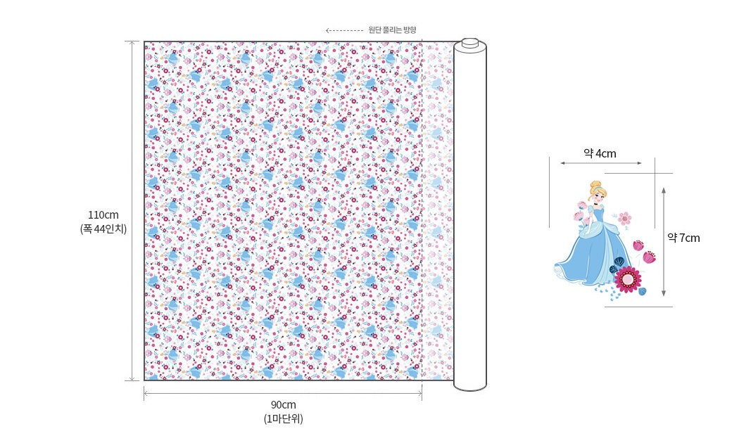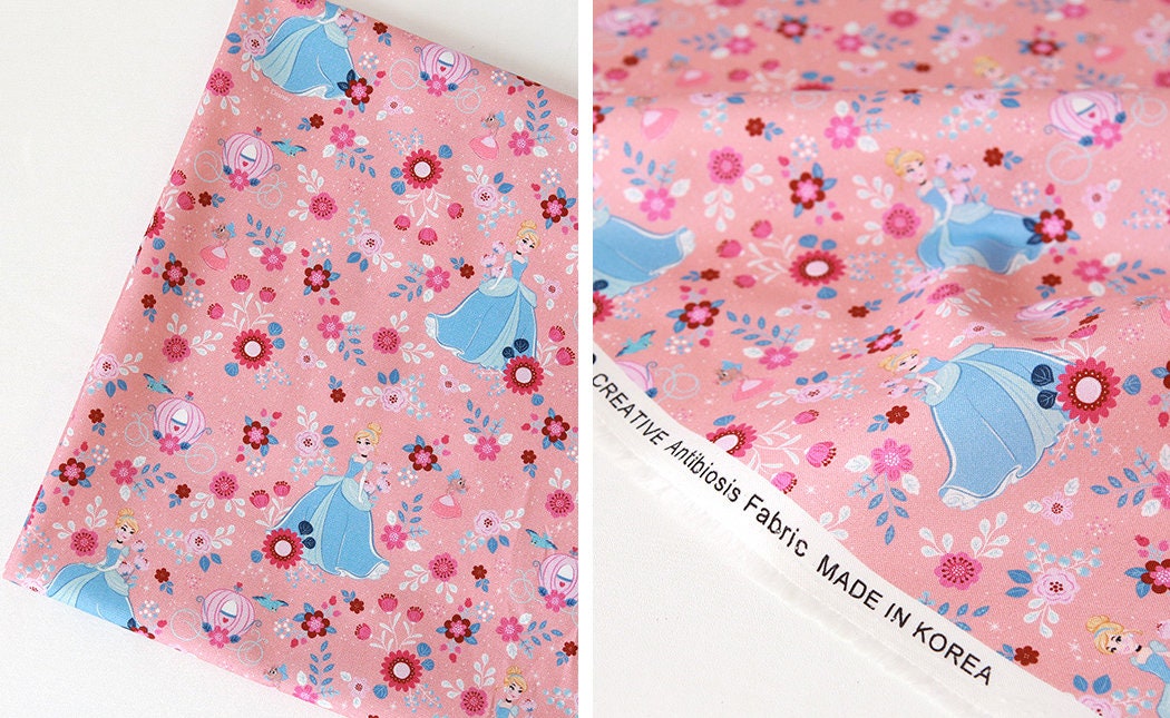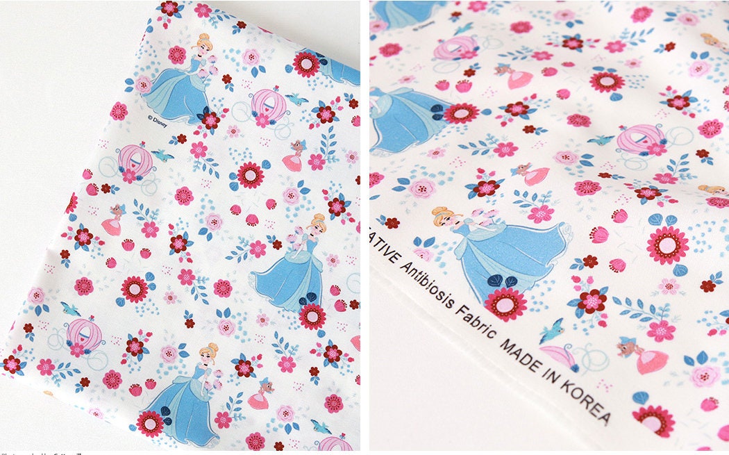 韓国でプリントされたディズニープリンセスシンデレラ生地(半ヤード単位)