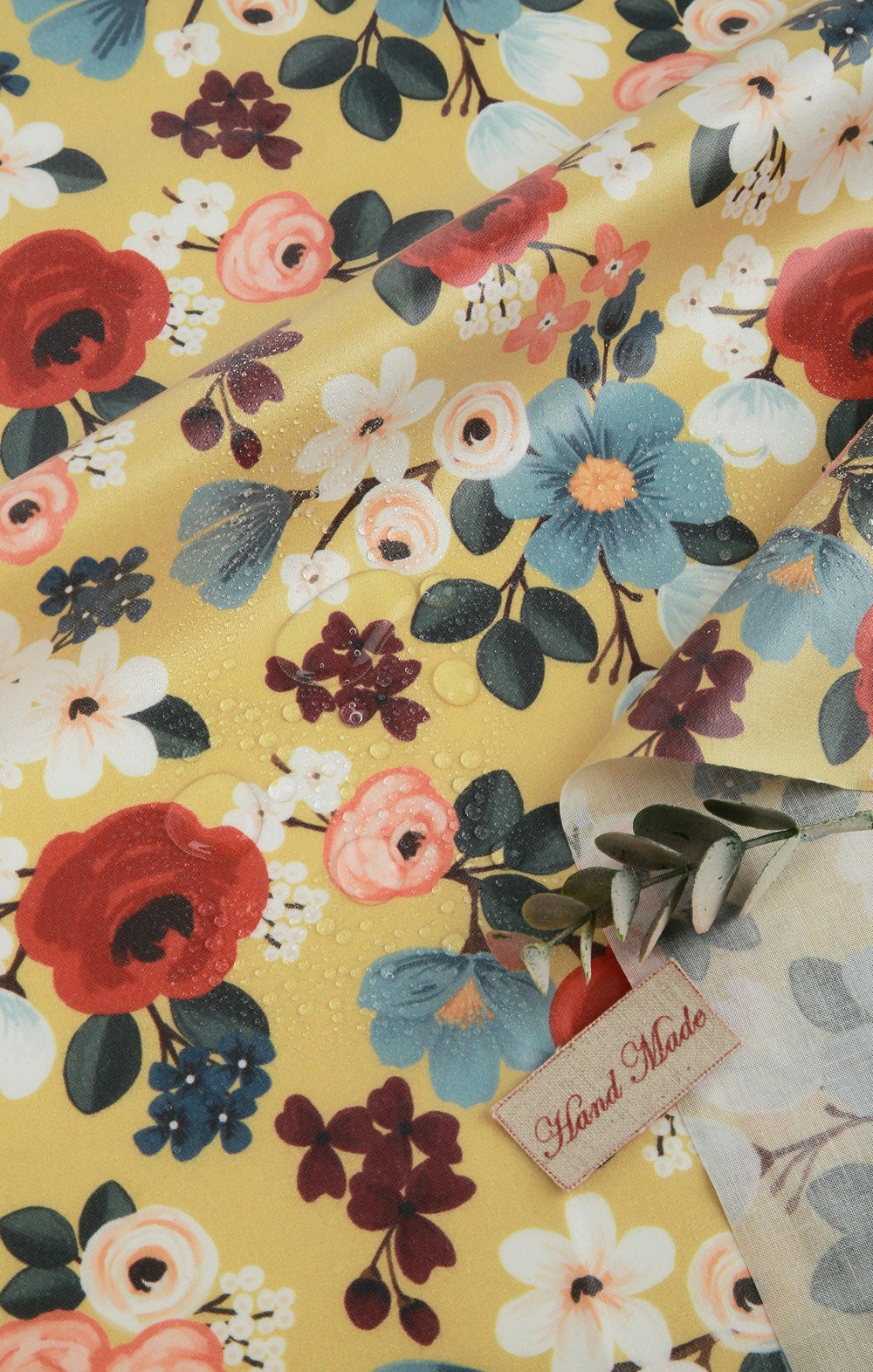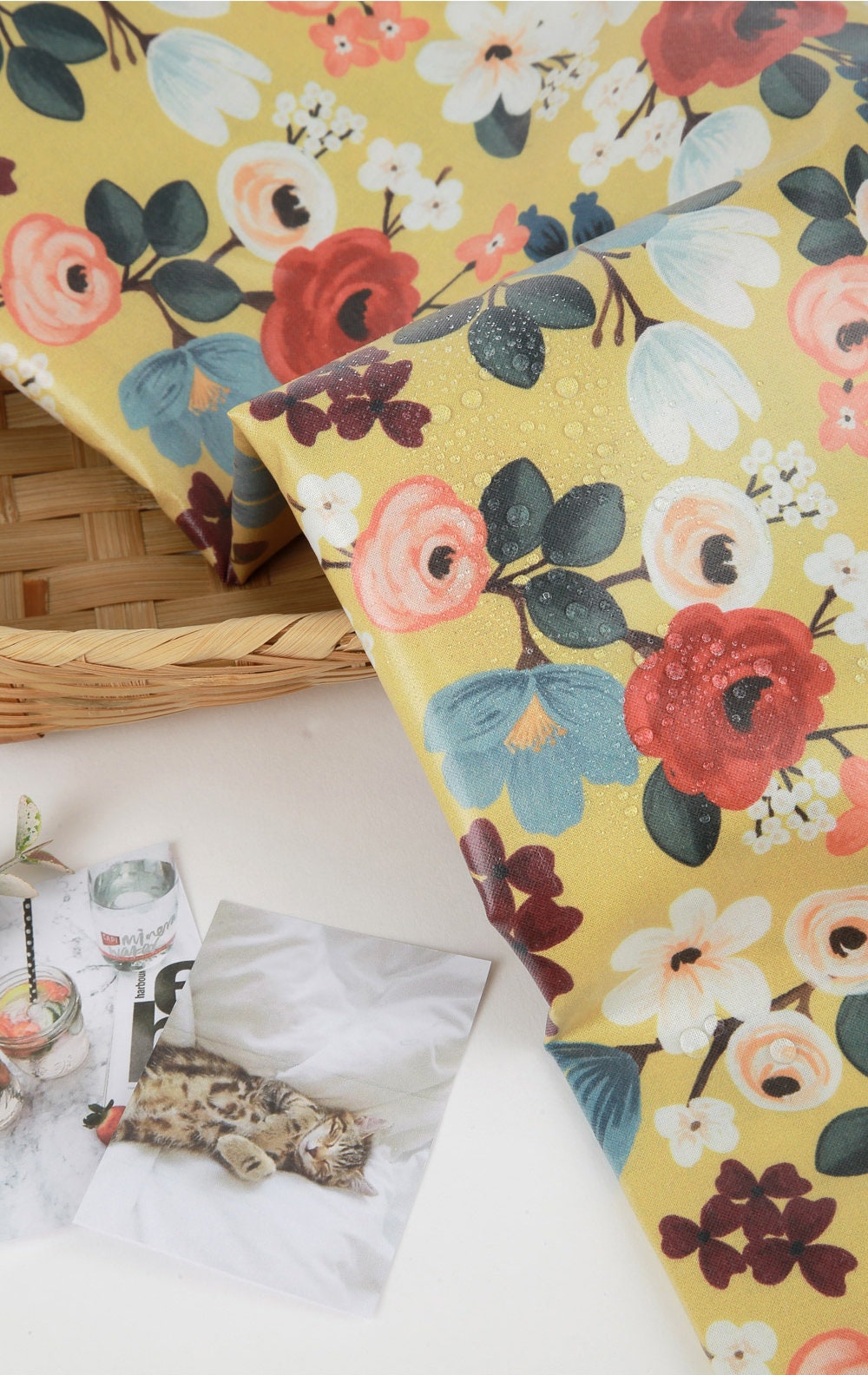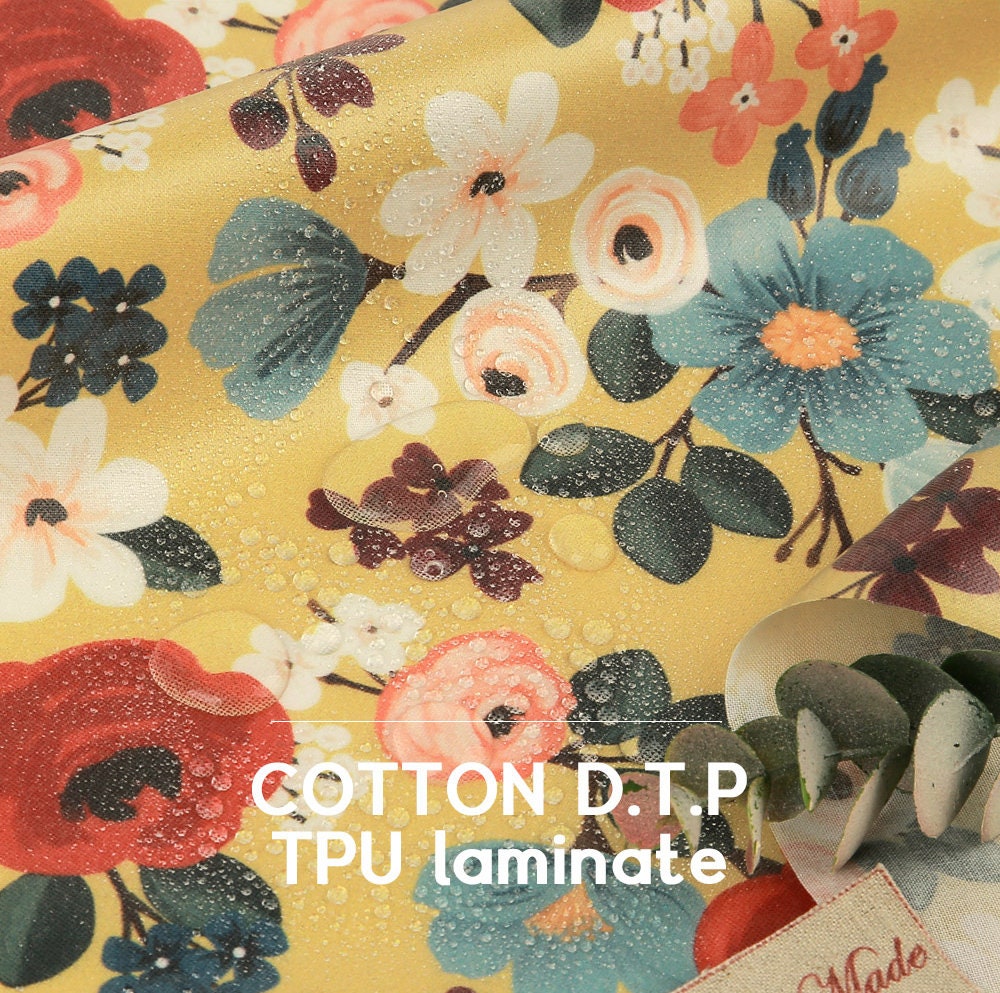 ラミネート加工TPU防水コットン生地 ローズフラワー 花柄プリント生地 韓国製 ヤード単位