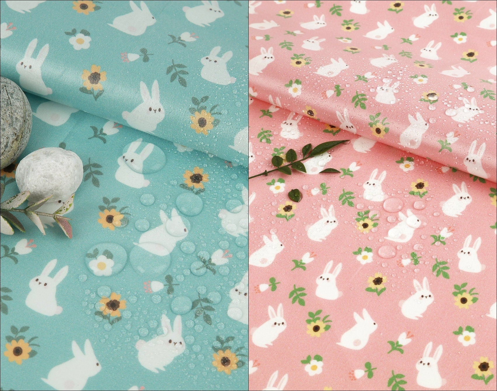 ラミネート加工コットン動物ウサギバニー生地 - 韓国生地