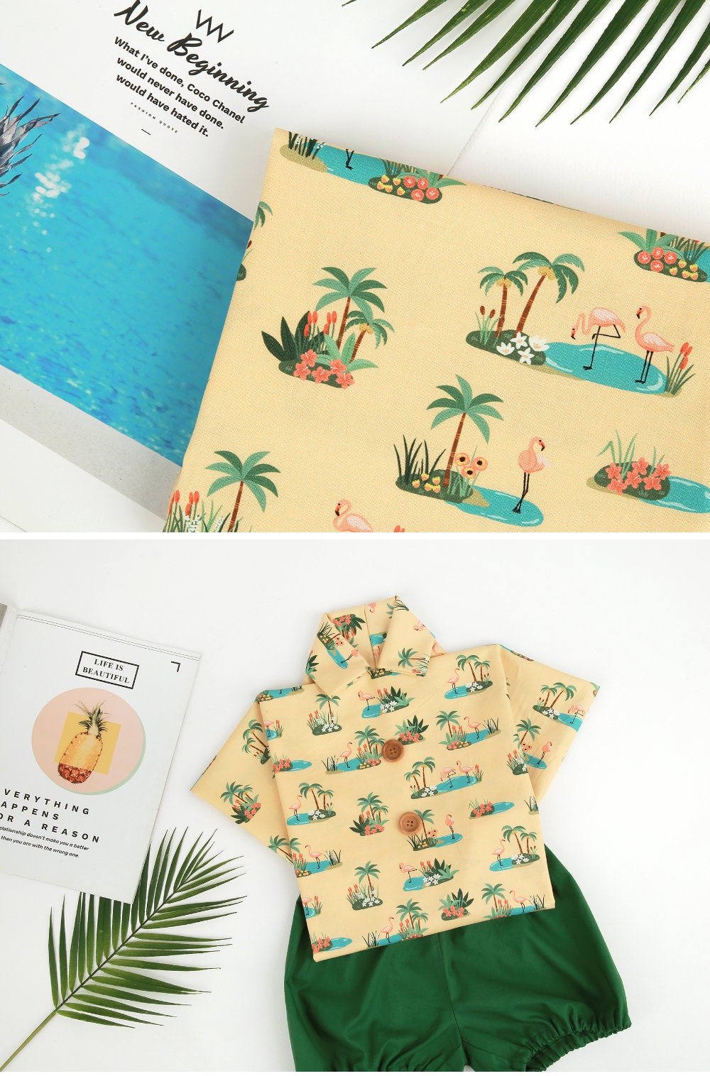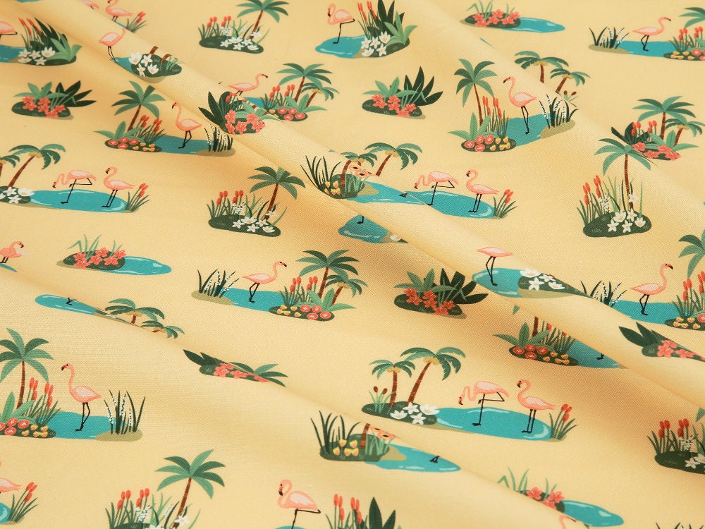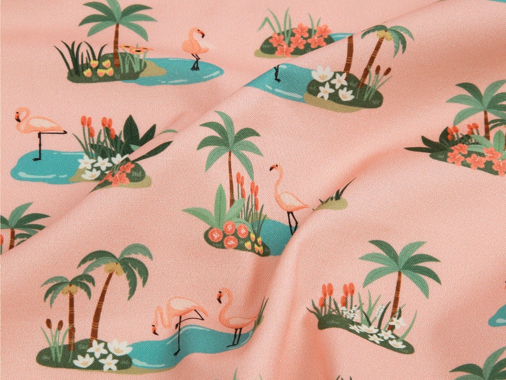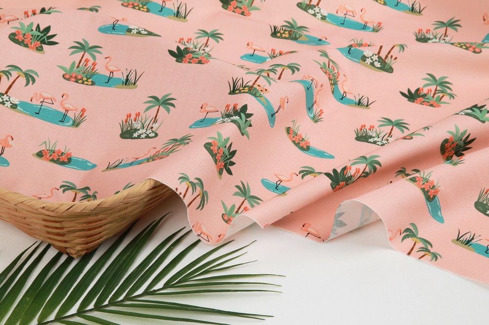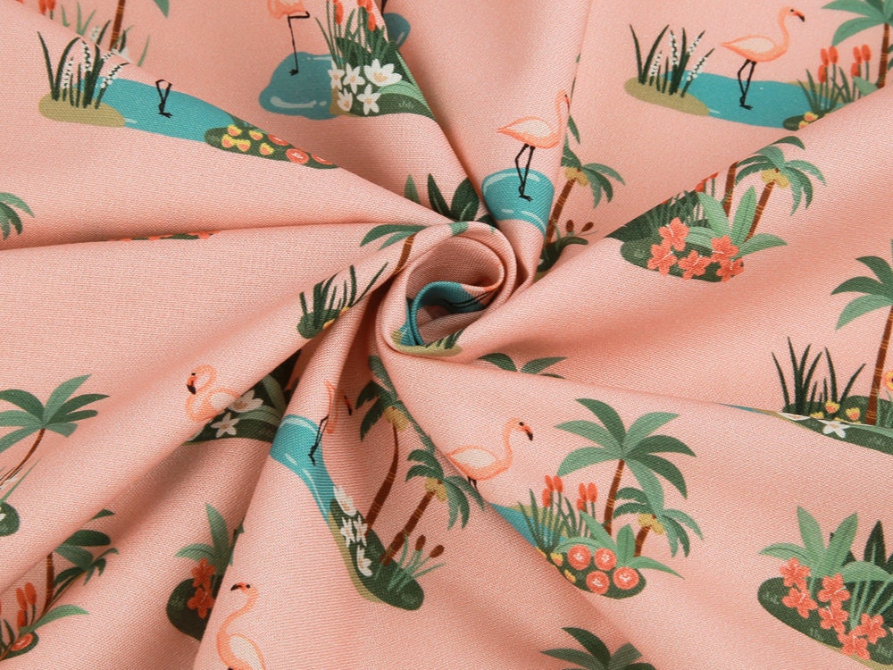 トロピカルオアシスフラミンゴ柄生地