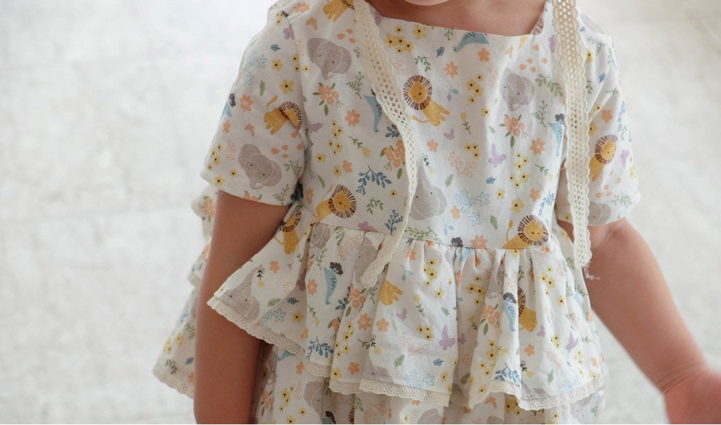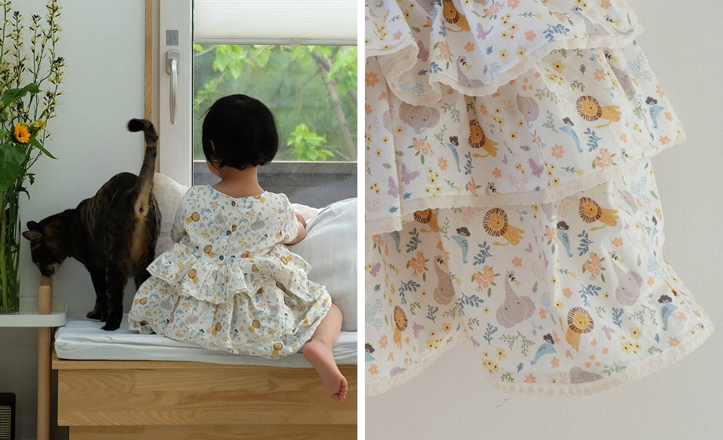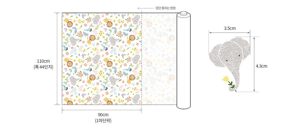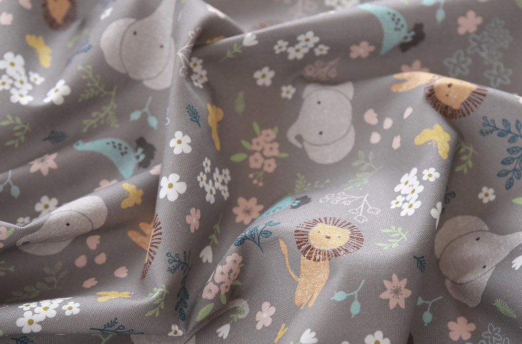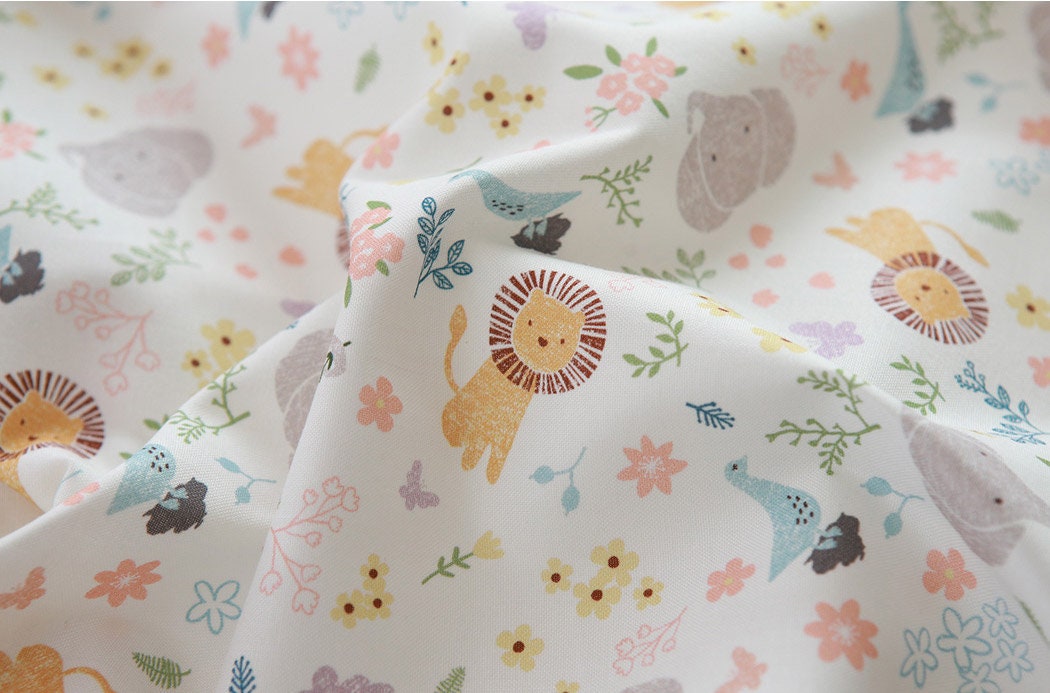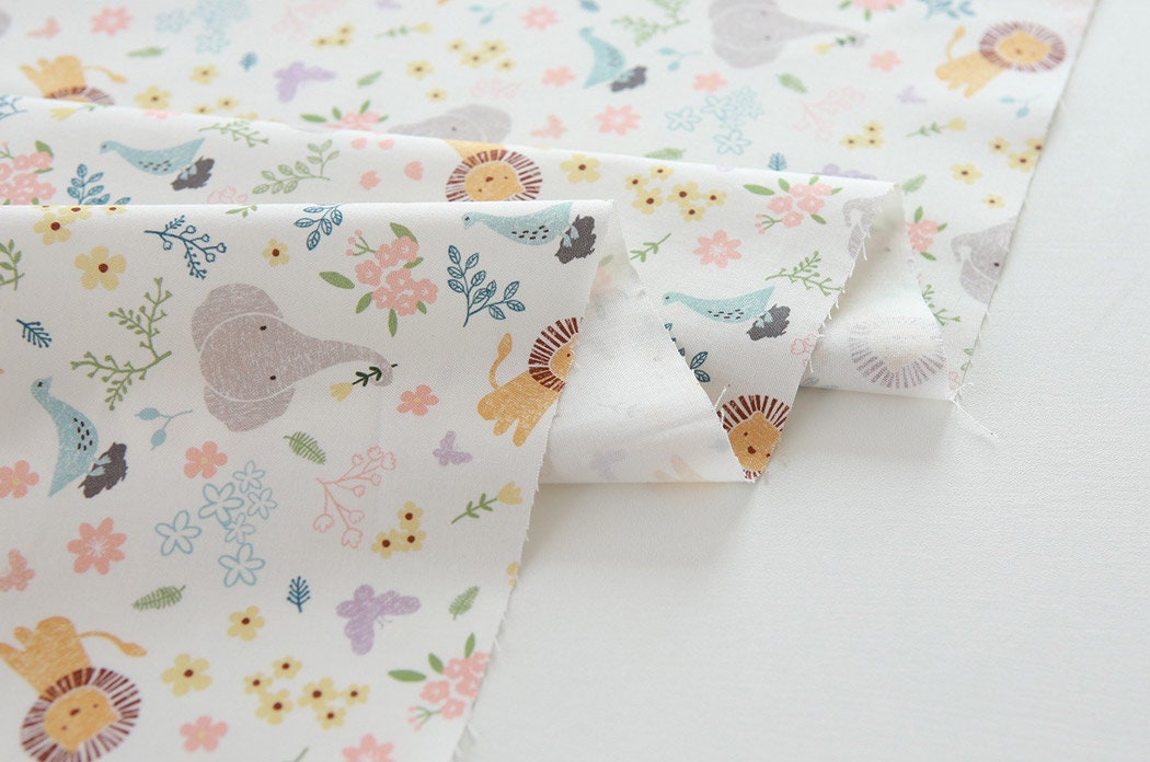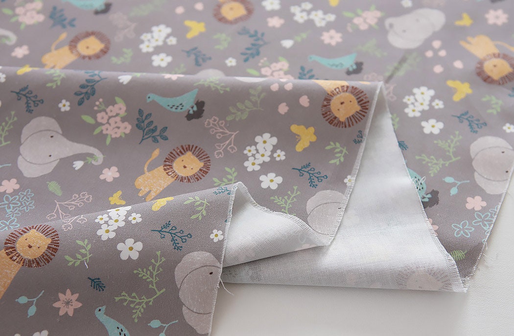 かわいい動物農場のライオン象柄生地 - 韓国生地