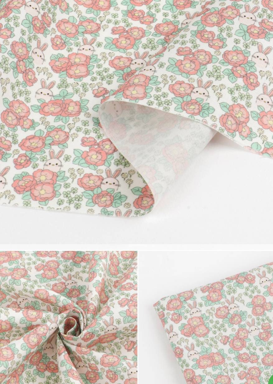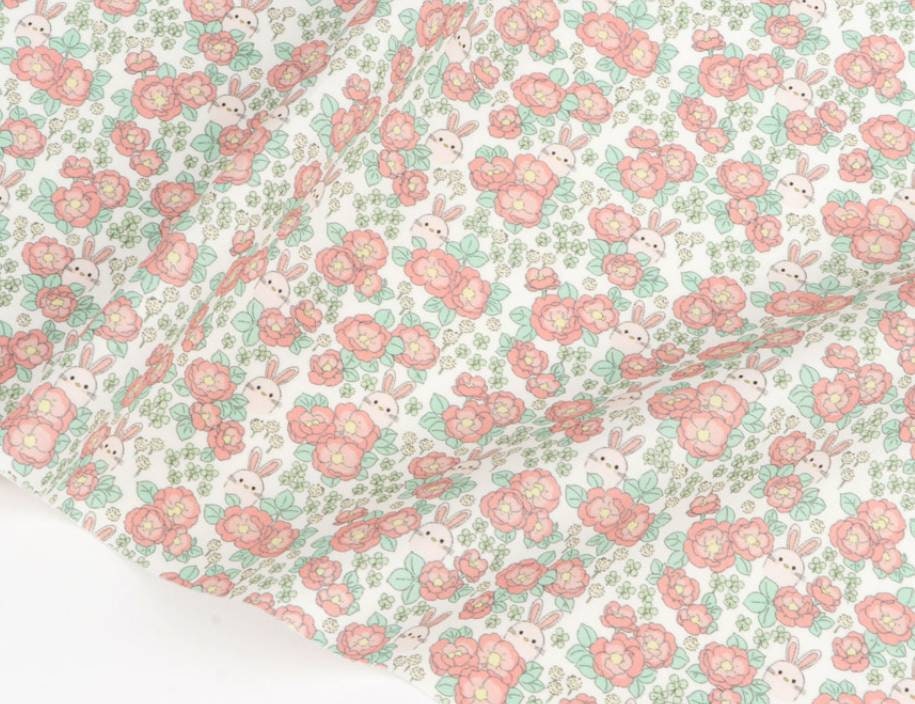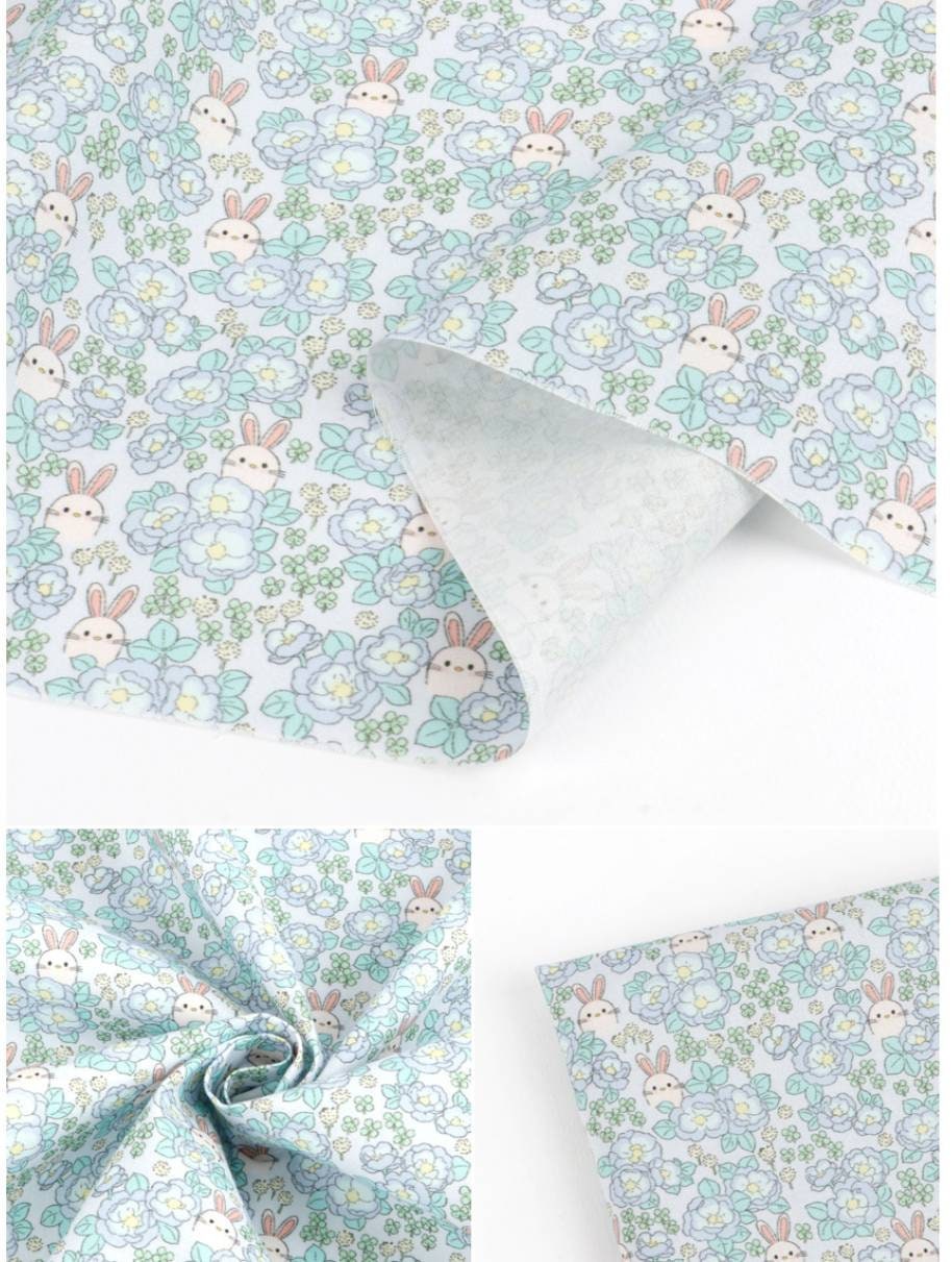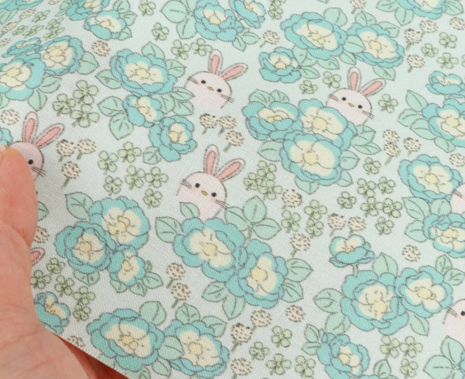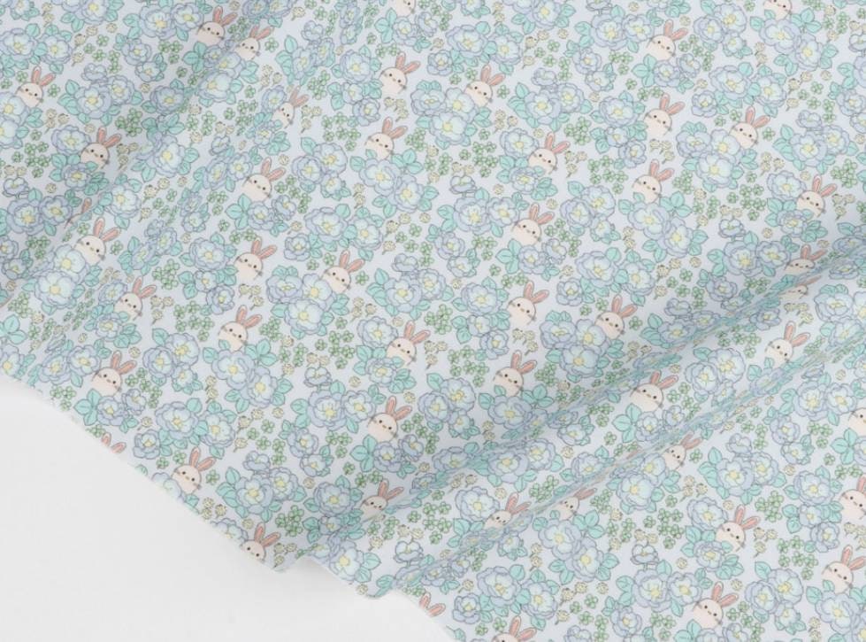 牡丹グレーデンウサギ柄生地 - 韓国生地