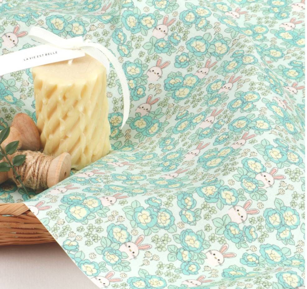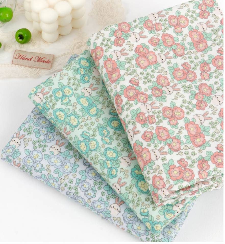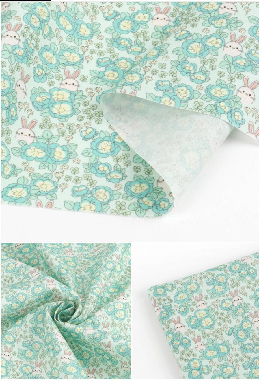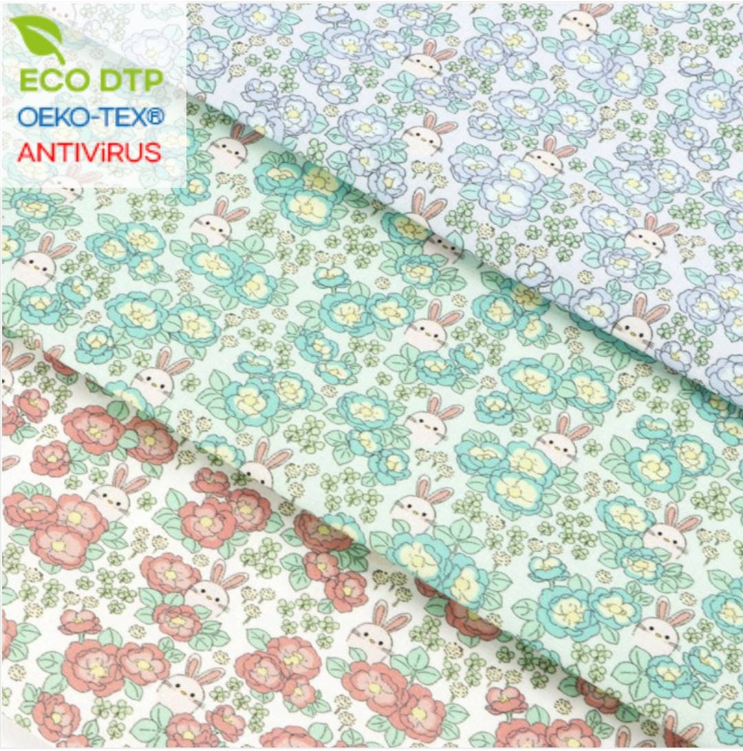 牡丹グレーデンウサギ柄生地 - 韓国生地