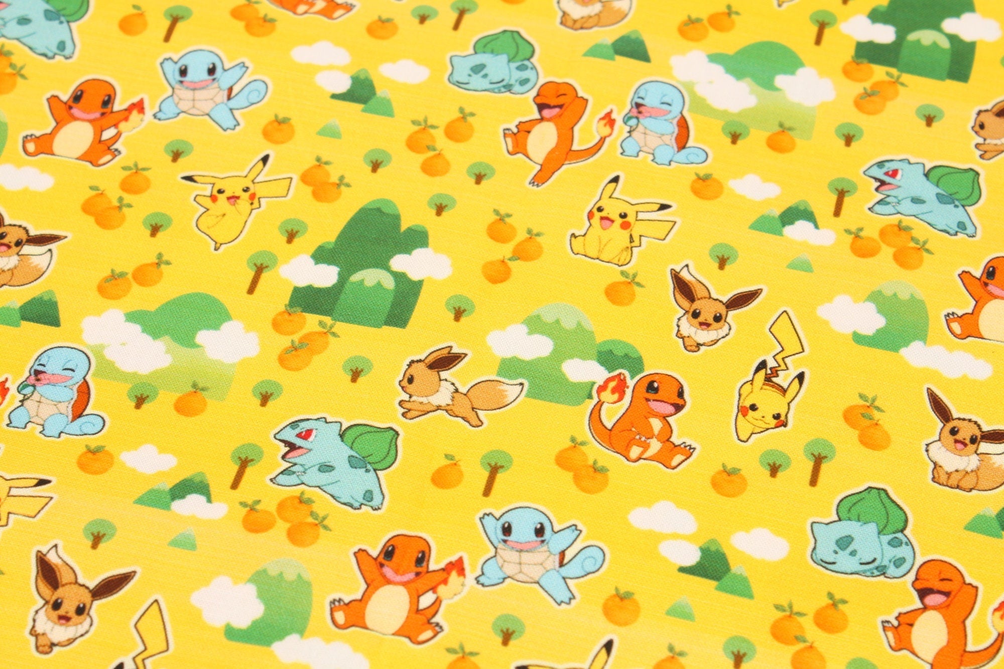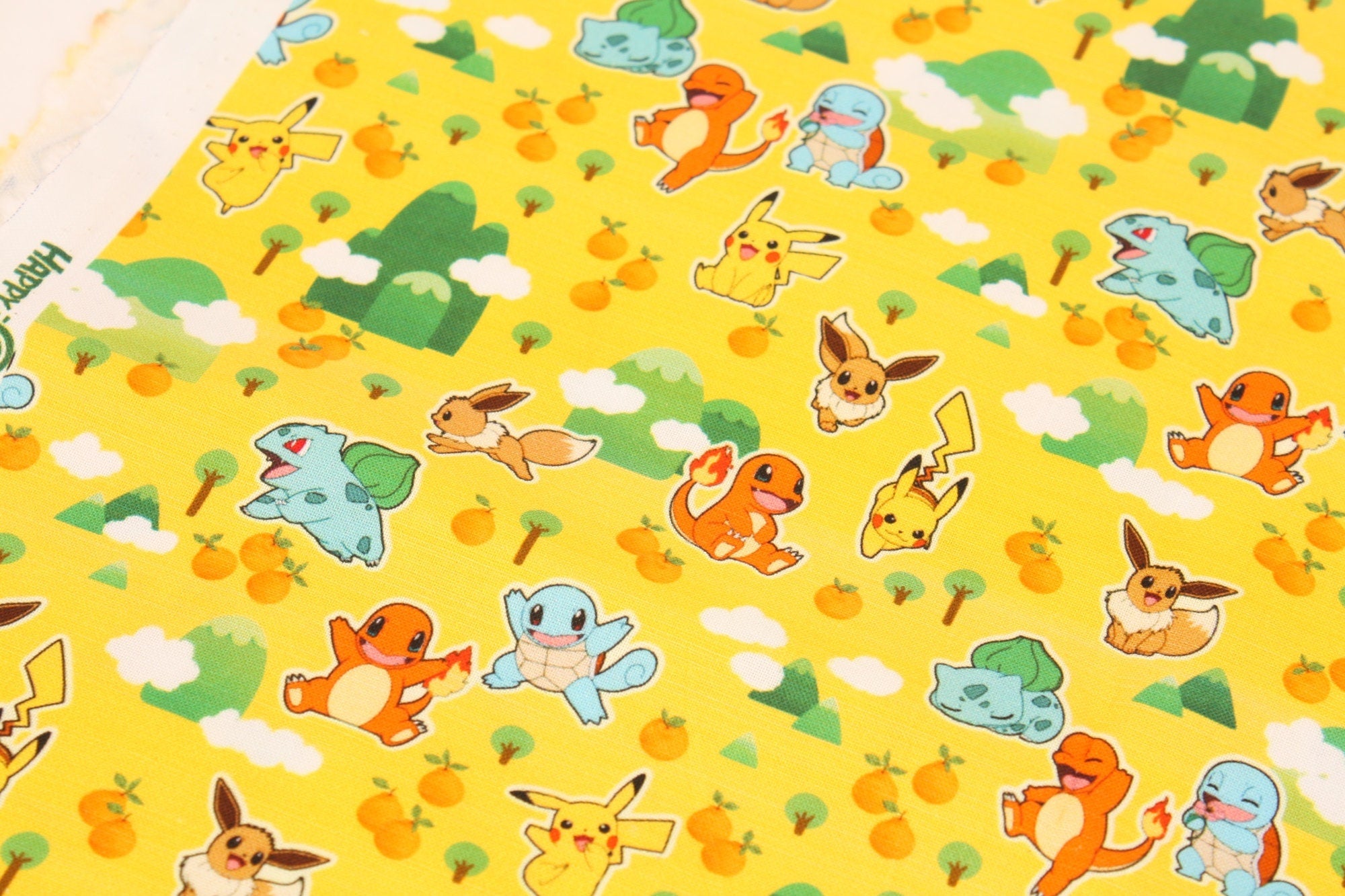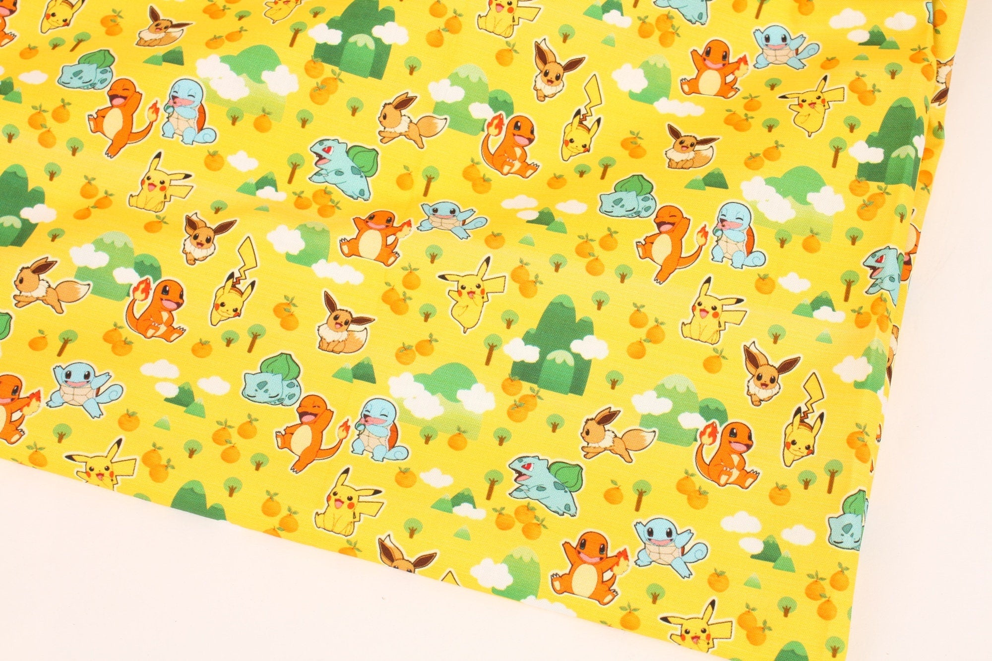 ポケットモンスター、オレンジピカチュウ フシギダネ ヒトカゲ ゼニガメ キャラクター生地 韓国製