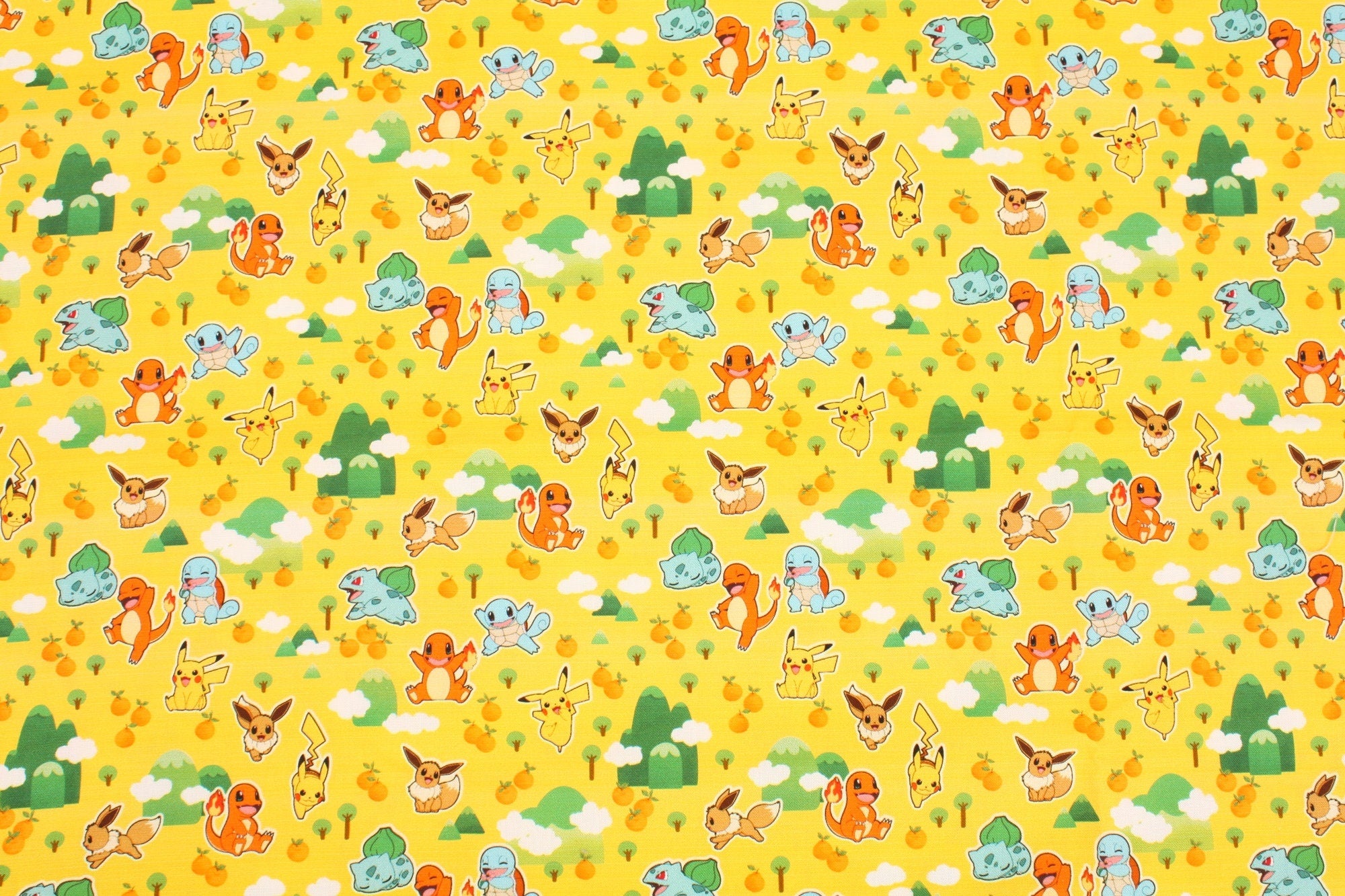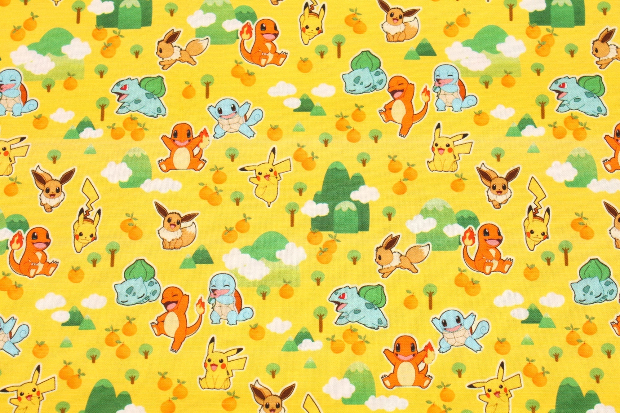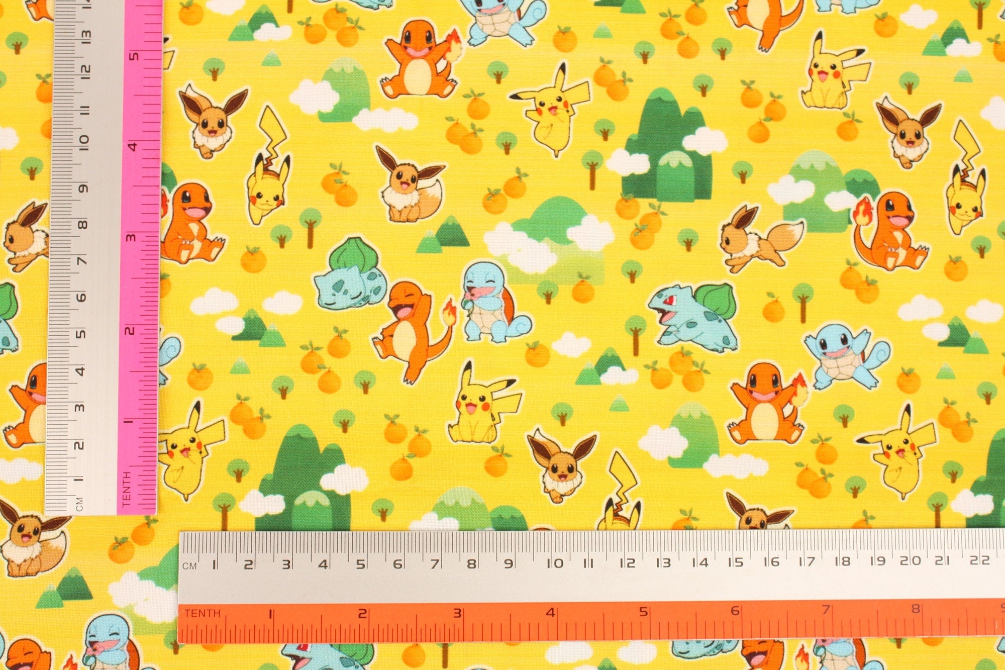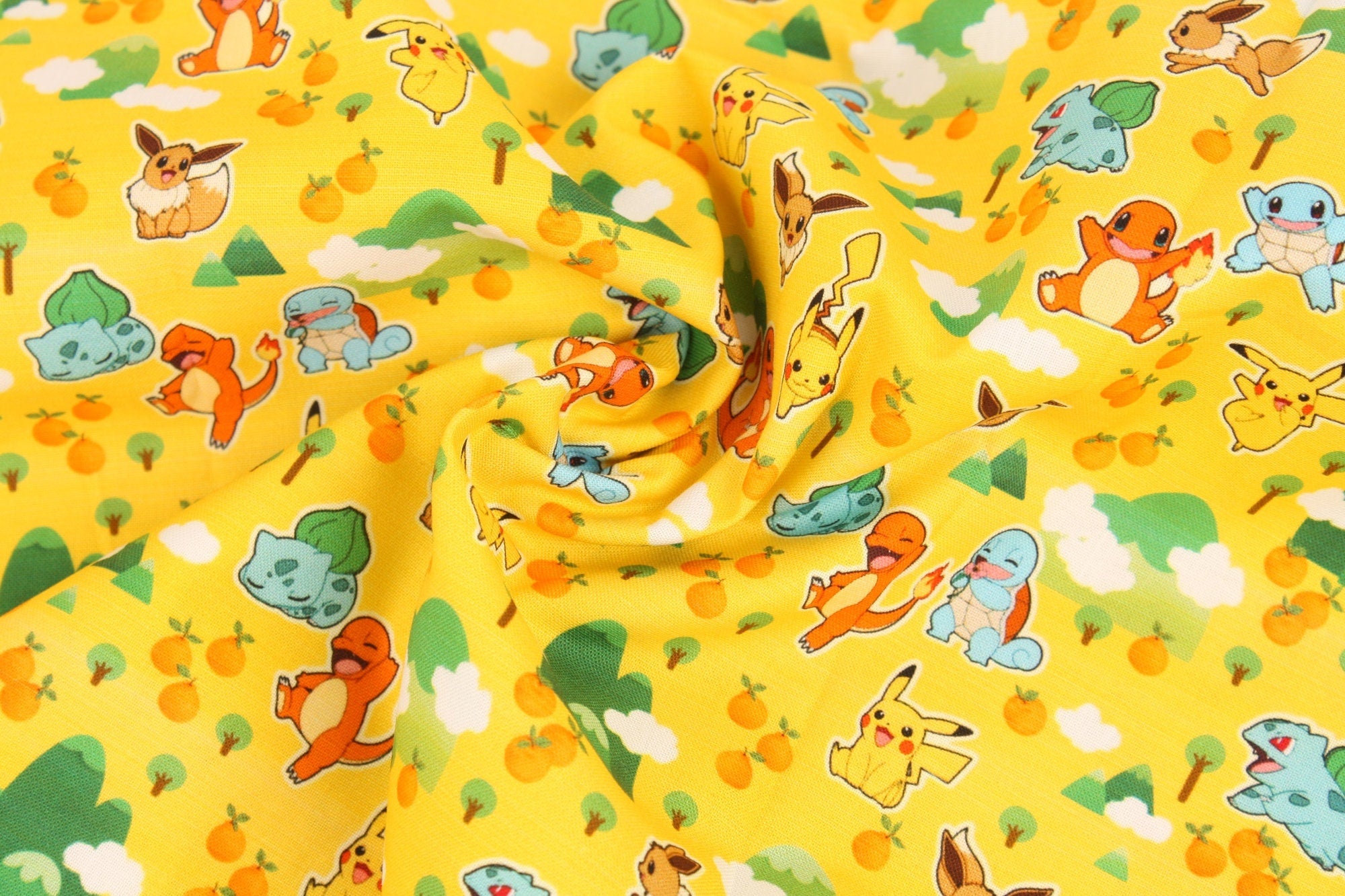ポケットモンスター、オレンジピカチュウ フシギダネ ヒトカゲ ゼニガメ キャラクター生地 韓国製