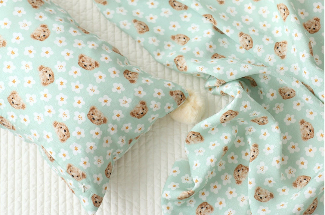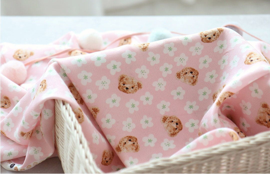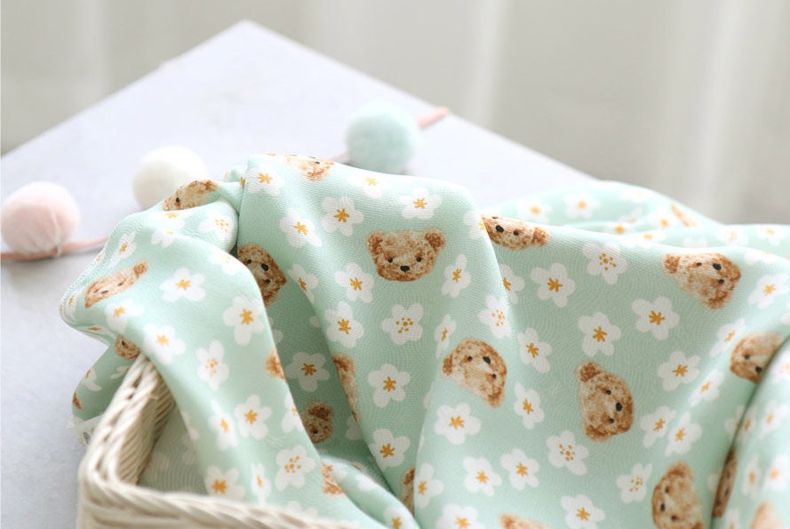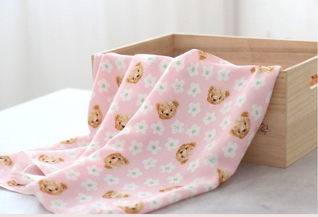 韓国でプリントされたかわいいテディベアのビスコースレーヨン生地