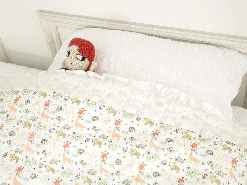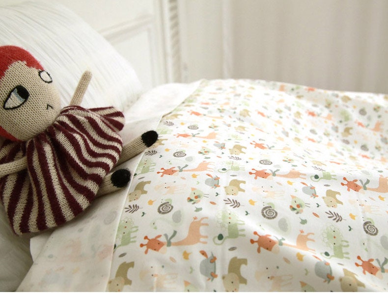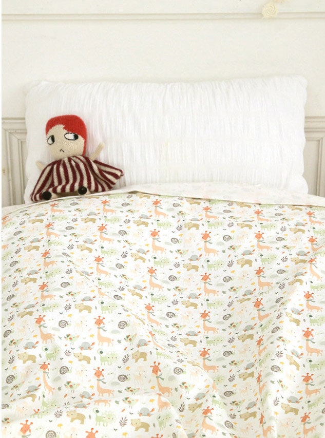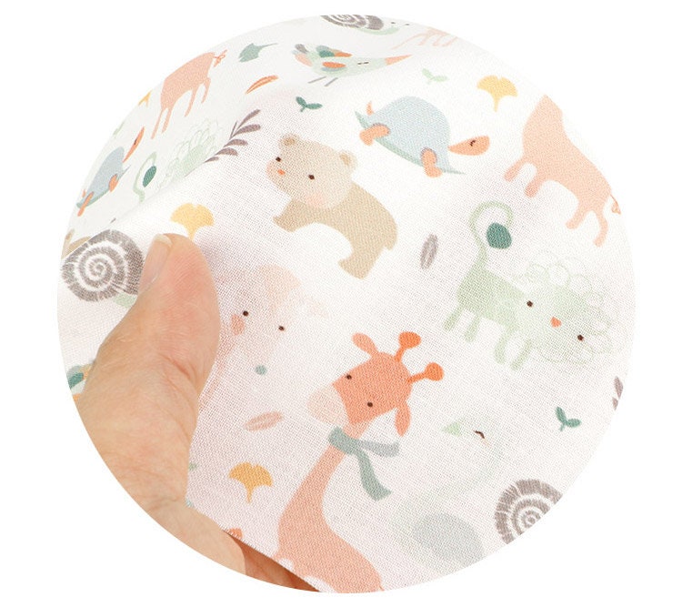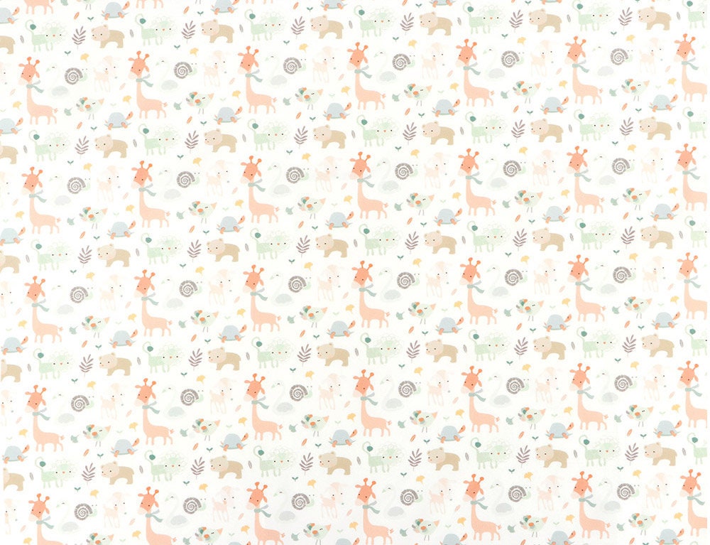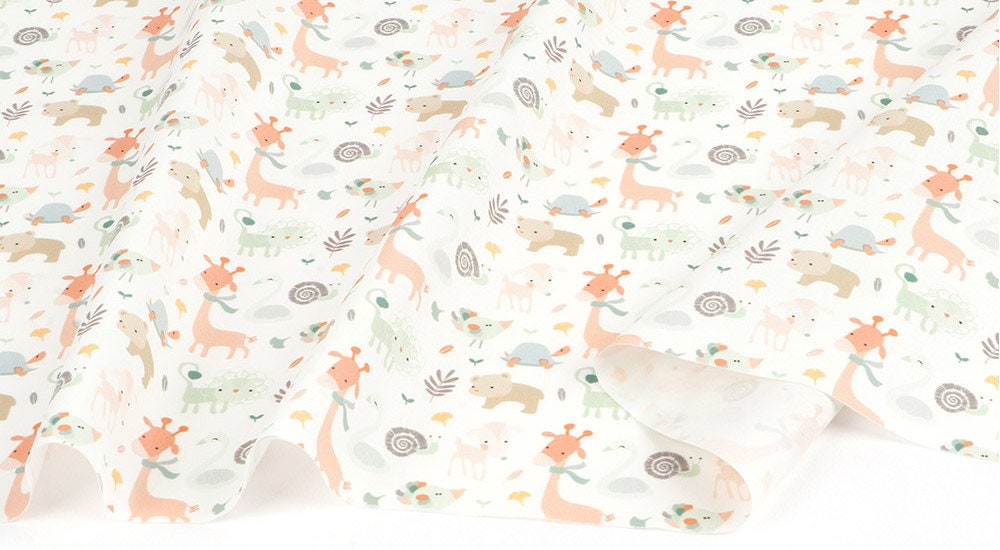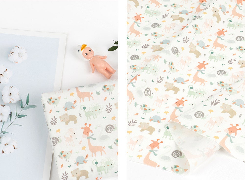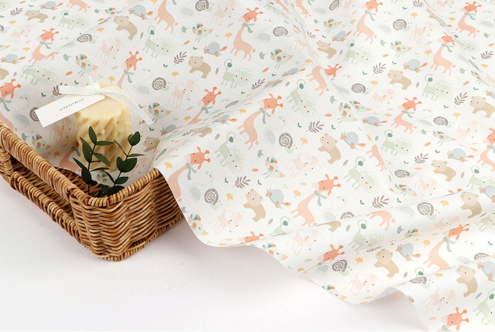 動物農場のキリン、カメ、クマの柄の生地 - 韓国の生地