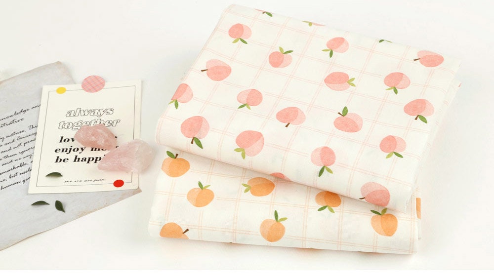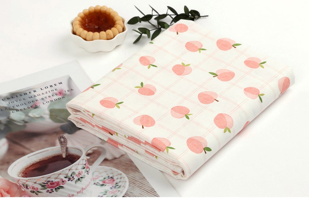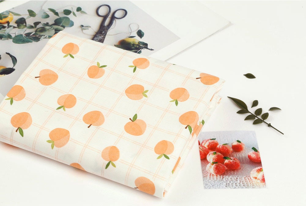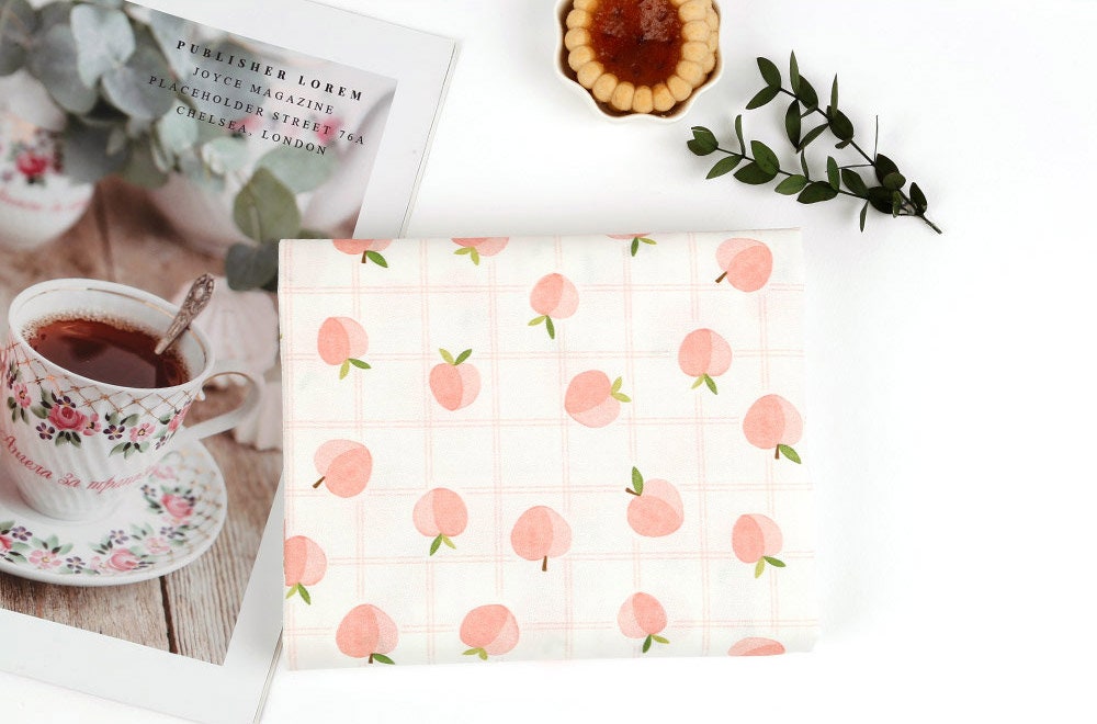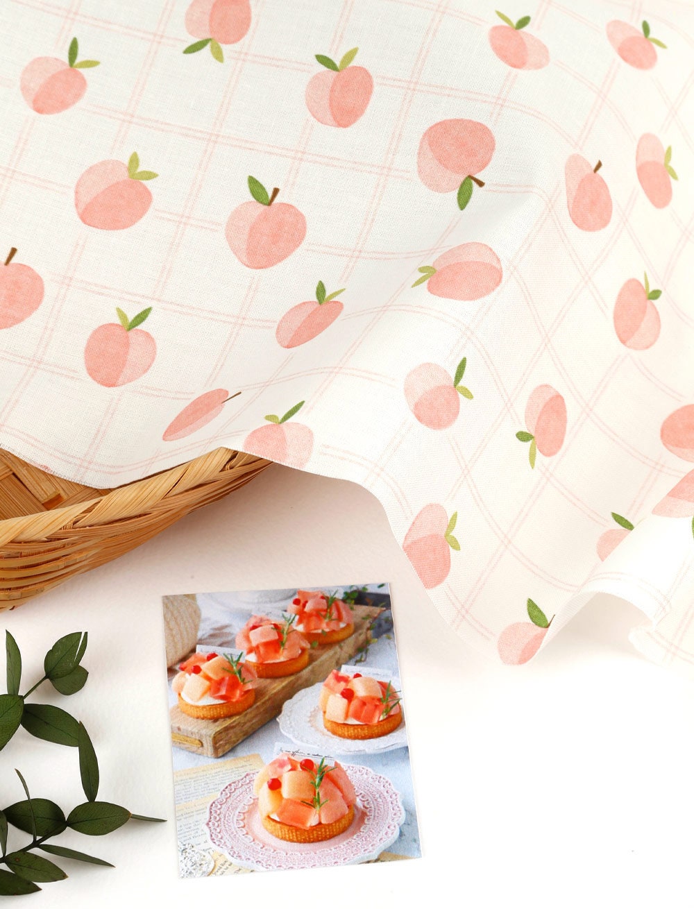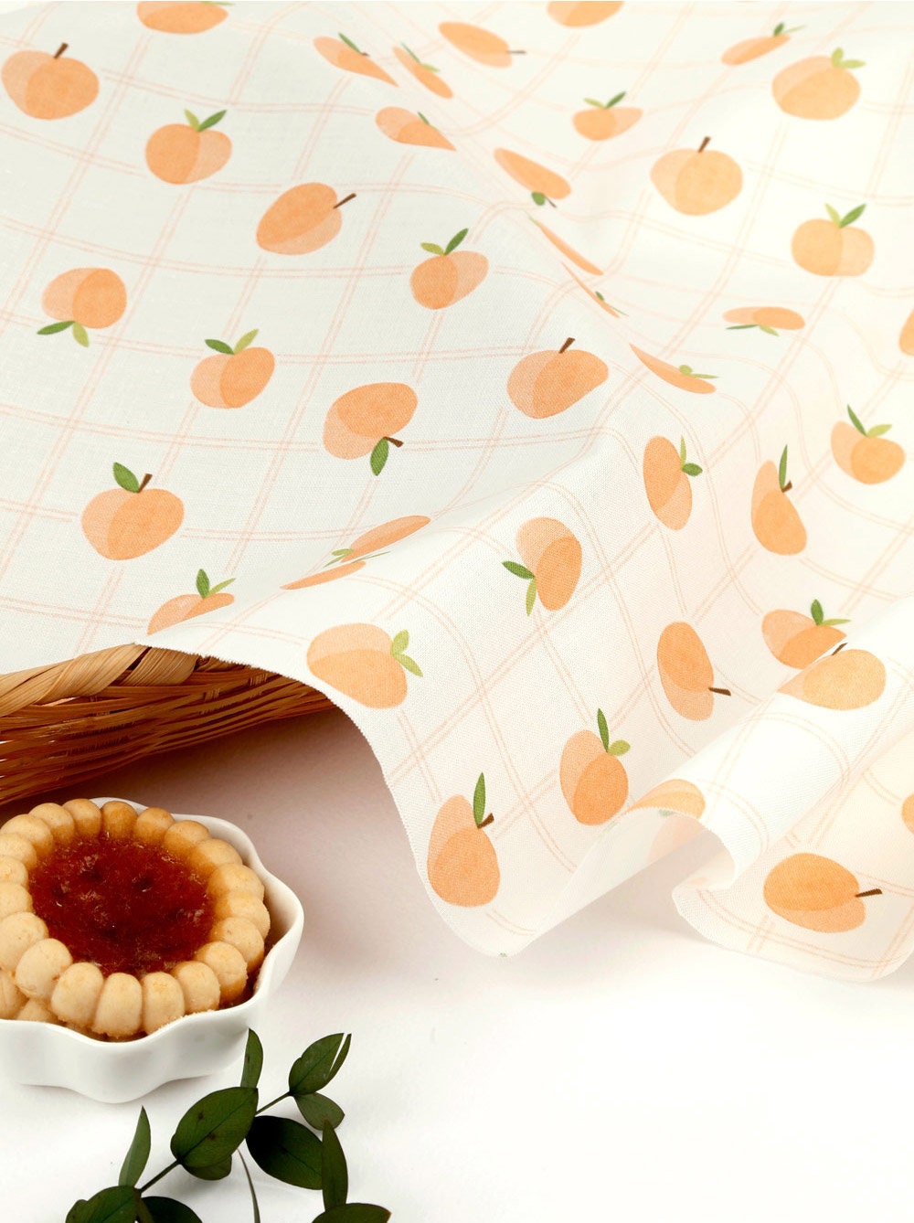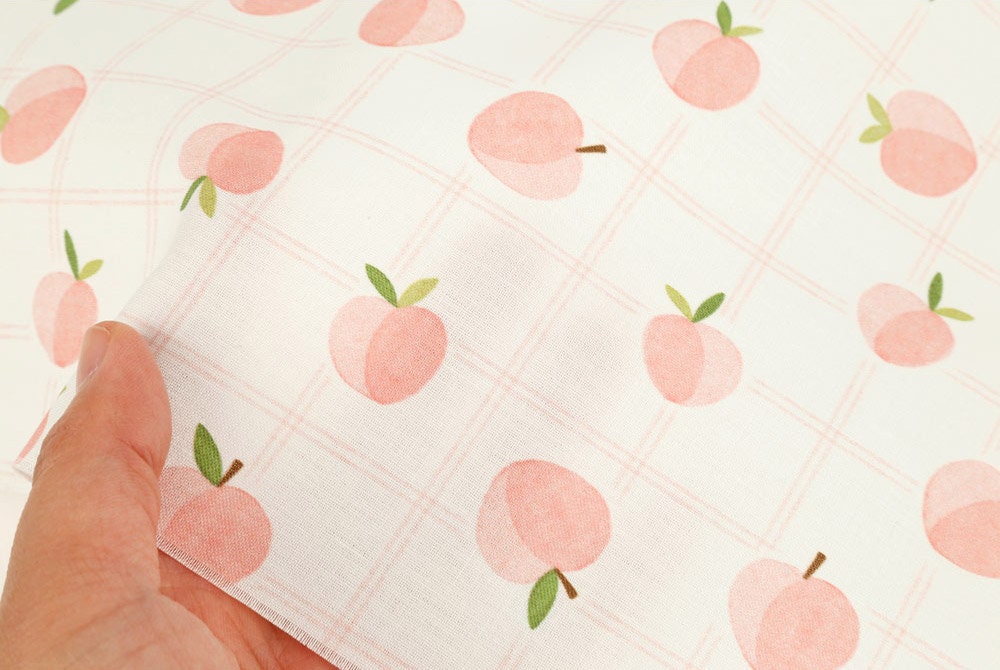 チェック柄の桃のフルーツ生地 - 韓国の生地