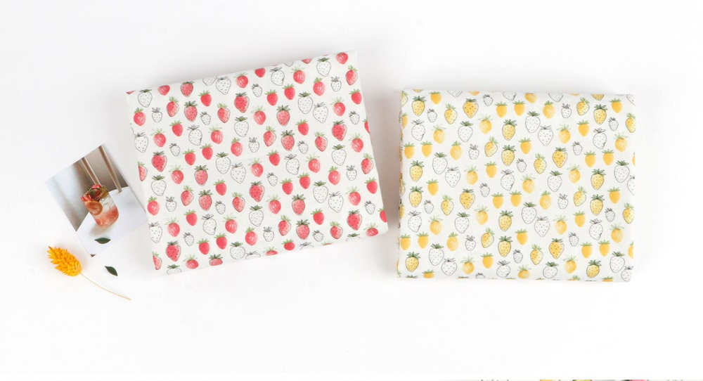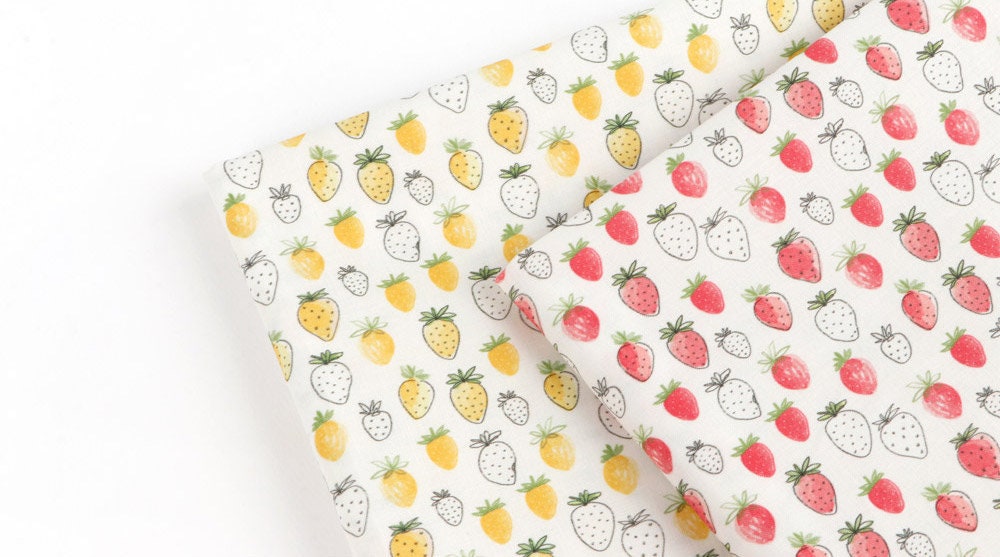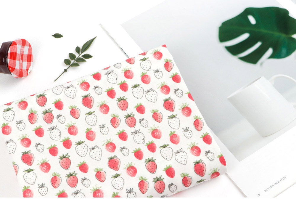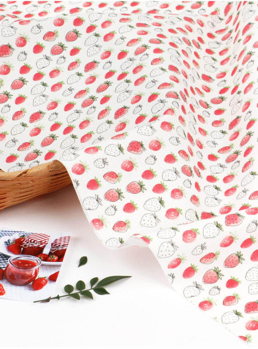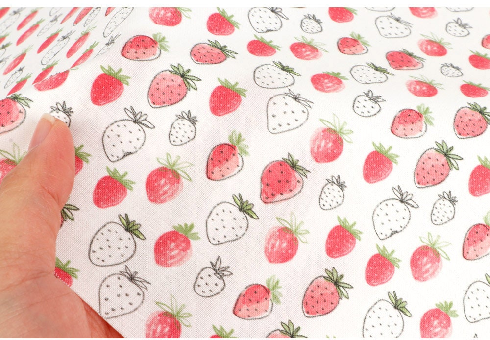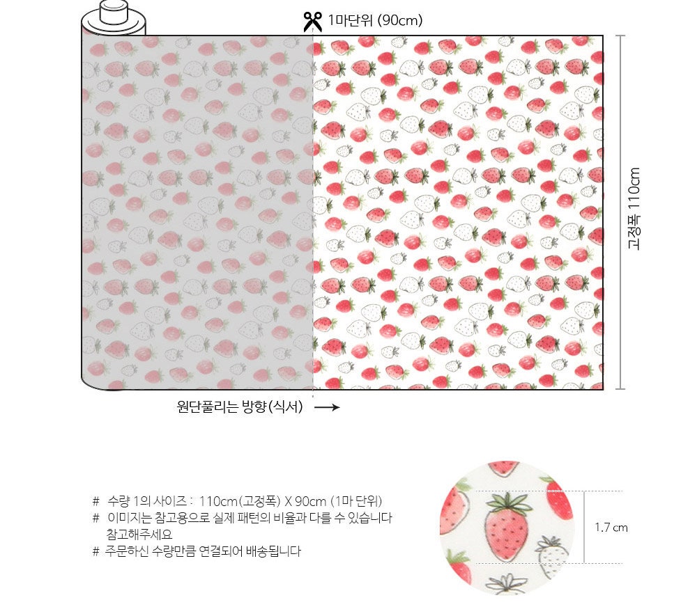 色鉛筆風イチゴ柄生地 - 韓国生地