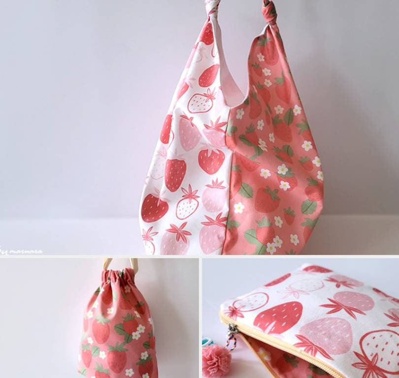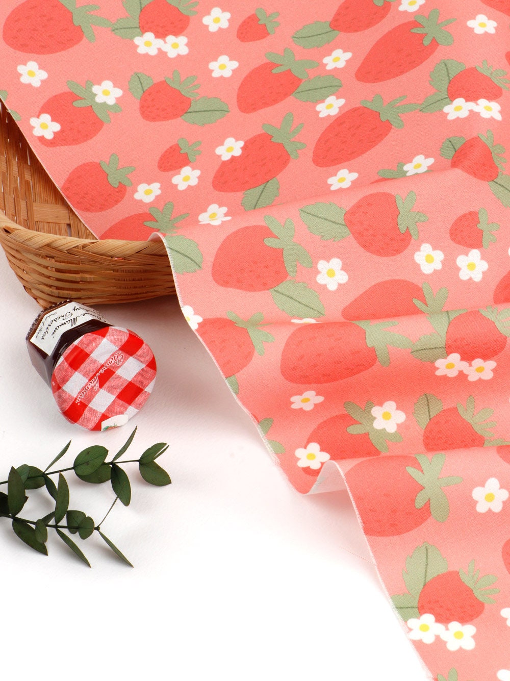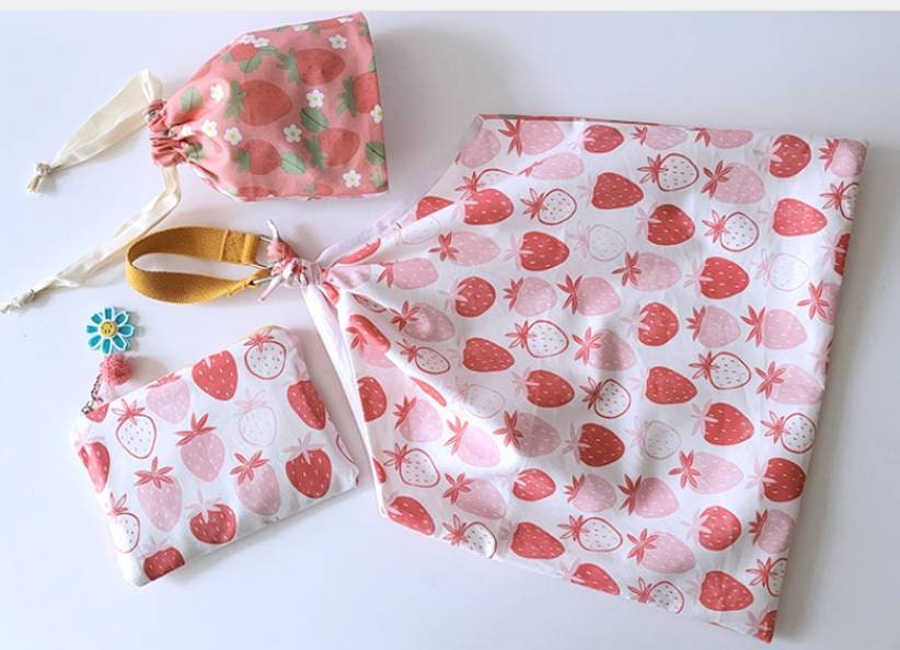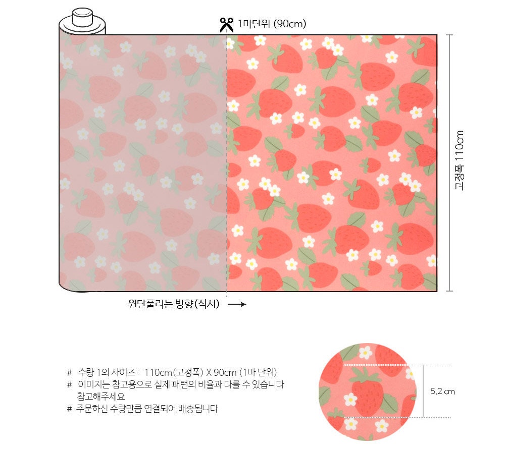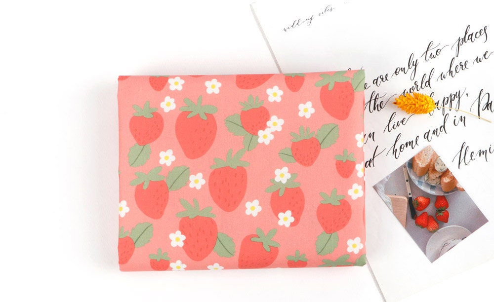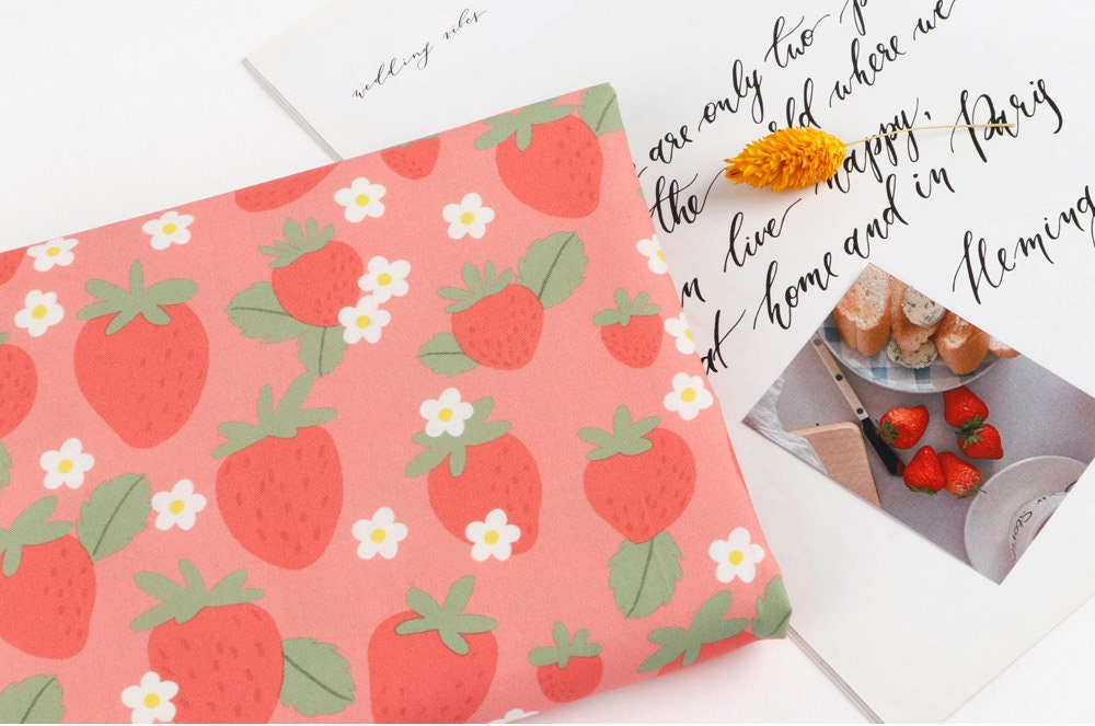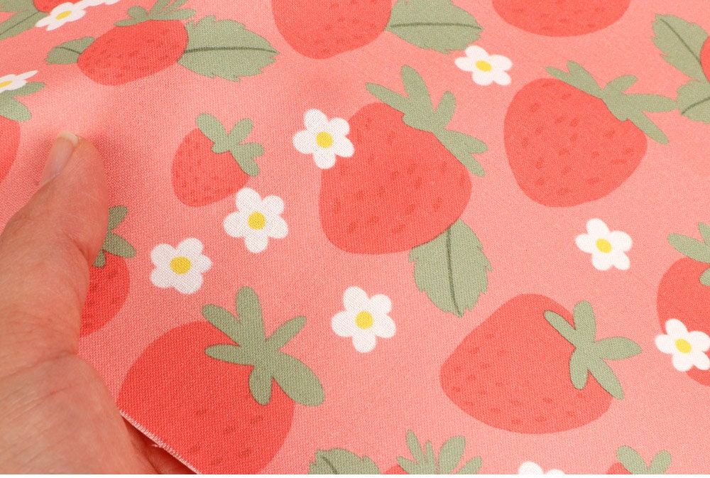 ピンクのイチゴ柄生地 - 韓国の生地