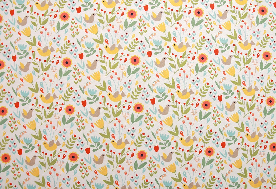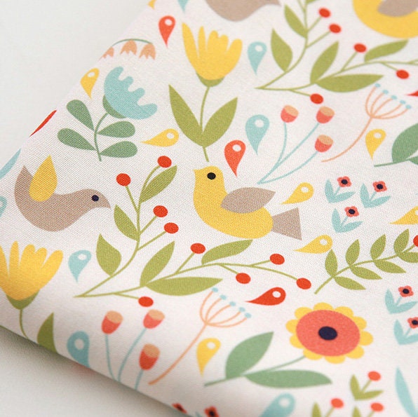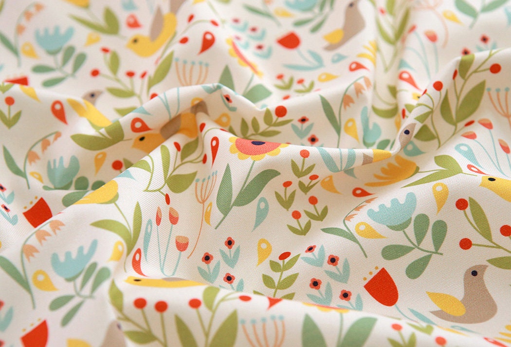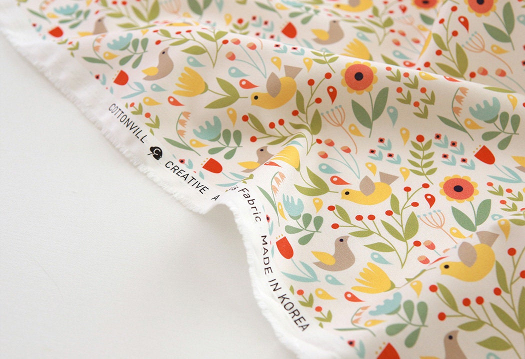 花とかわいい鳥の模様の生地 - 韓国の生地