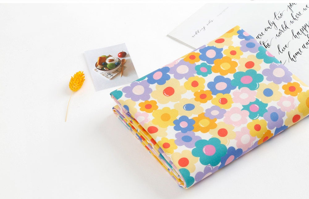 カラフルな花柄の生地、かわいい、子供用、裁縫、キルト - 韓国の生地