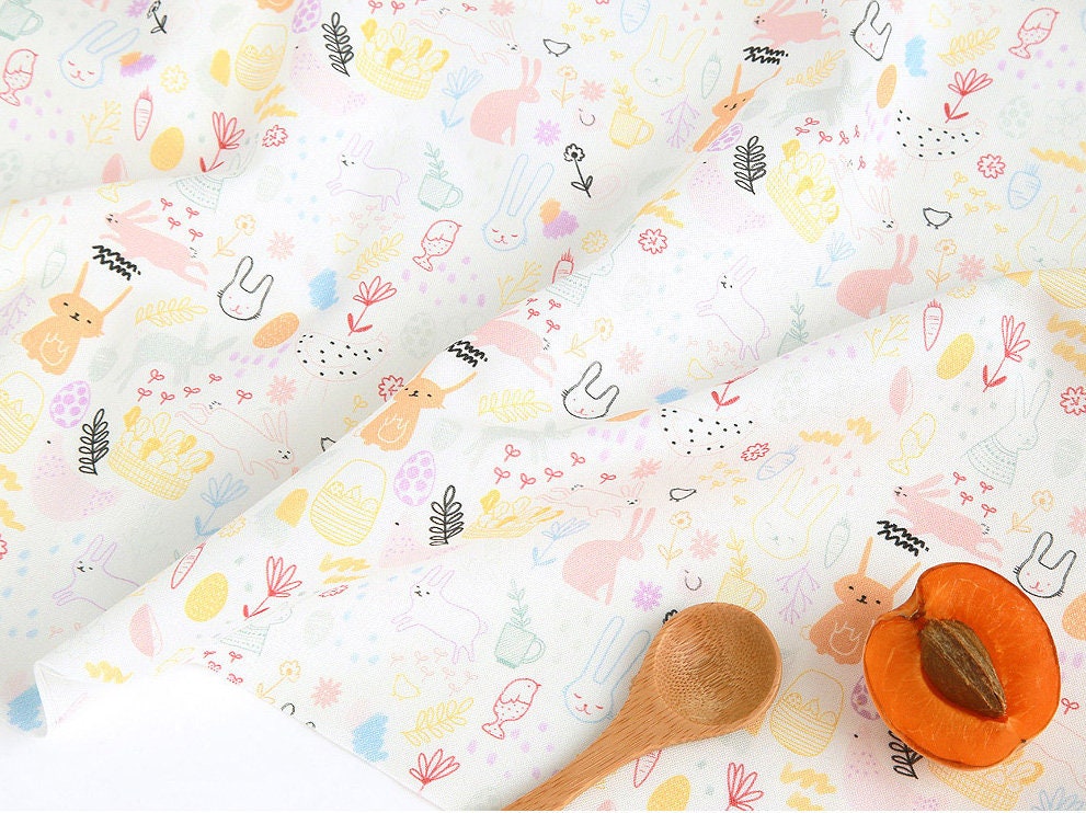 かわいいウサギのバニー柄生地、かわいい、子供、裁縫、キルト - 韓国の生地
