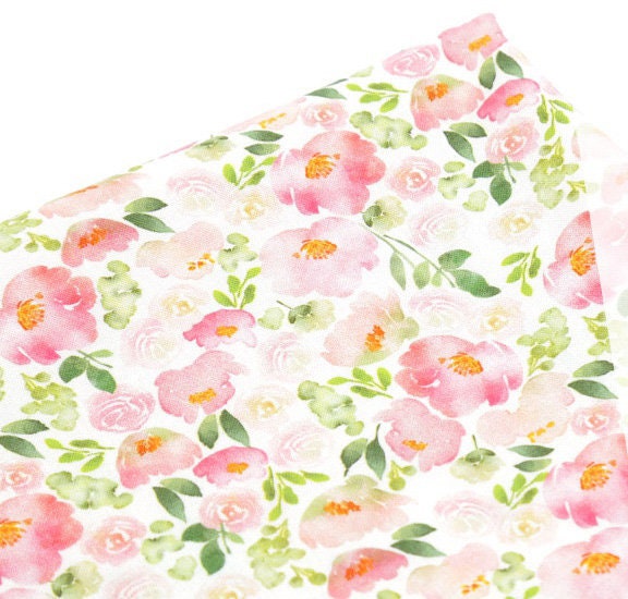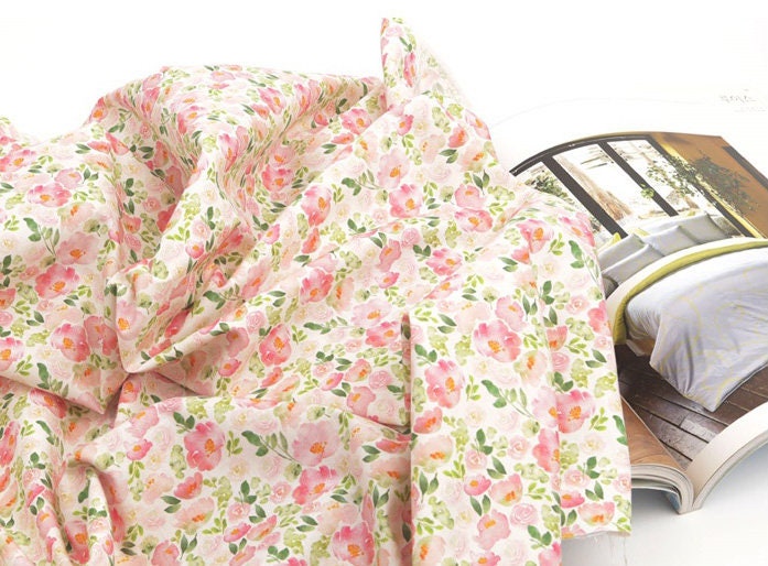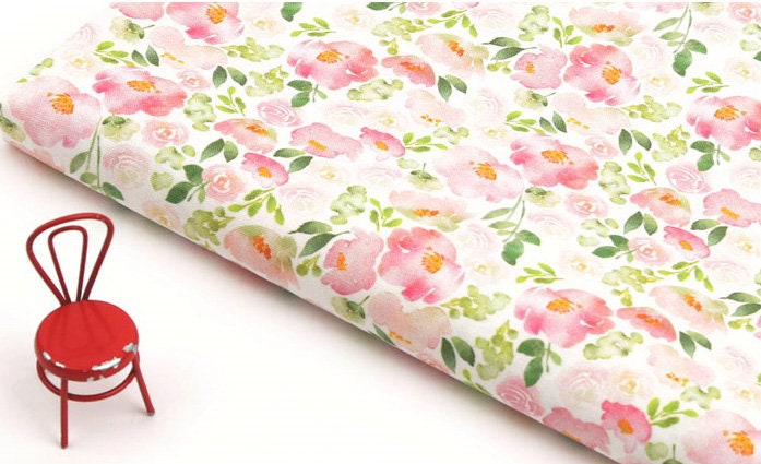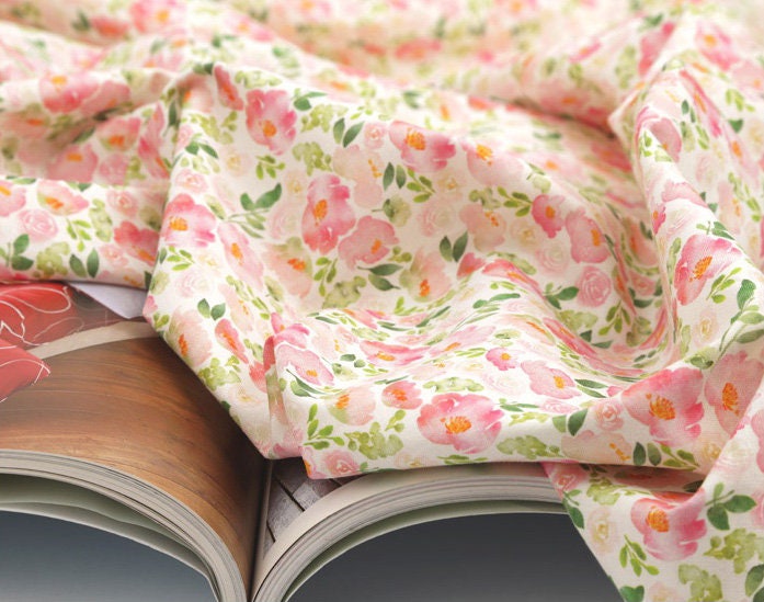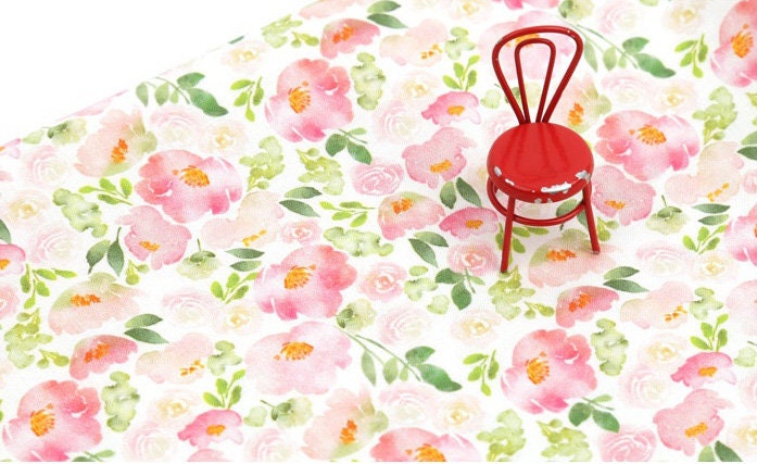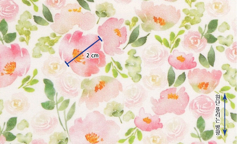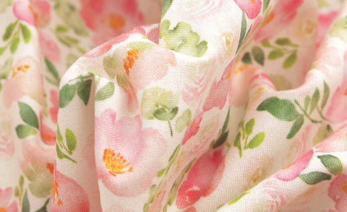 水彩ピンクのバラの花の花柄生地、花柄生地 - 韓国の生地