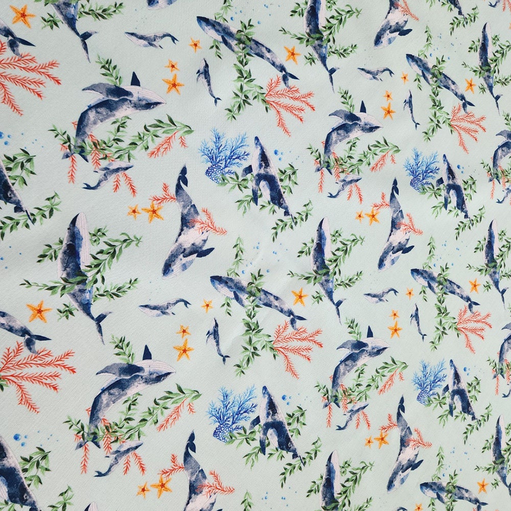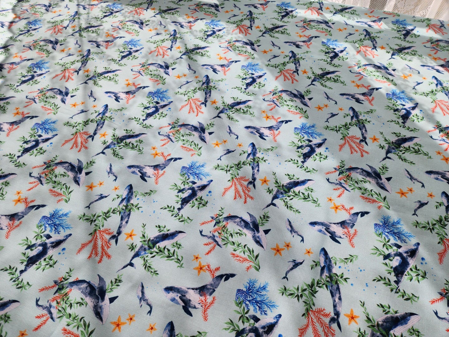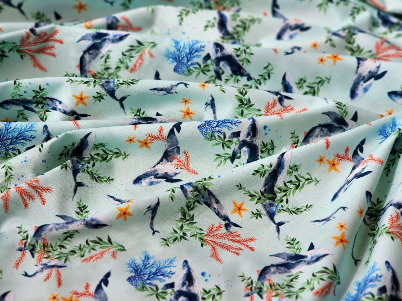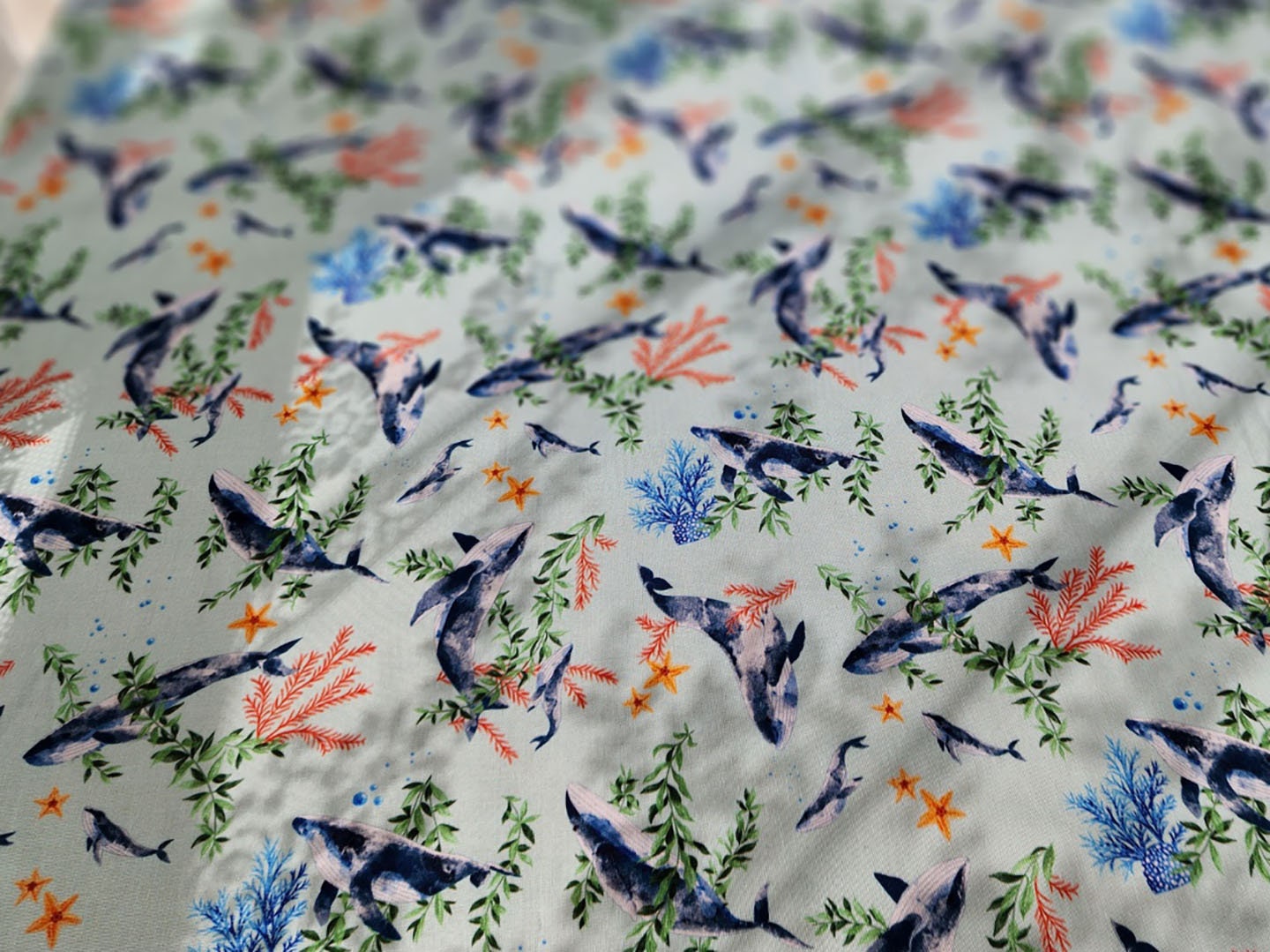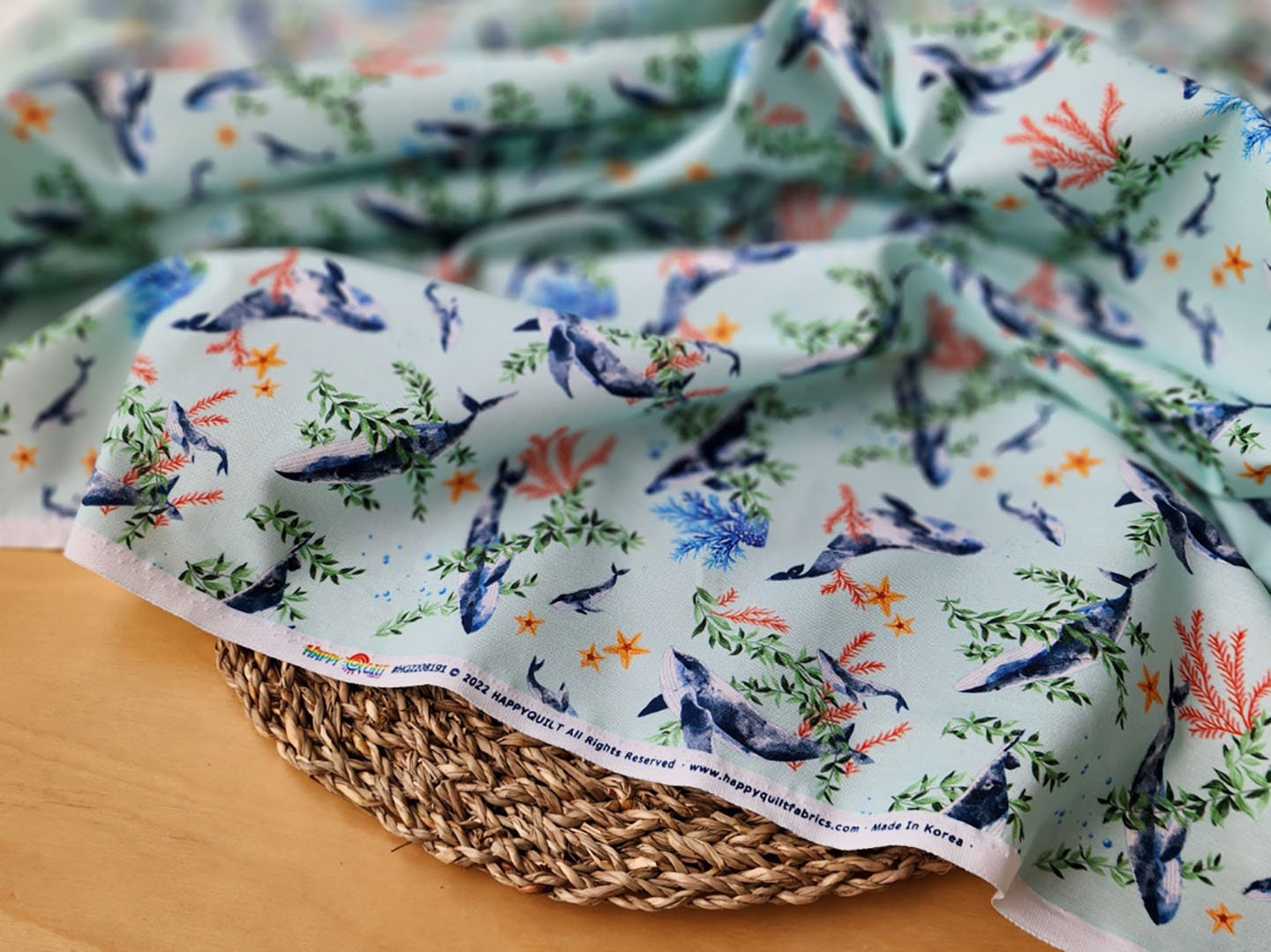 海を泳ぐクジラ柄の生地、かわいい、子供用、裁縫、キルト - 韓国の生地