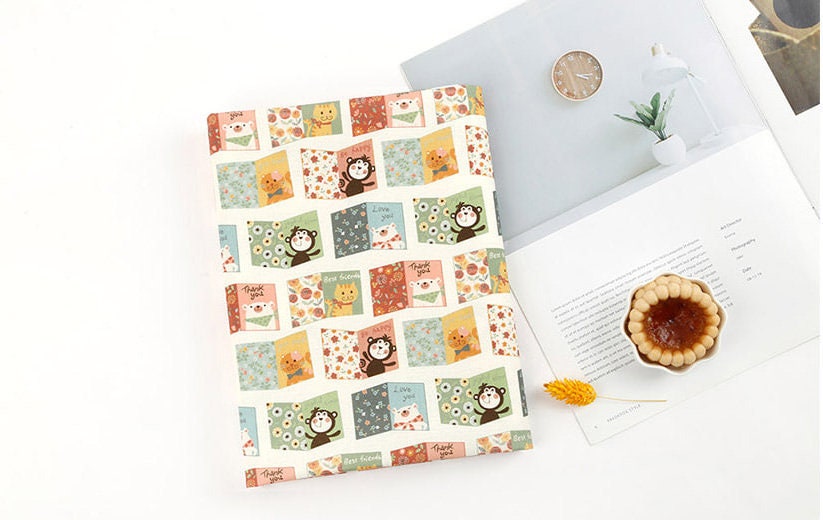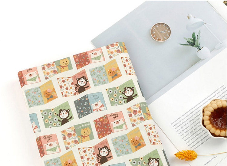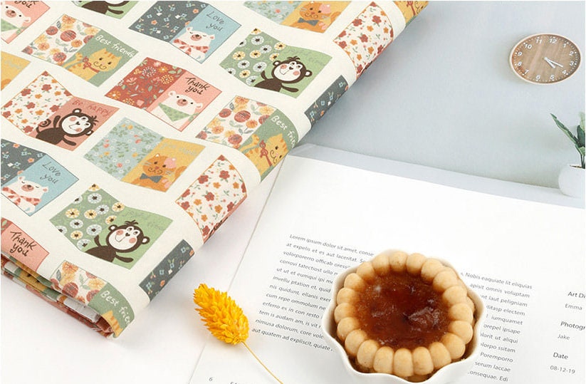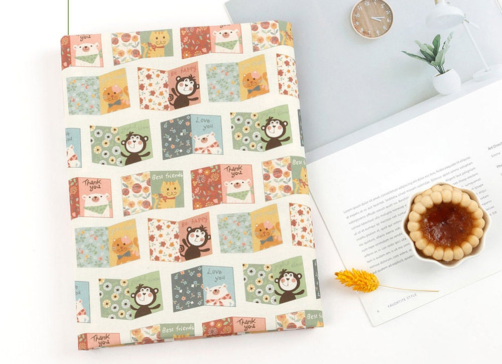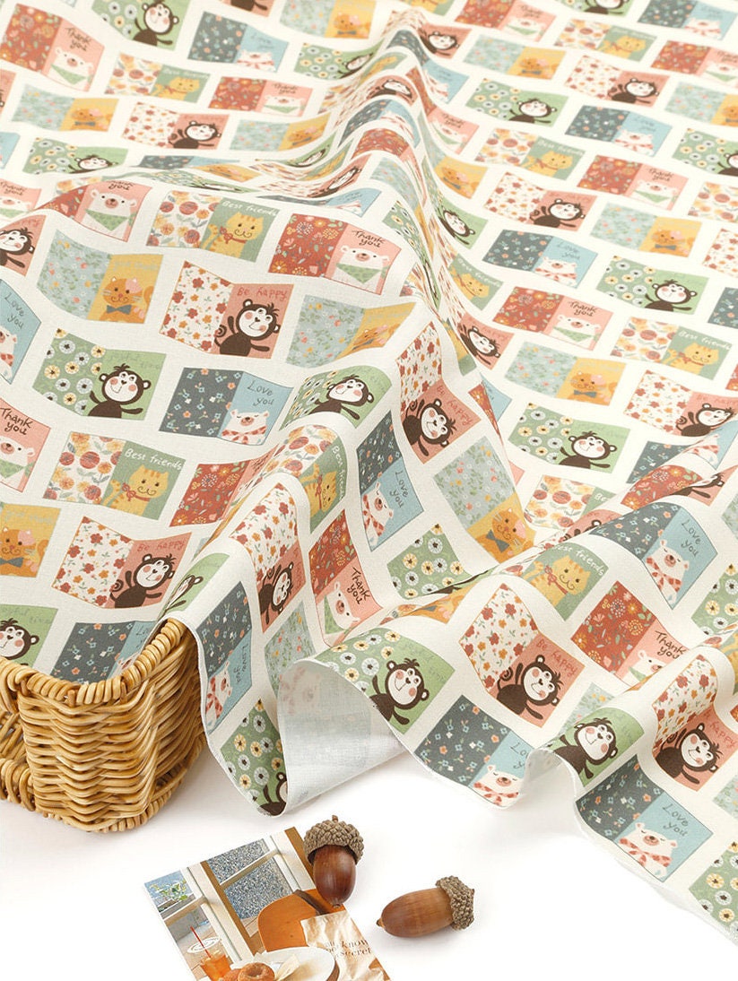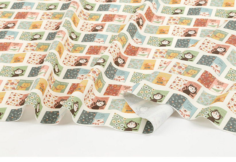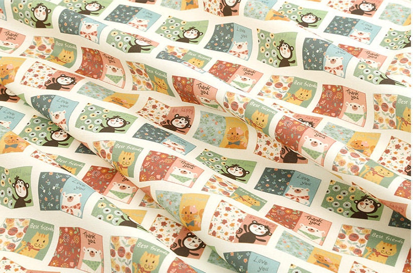動物の友達 猿 猫 クマ ポストカード 文字柄 生地 OEKO-TEX® - 韓国生地