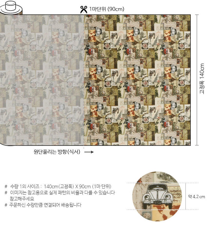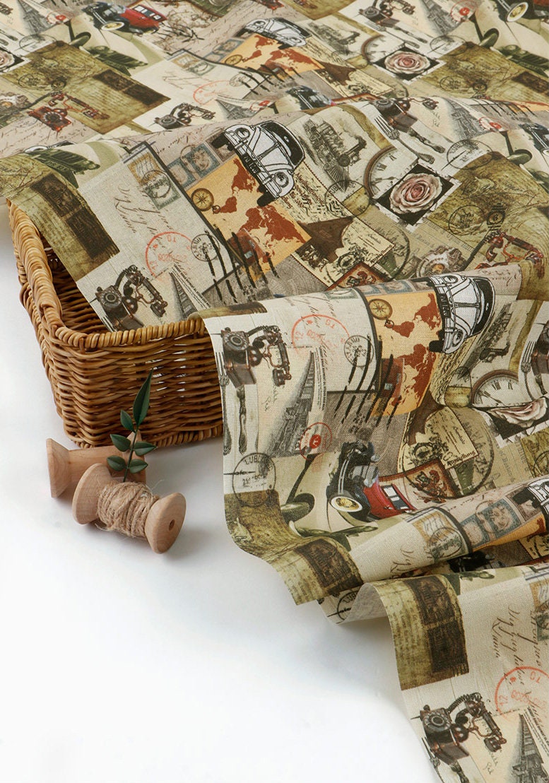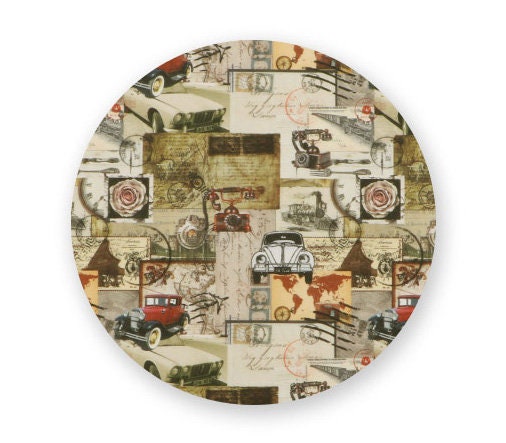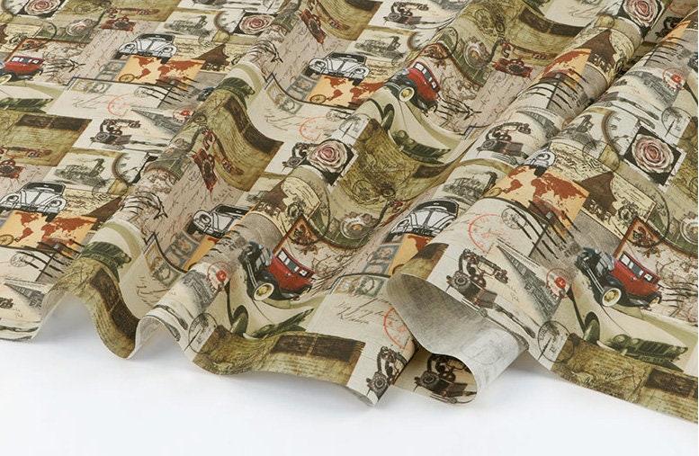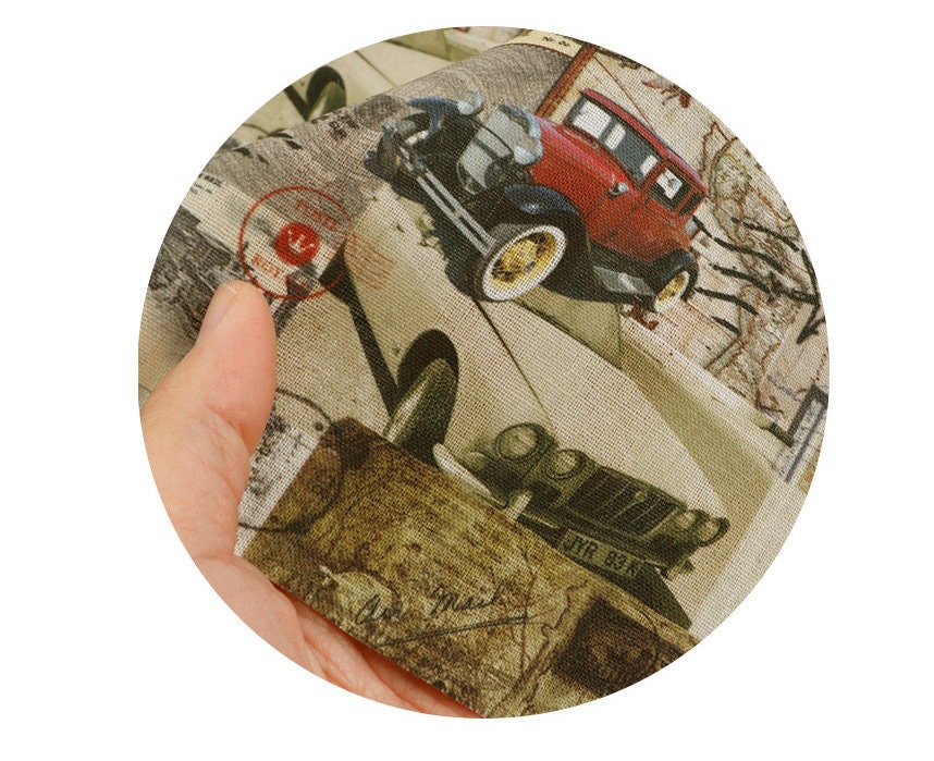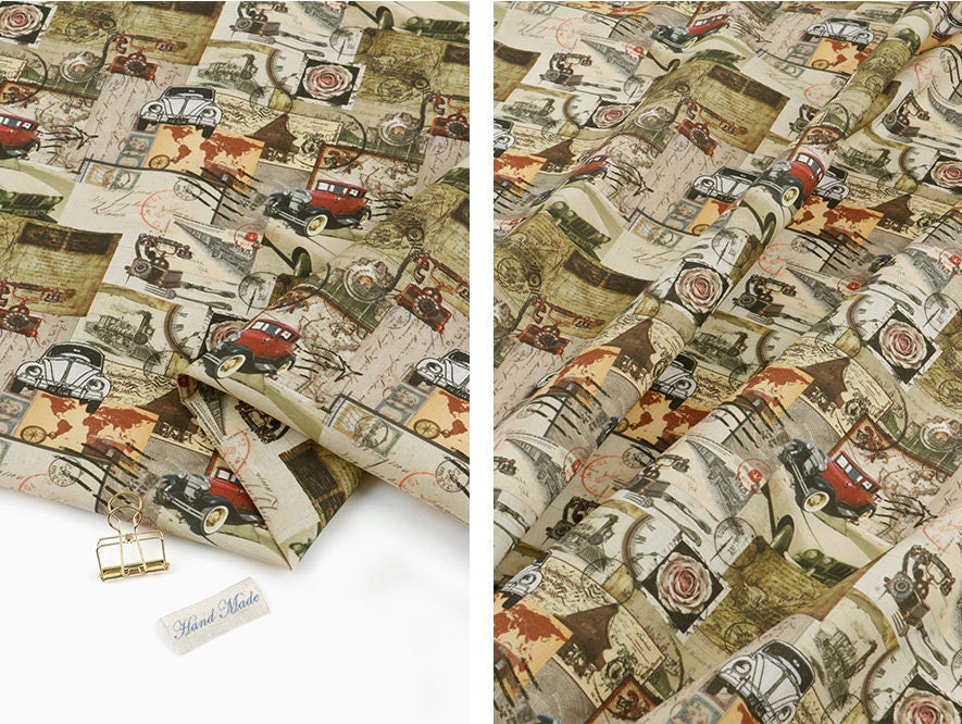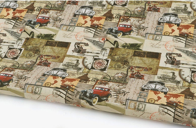 ヴィンテージカー電話柄生地 韓国製 / 半ヤード