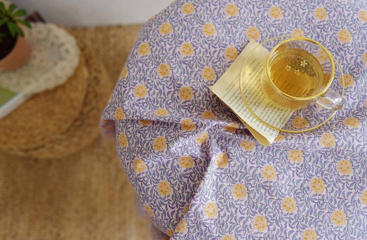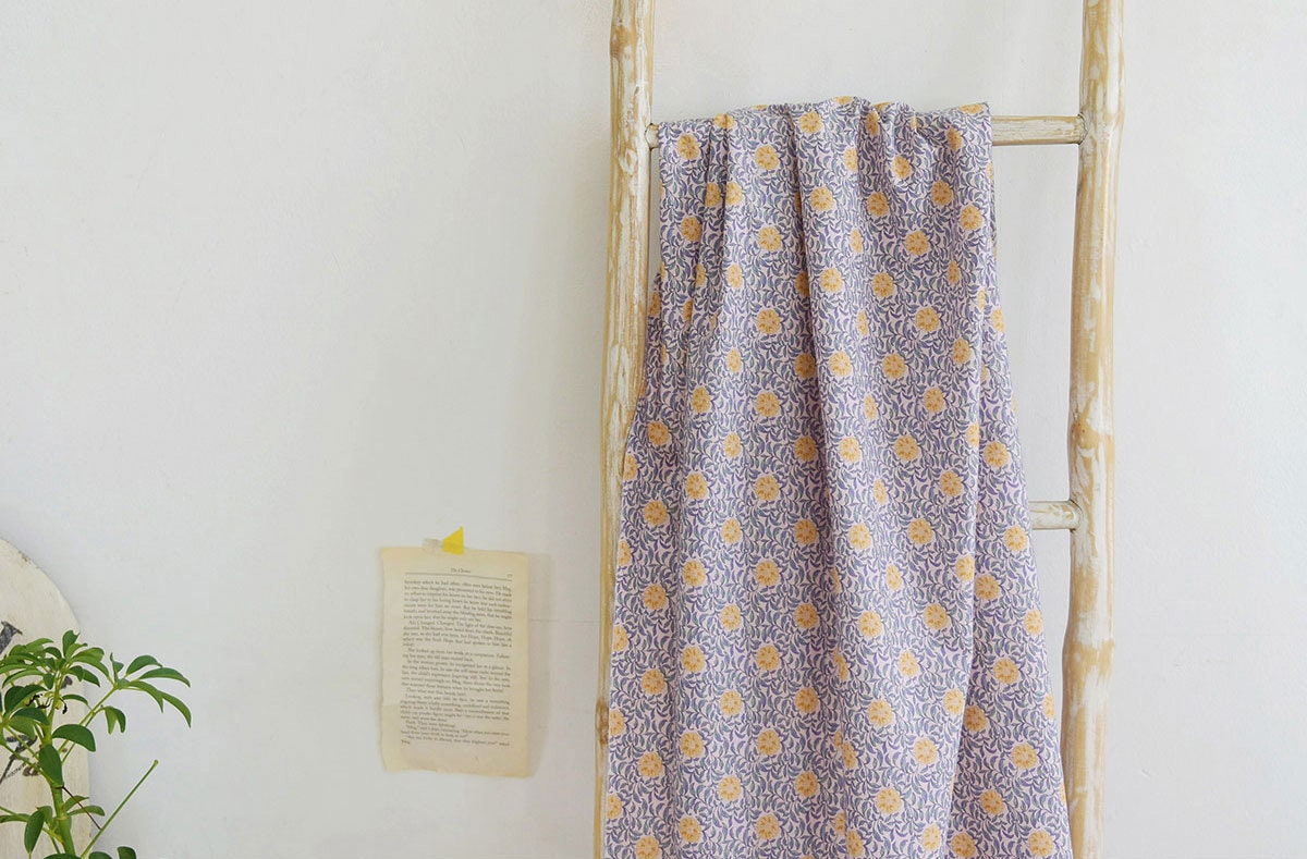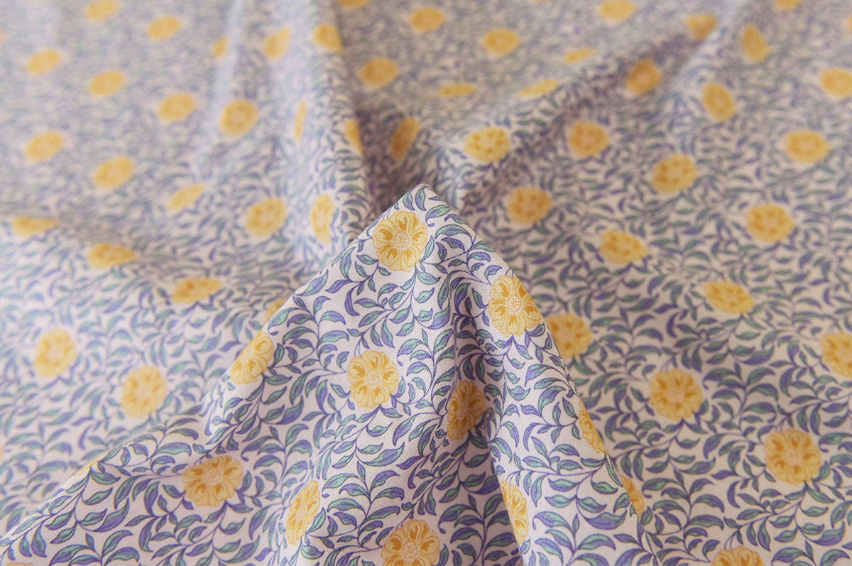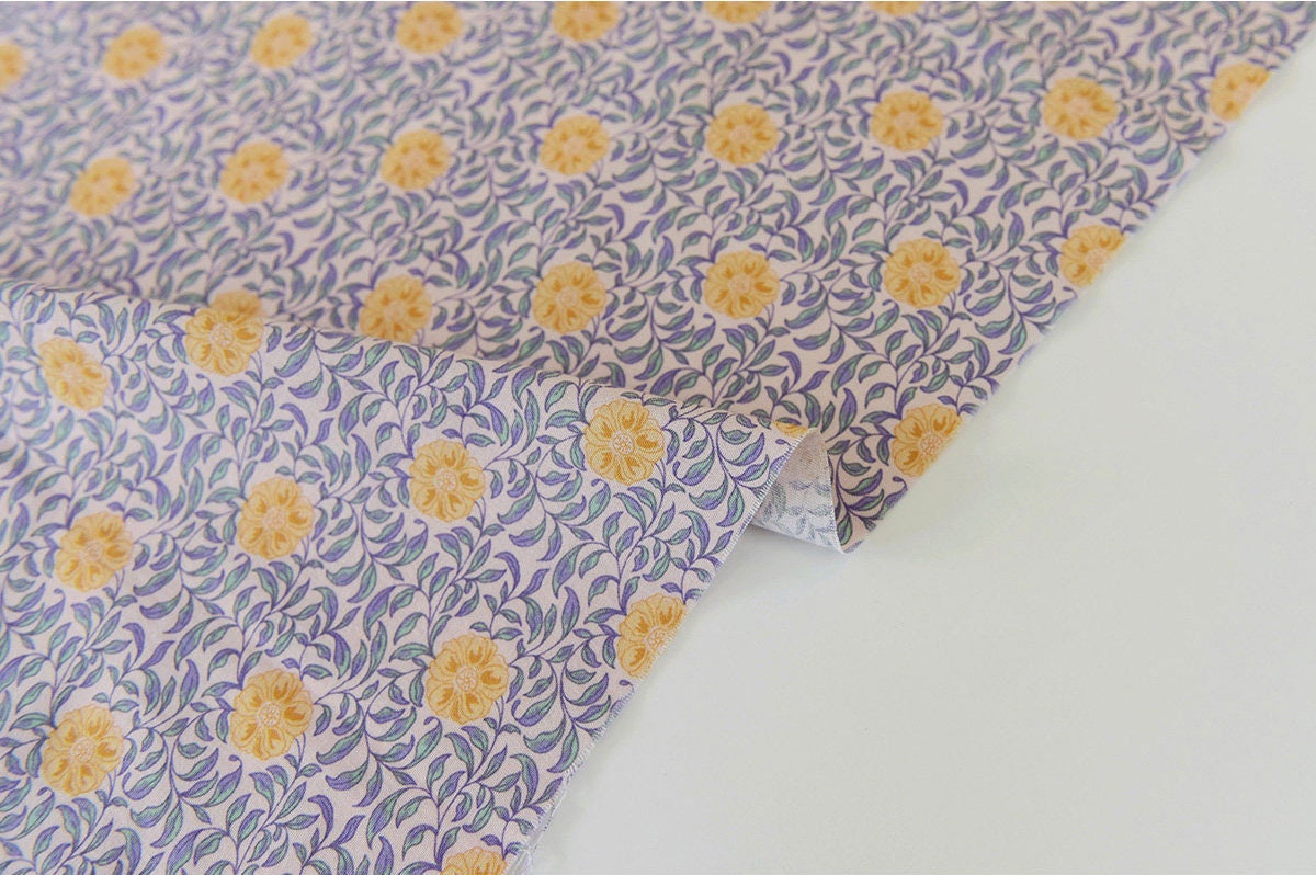 フローレンスイエローの花柄生地、韓国製花柄生地(半ヤード単位)