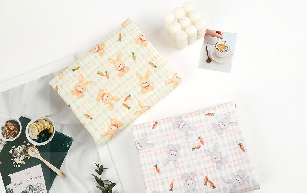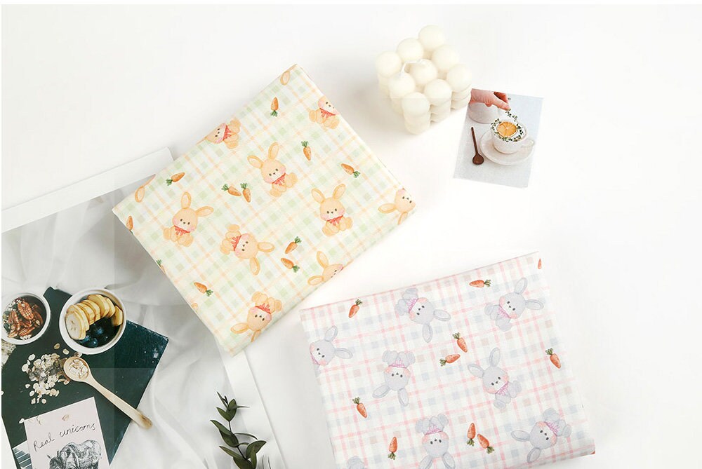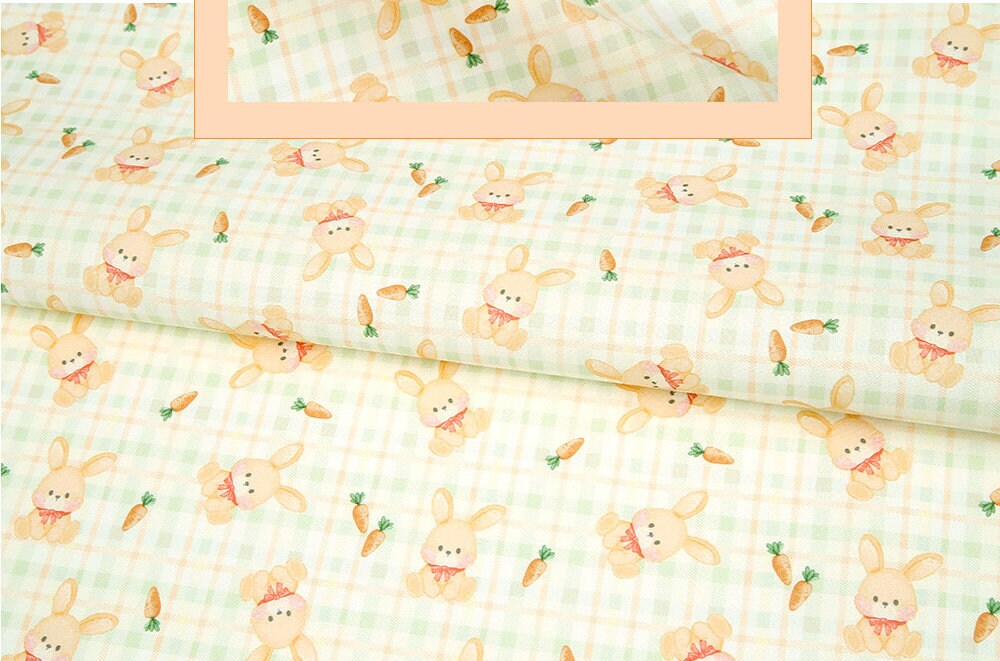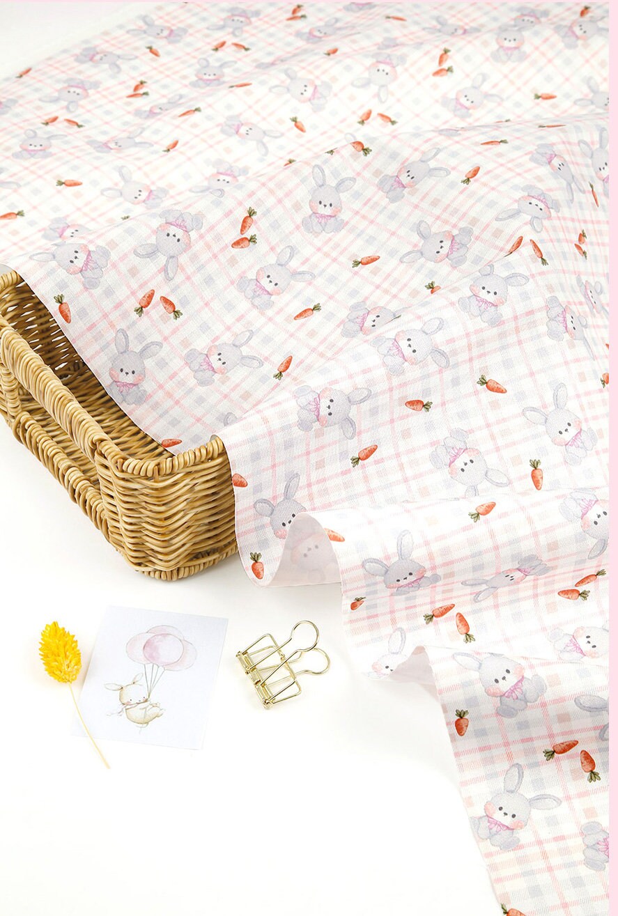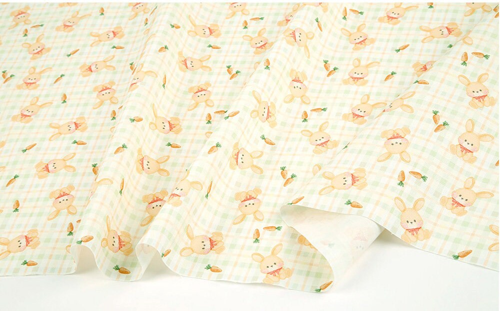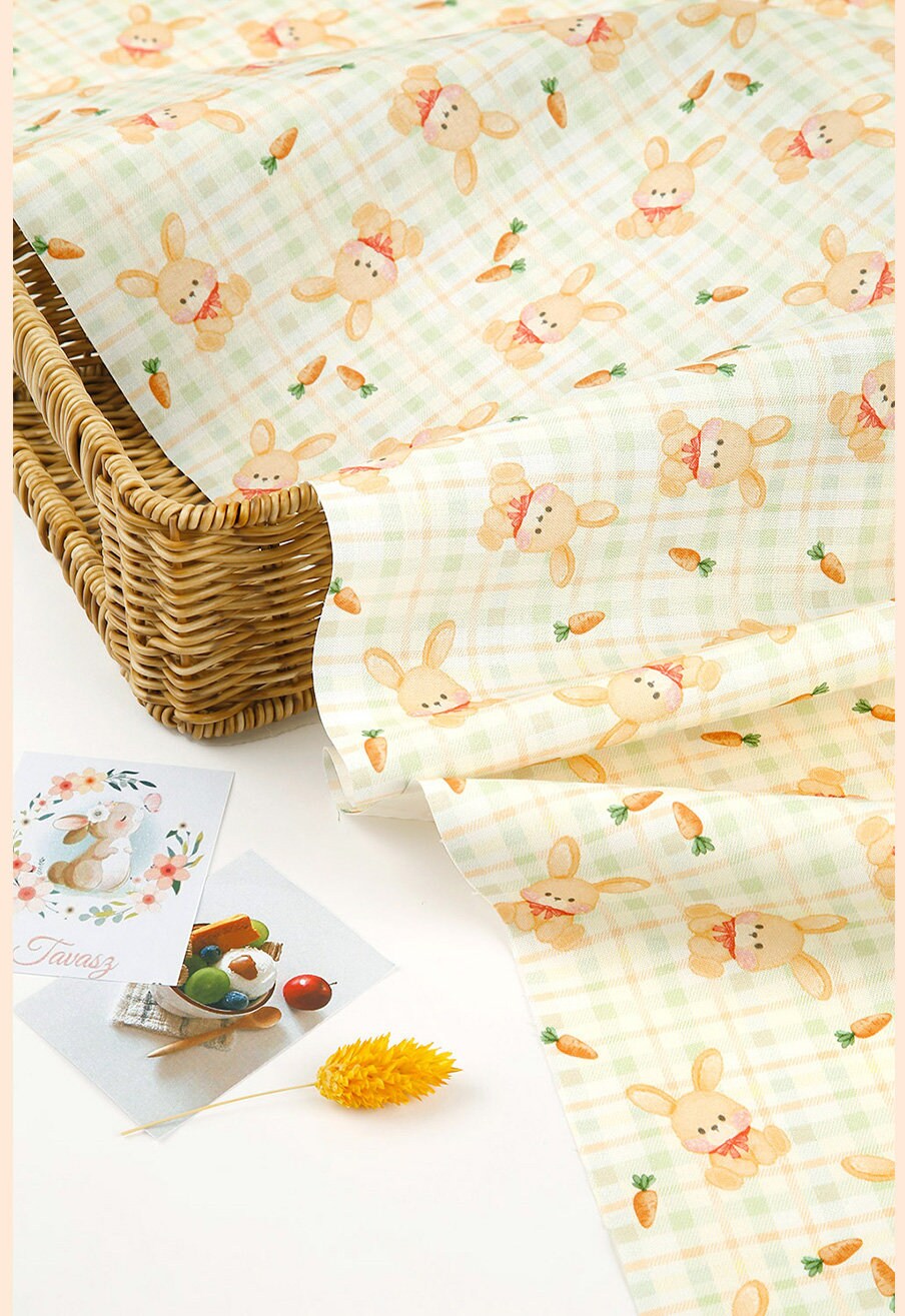 ウサギとニンジンのピクニック柄生地 - 韓国の生地