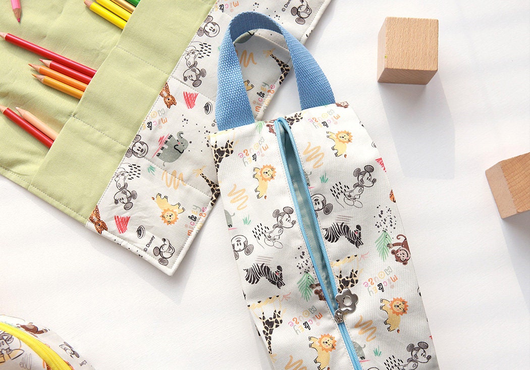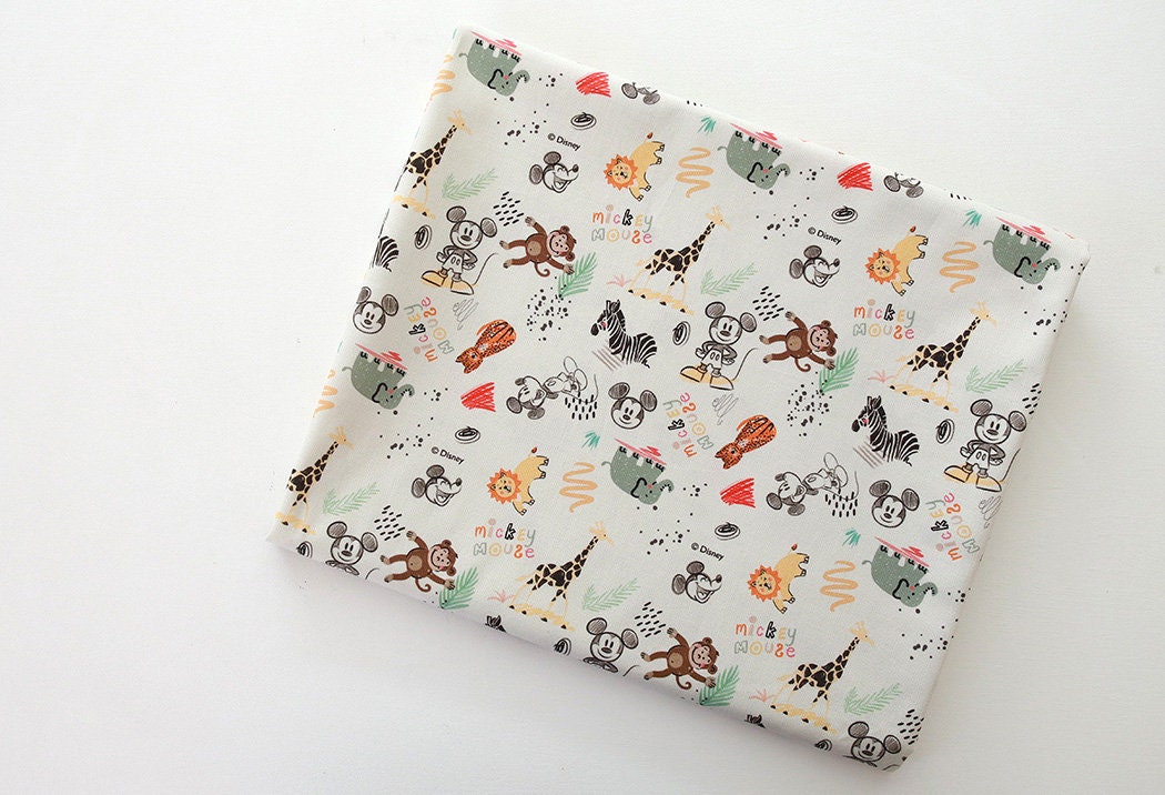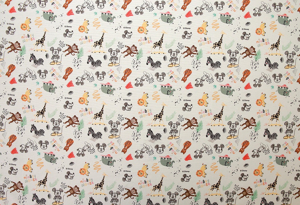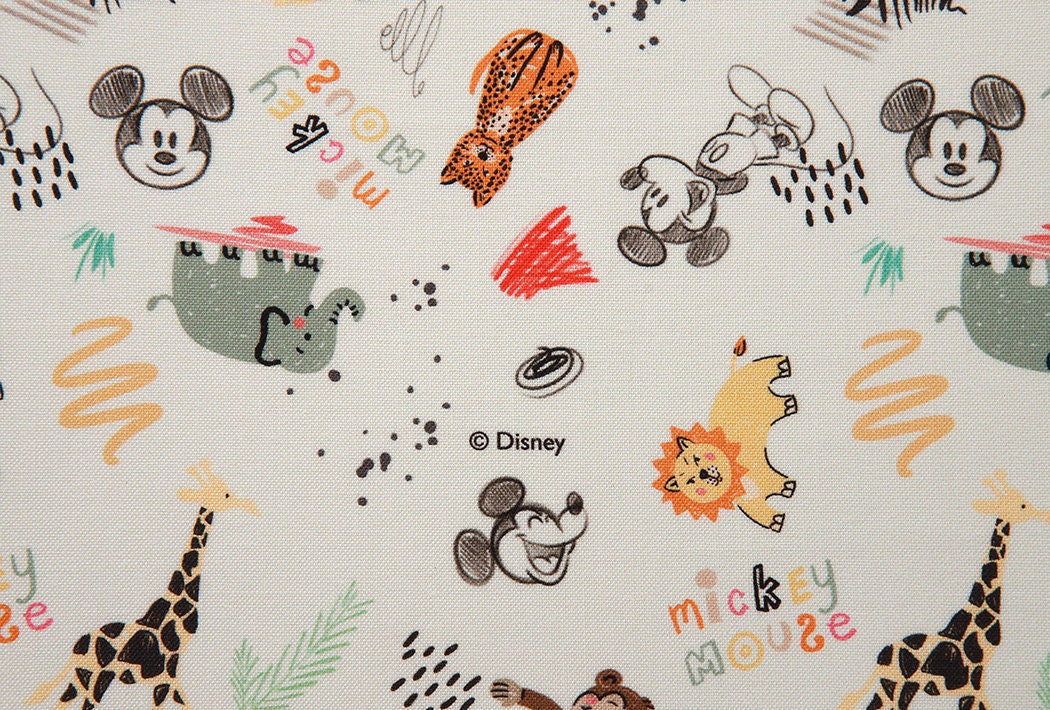 ディズニー ミッキーマウス 動物 色鉛筆風 生地 韓国でプリント