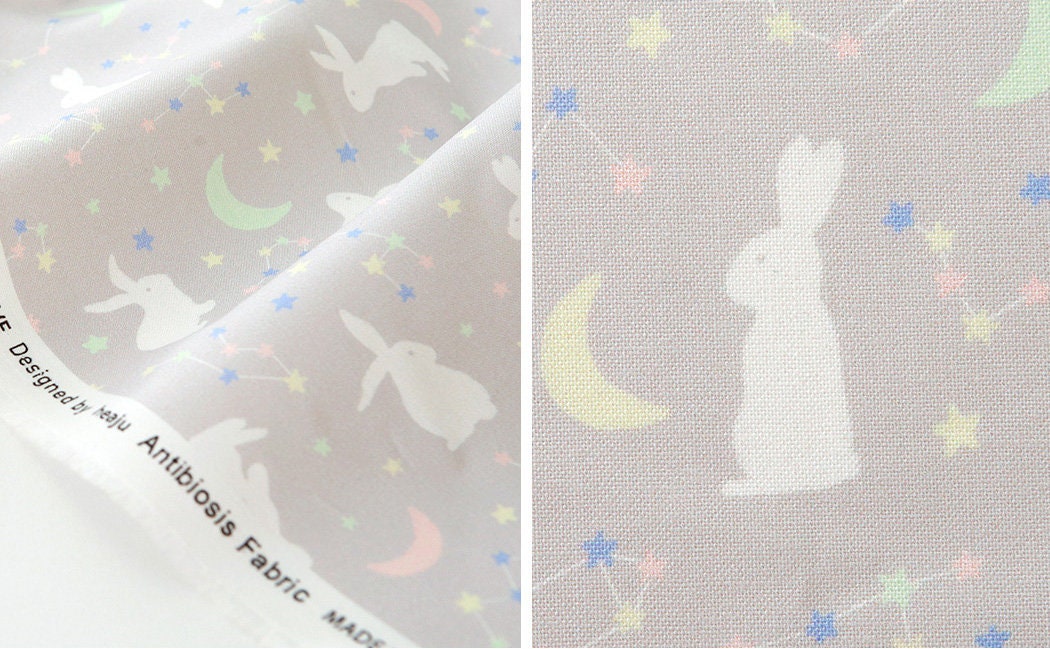 動物 月うさぎ 月うさぎ 柄生地 - 韓国生地