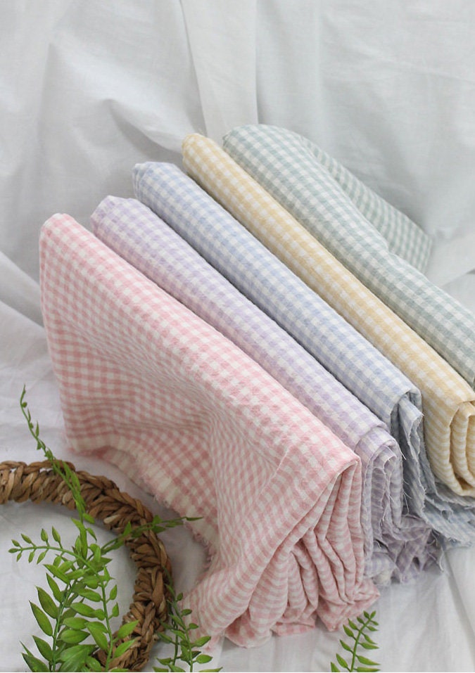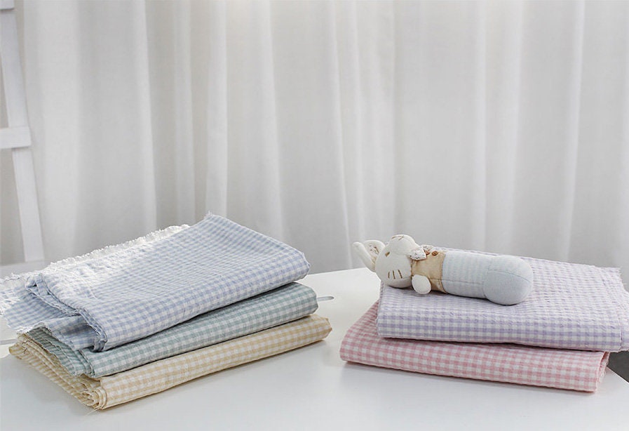 韓国でプリントされたチェック柄バイオウォッシュ生地