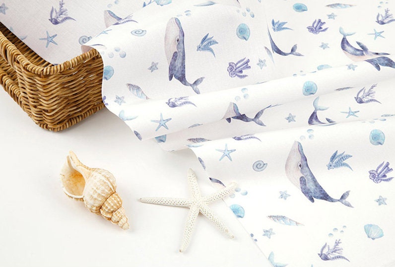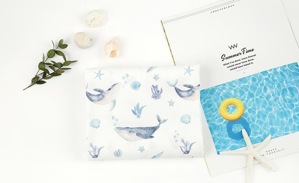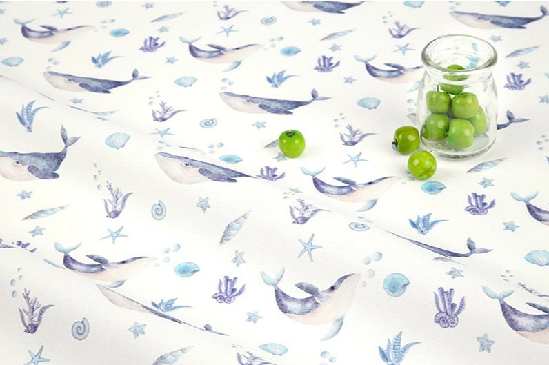 OEKO-TEX 動物 海洋 クジラ 柄 生地 - 韓国生地