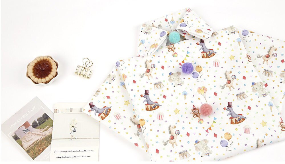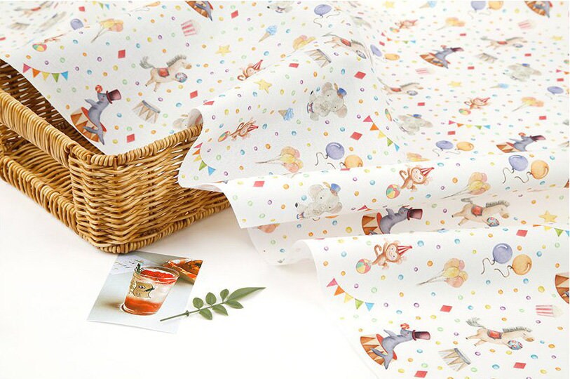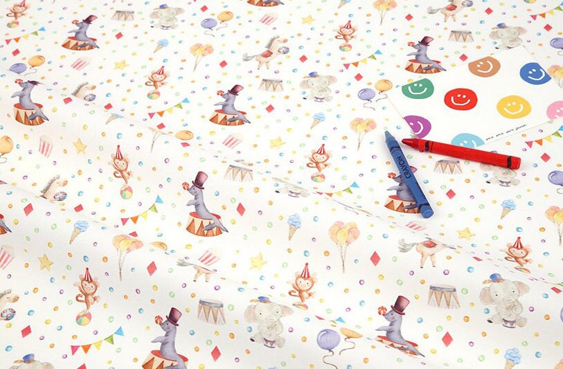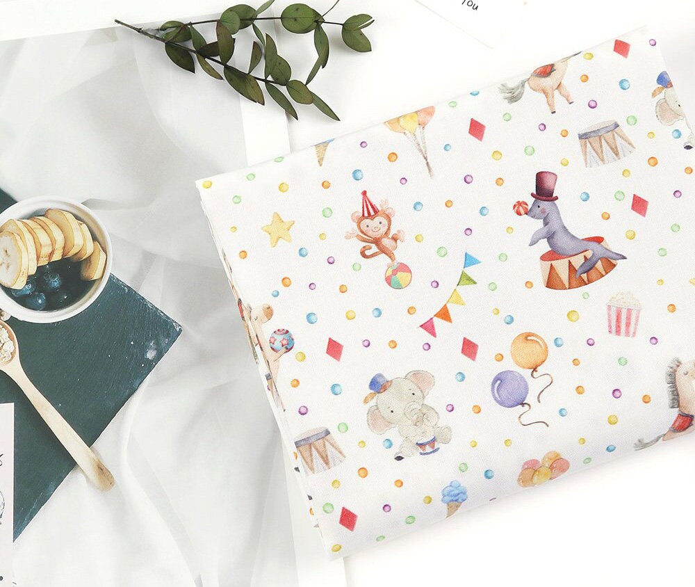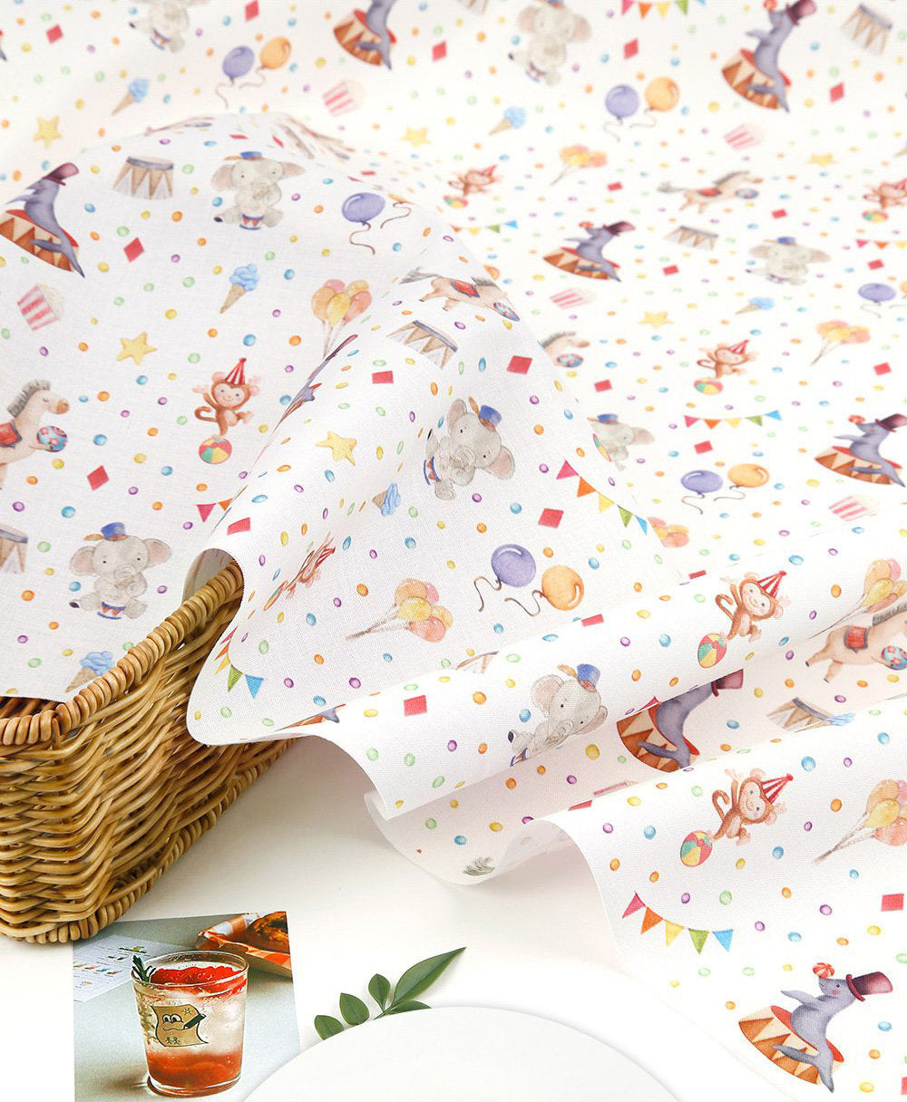 OEKO-TEX 動物 モンキー アザラシ ゾウ サーカス 柄生地 - 韓国生地